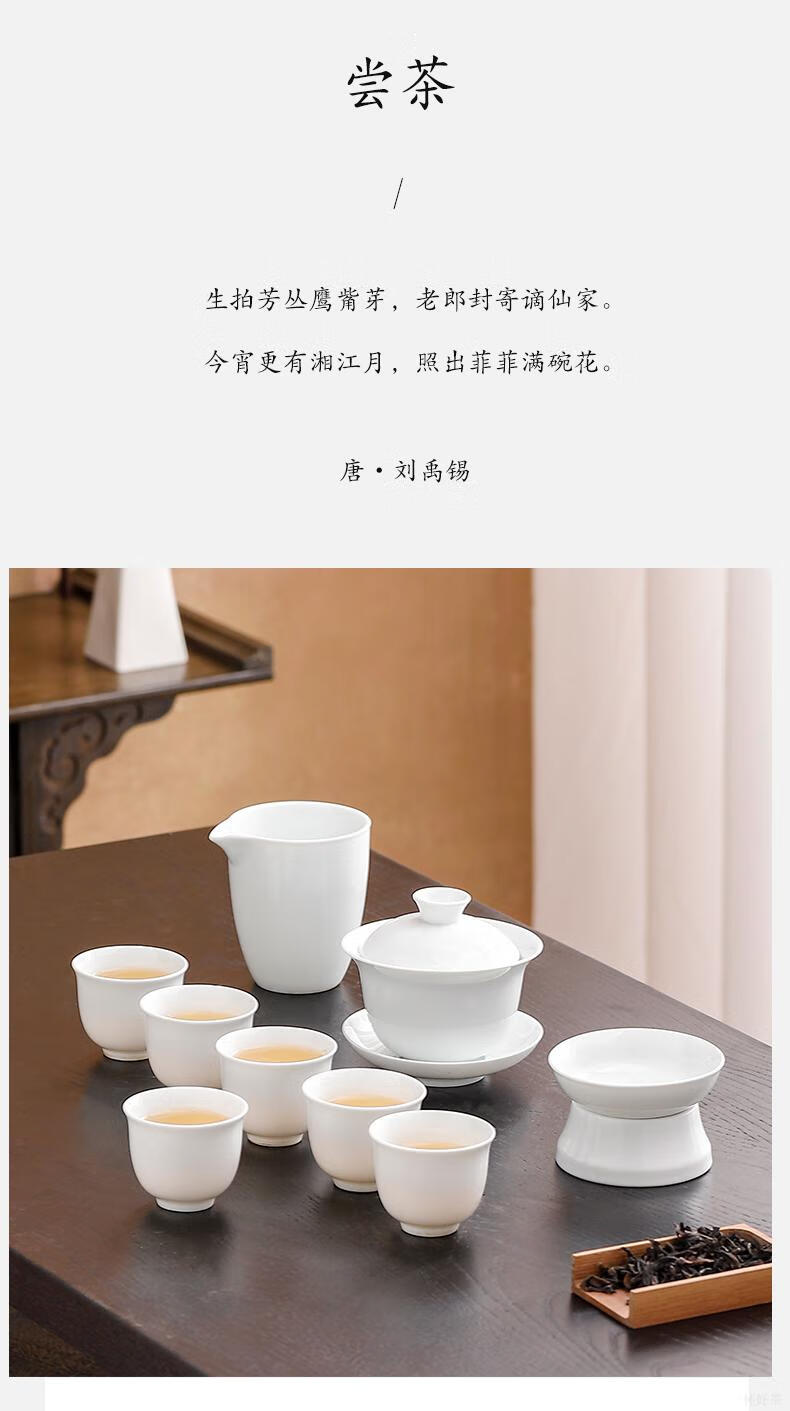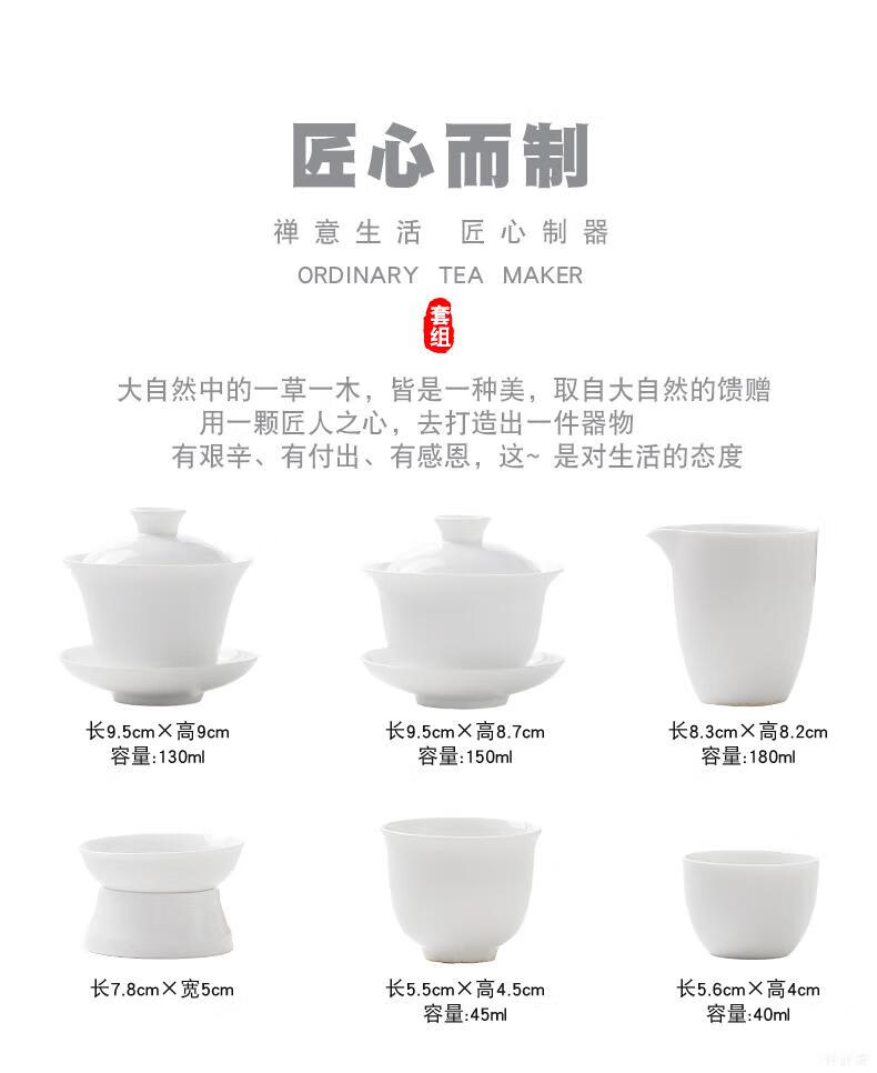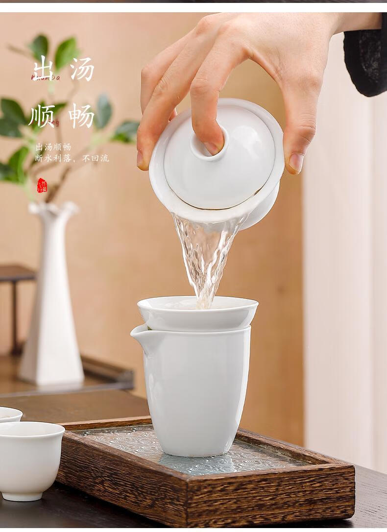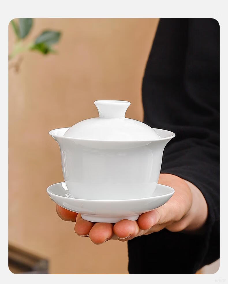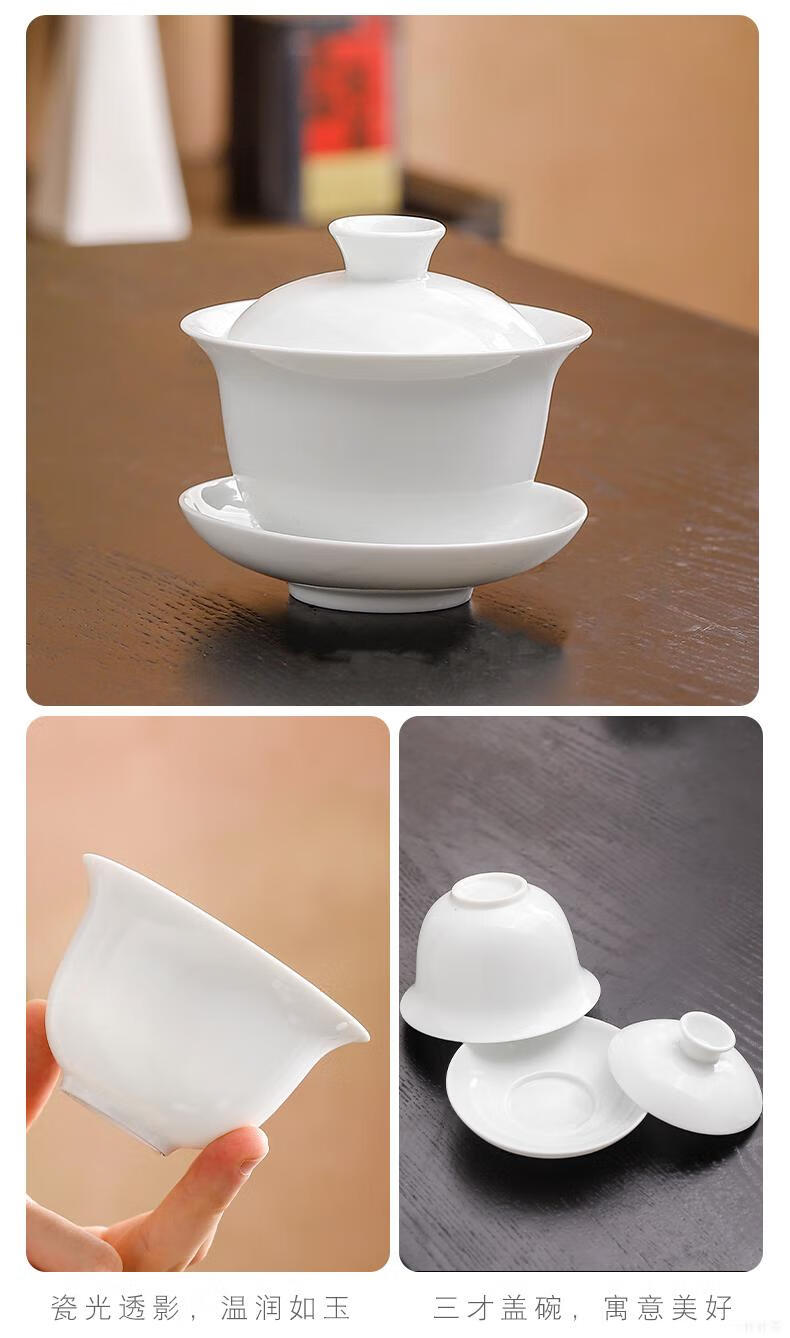 希格鲨白瓷功夫茶具套装礼盒logo定制家用羊脂玉瓷泡茶盖碗茶壶茶杯陶瓷 白瓷三才盖碗美人杯套装 套