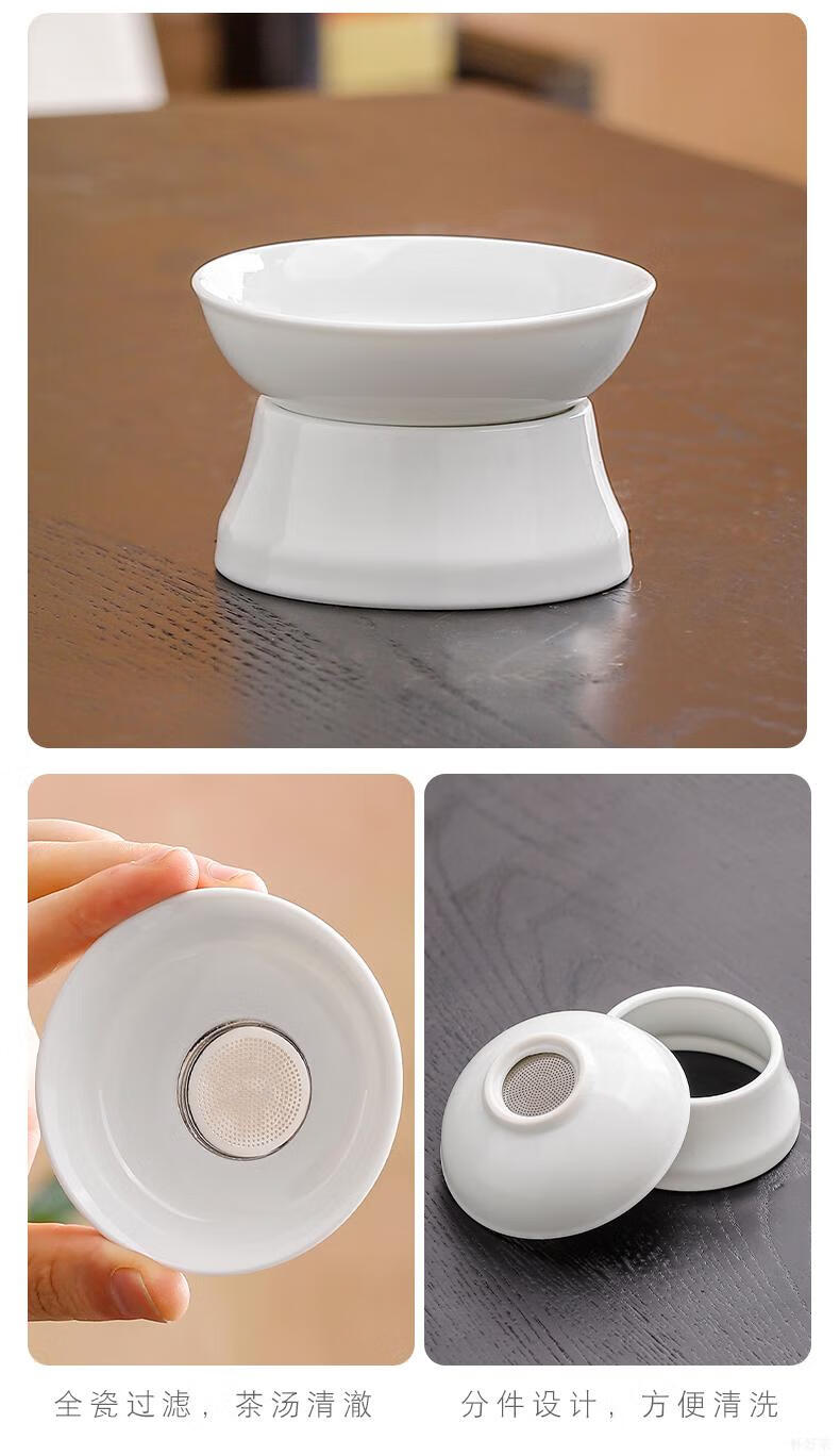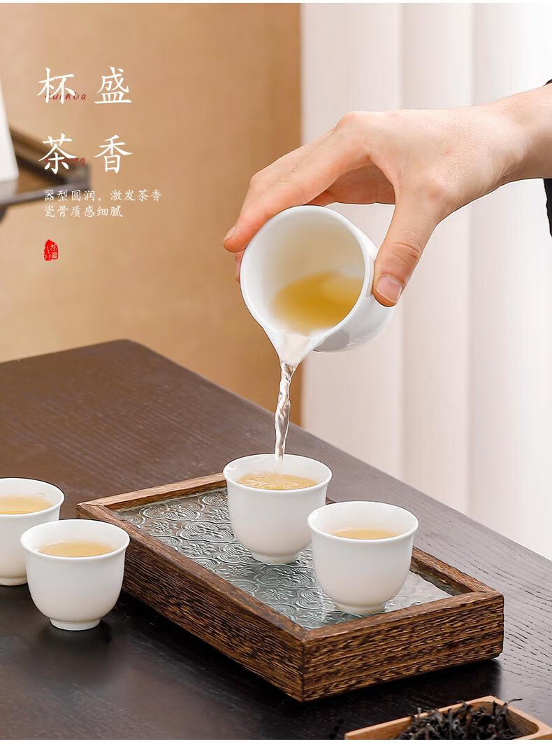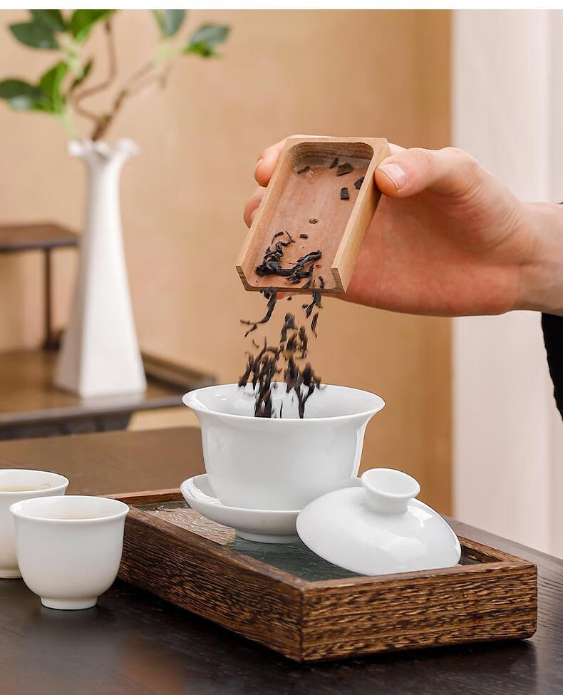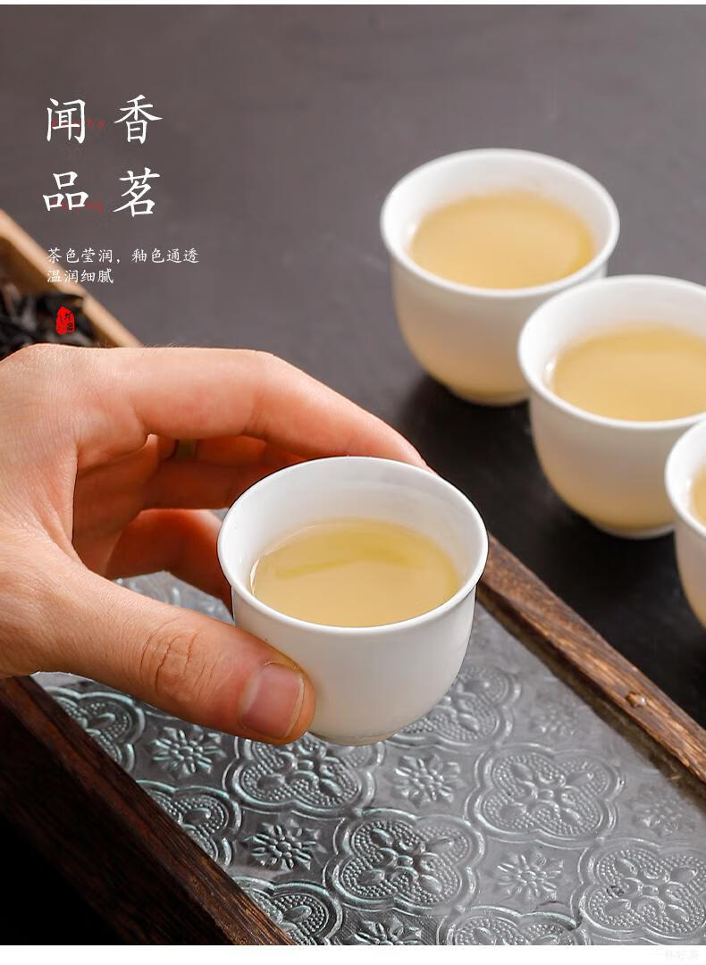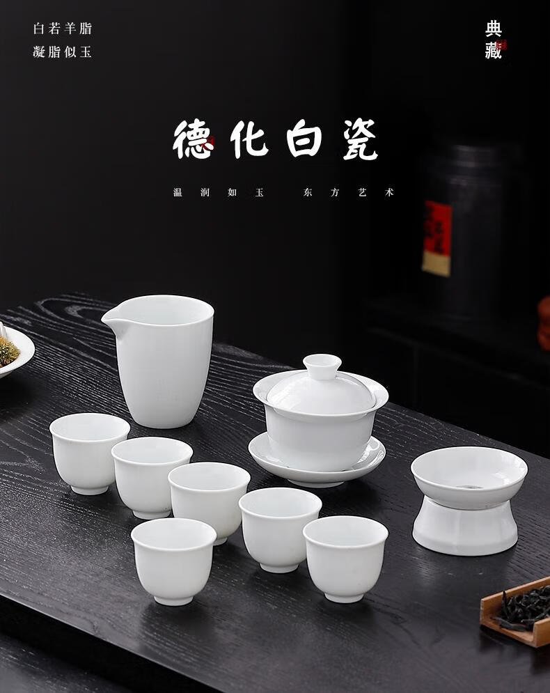 希格鲨白瓷功夫茶具套装礼盒logo定制家用羊脂玉瓷泡茶盖碗茶壶茶杯陶瓷 白瓷三才盖碗美人杯套装 套