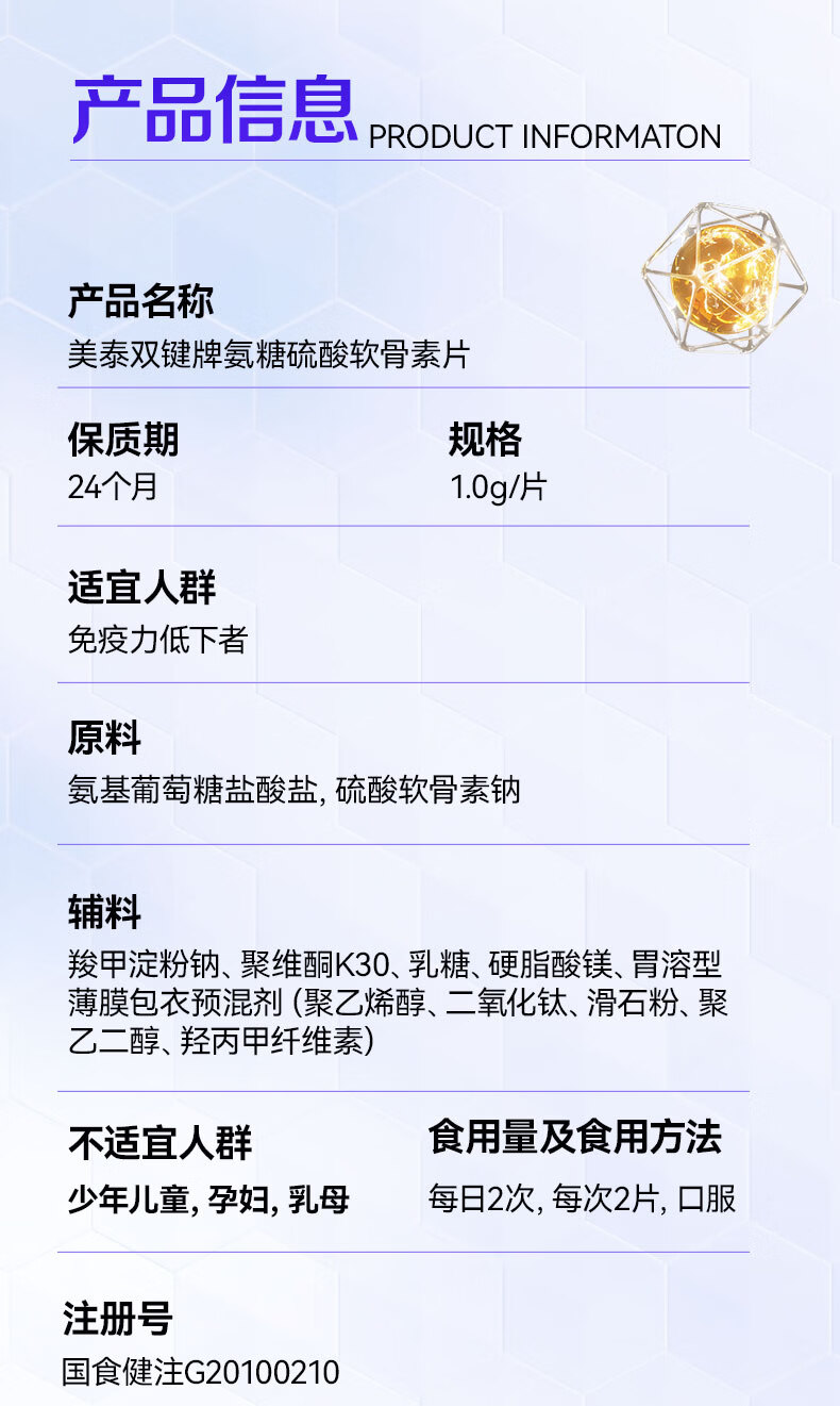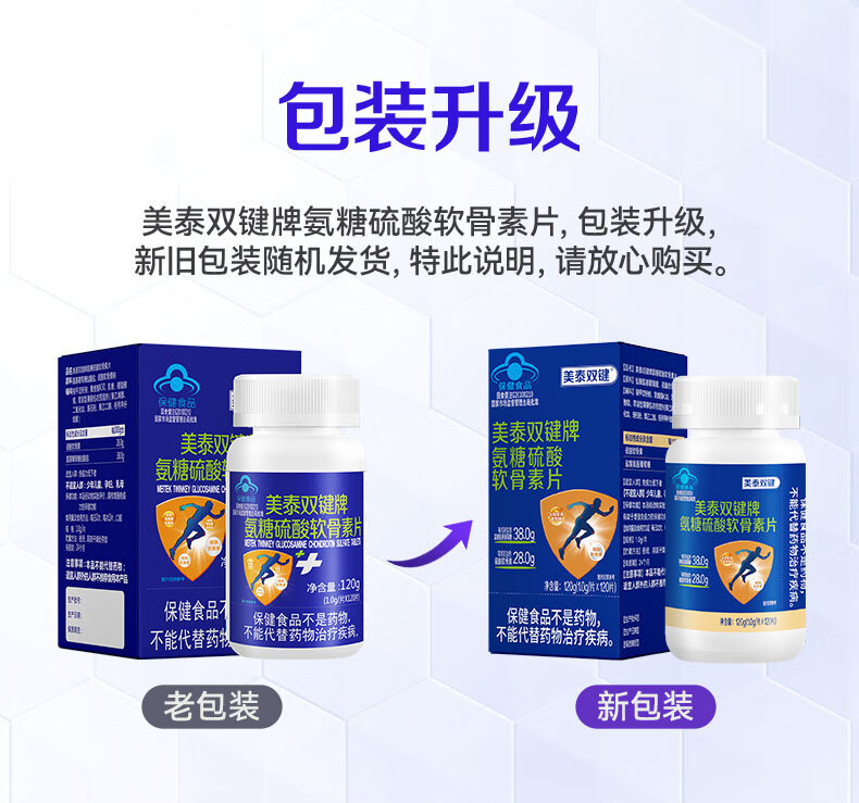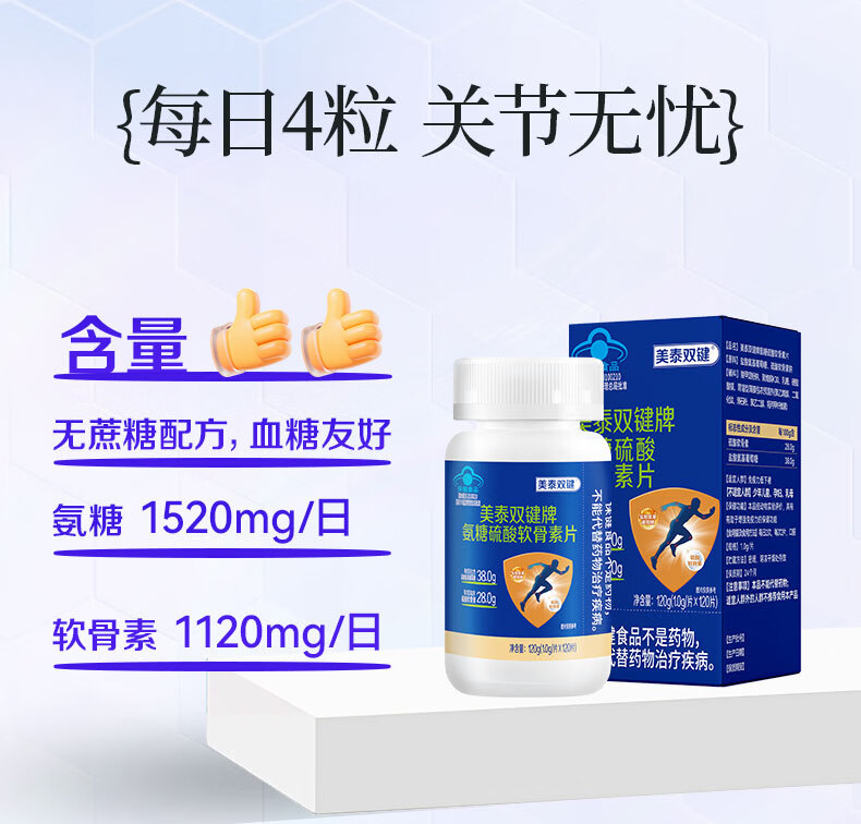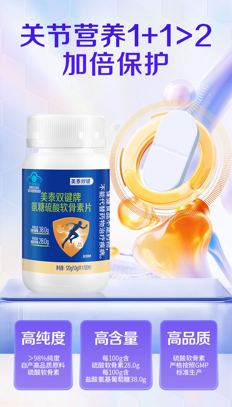 美泰双键 氨糖软骨素钙片120粒/盒 蓝帽保健品 中老年人氨糖补钙营养品 120粒*1瓶