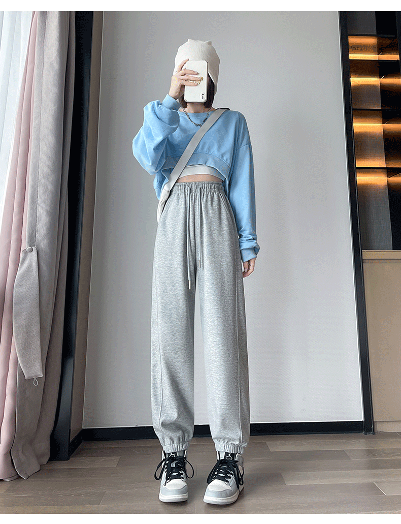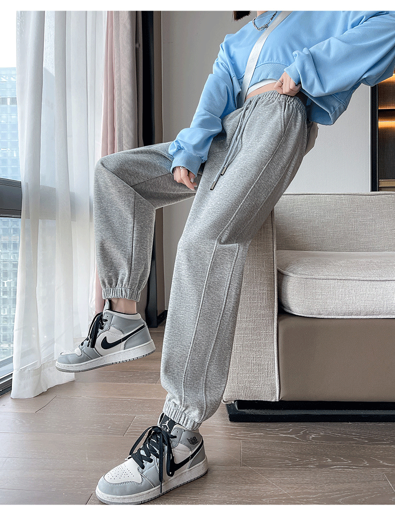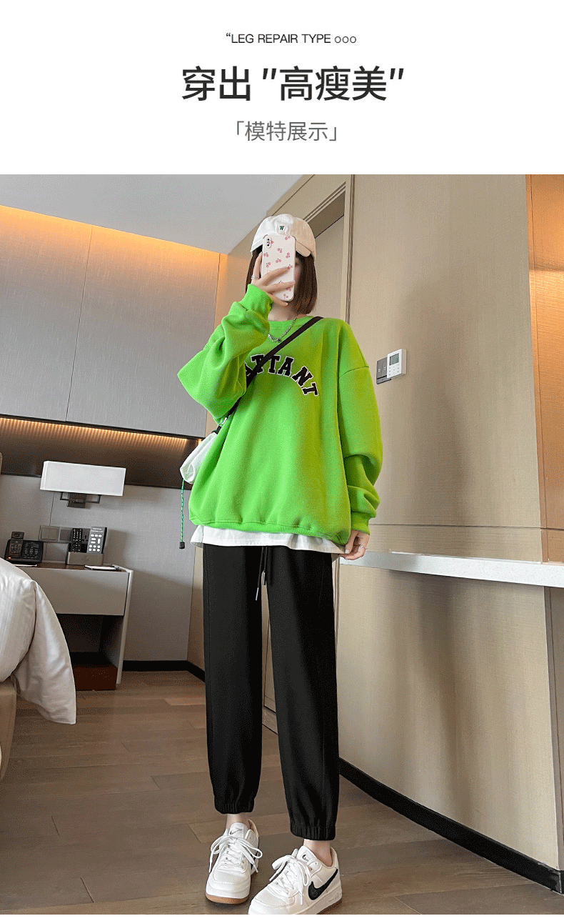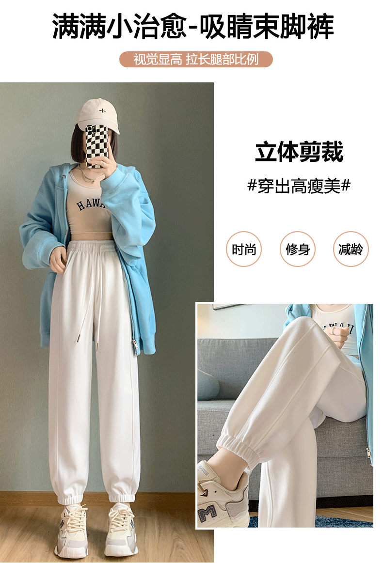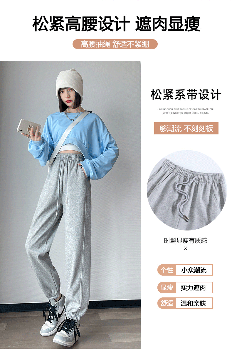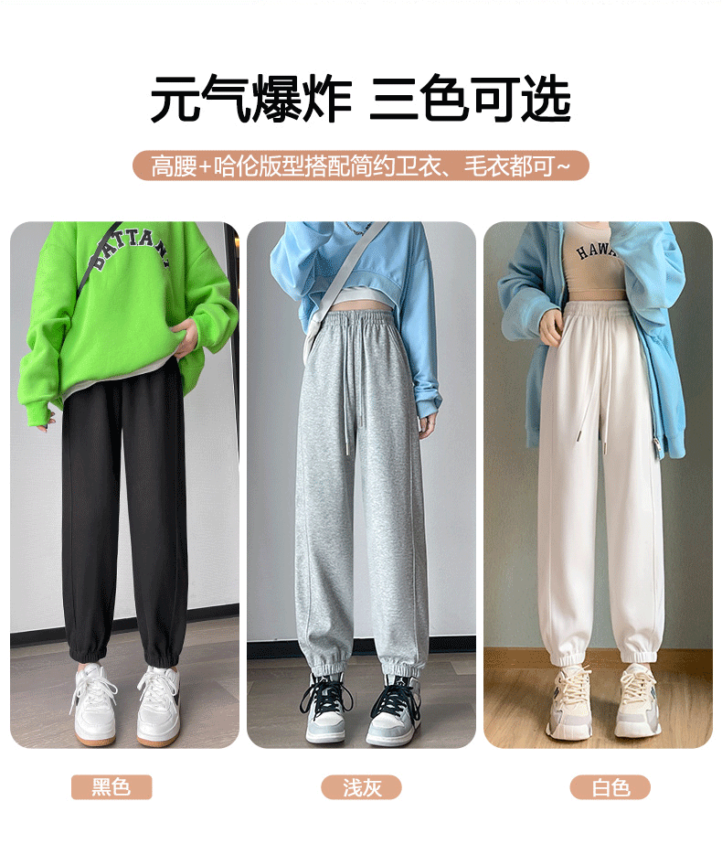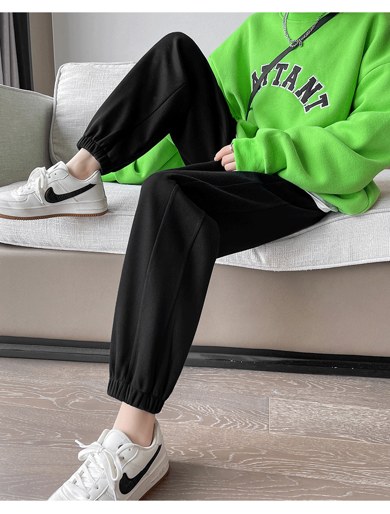 浪莎加绒休闲裤女秋冬宽松型显瘦束脚卫裤外穿百搭抽绳阔腿保暖运动裤 黑色侧边双线-加绒 L (111-120斤)