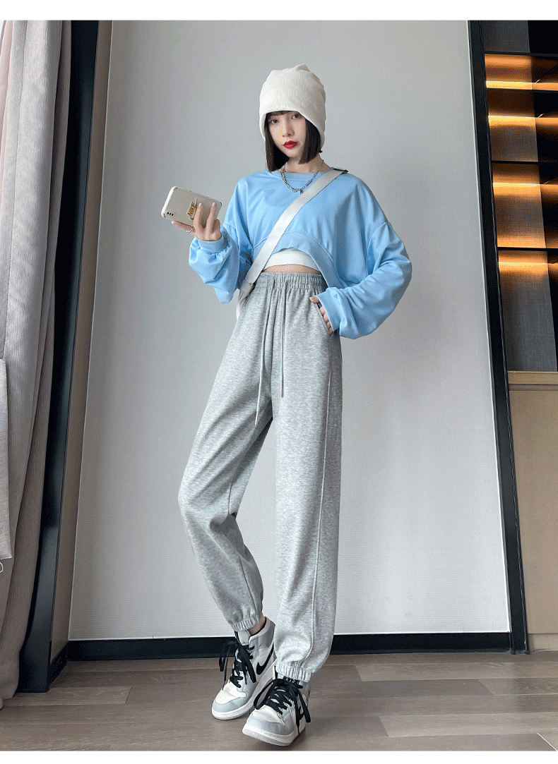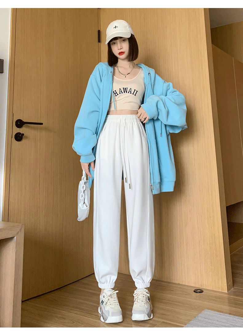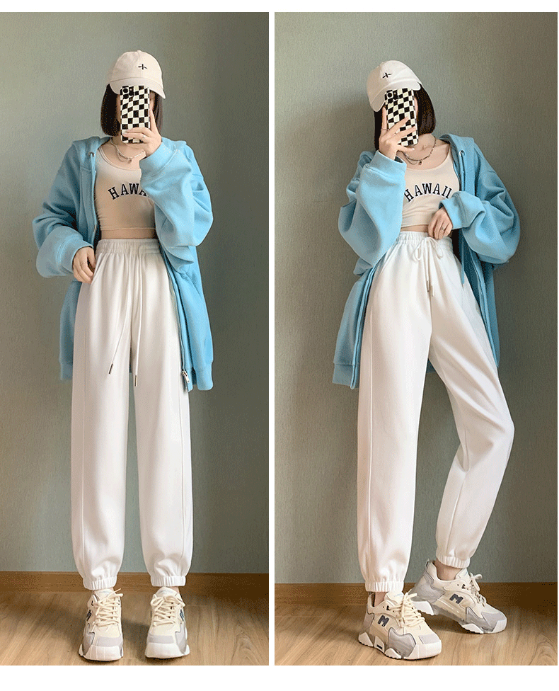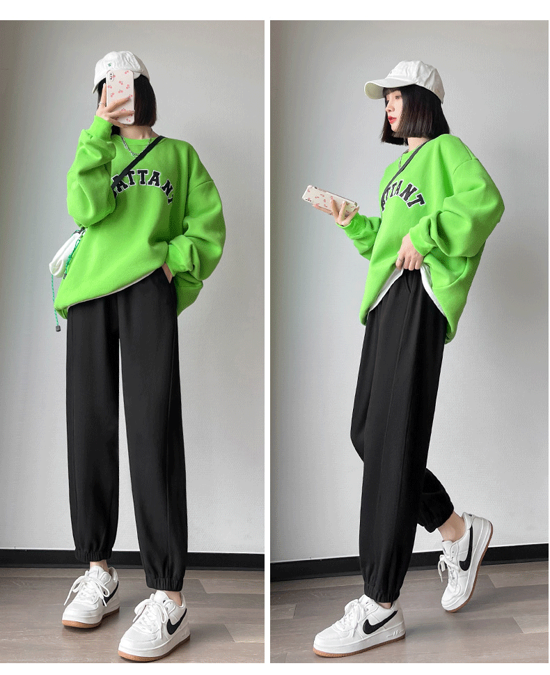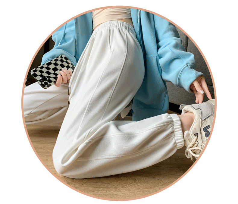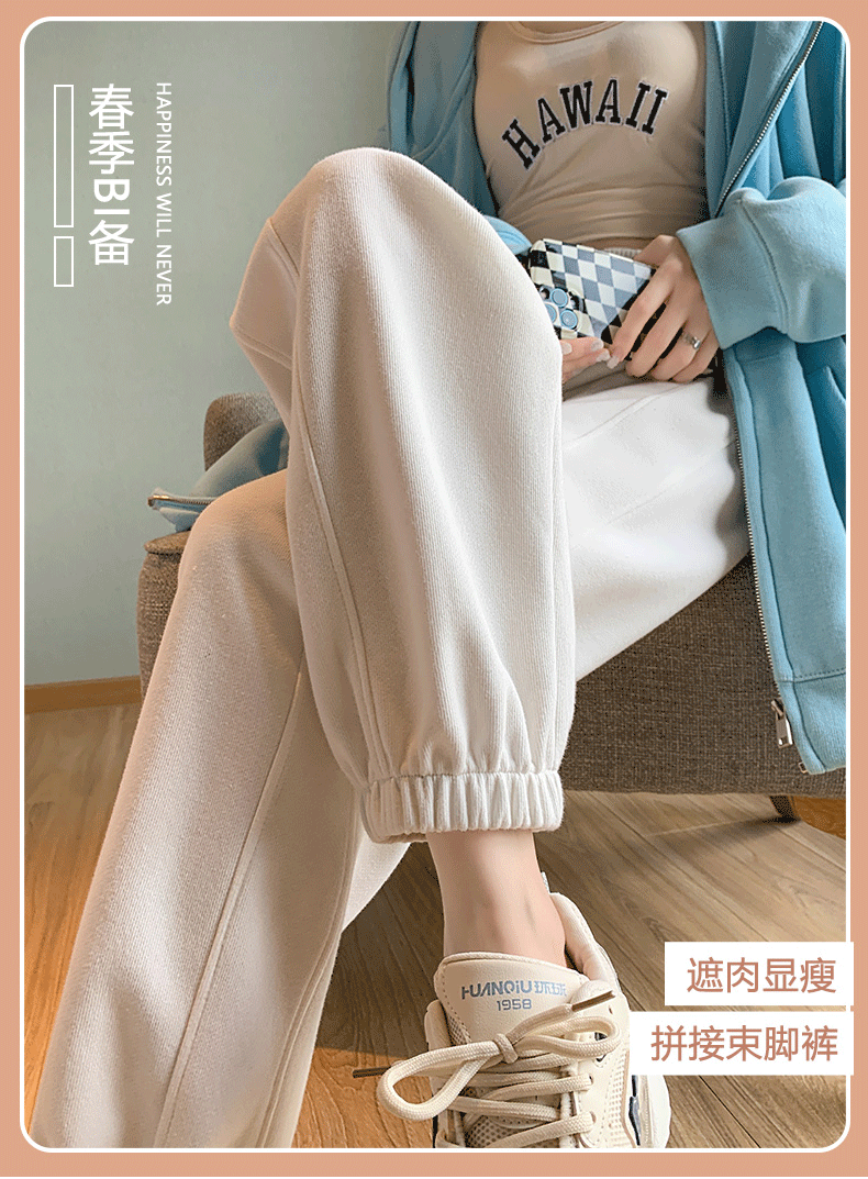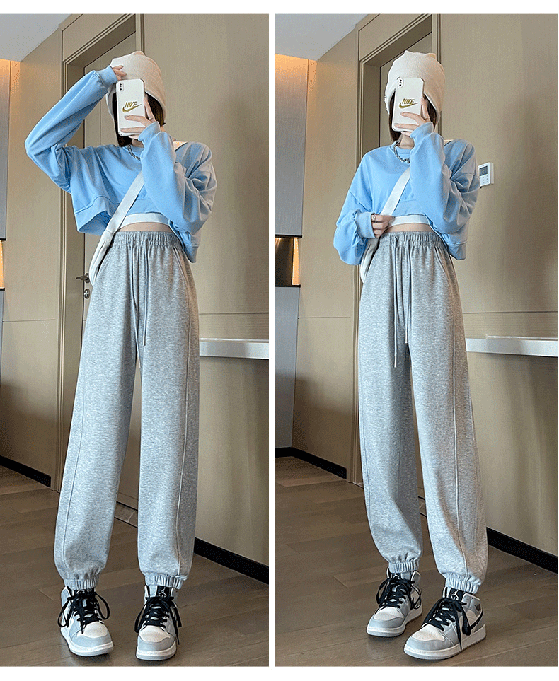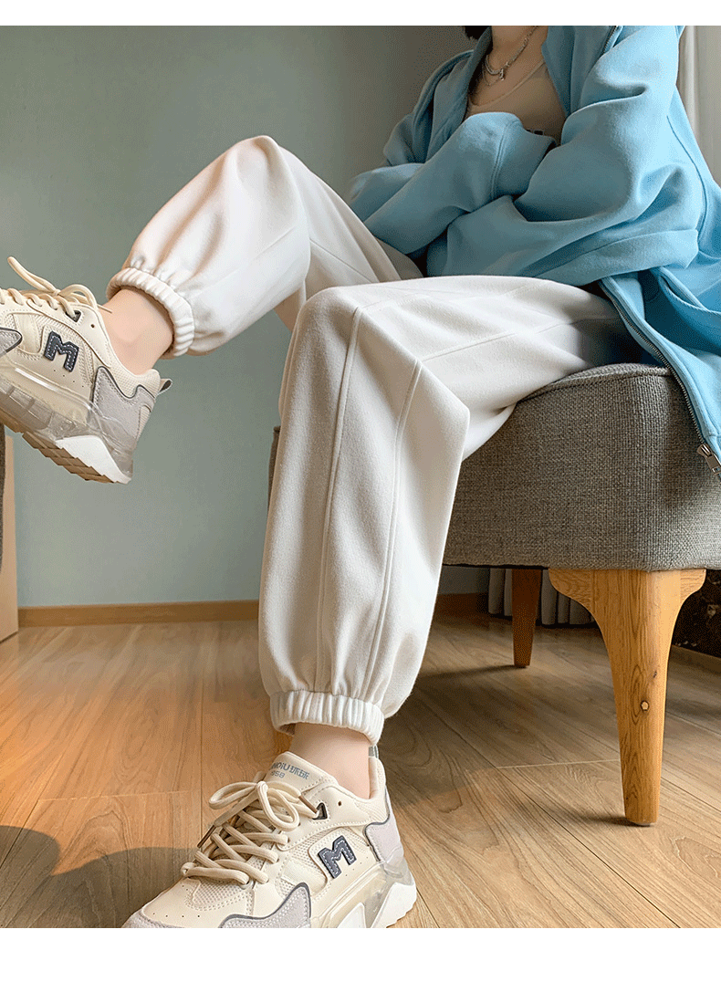 浪莎加绒休闲裤女秋冬宽松型显瘦束脚卫裤外穿百搭抽绳阔腿保暖运动裤 黑色侧边双线-加绒 L (111-120斤)