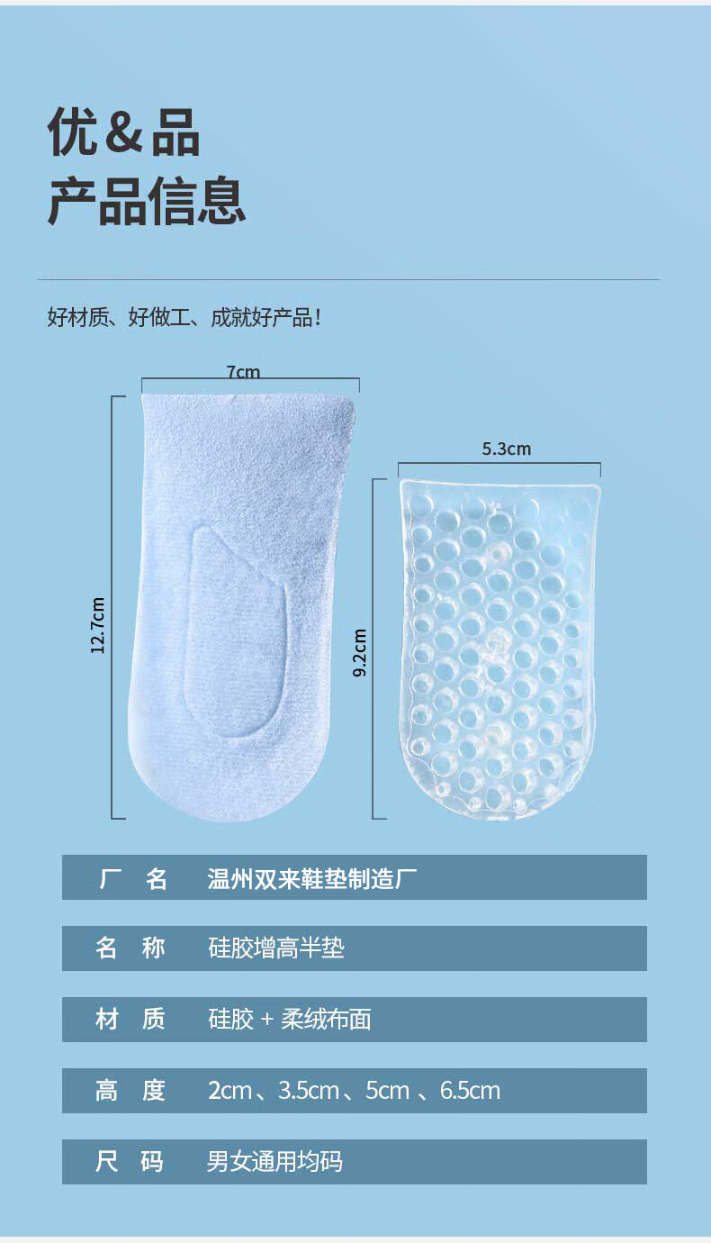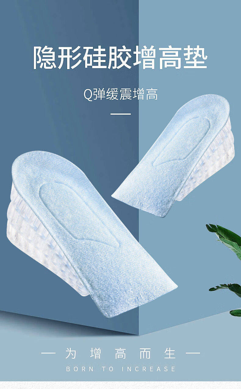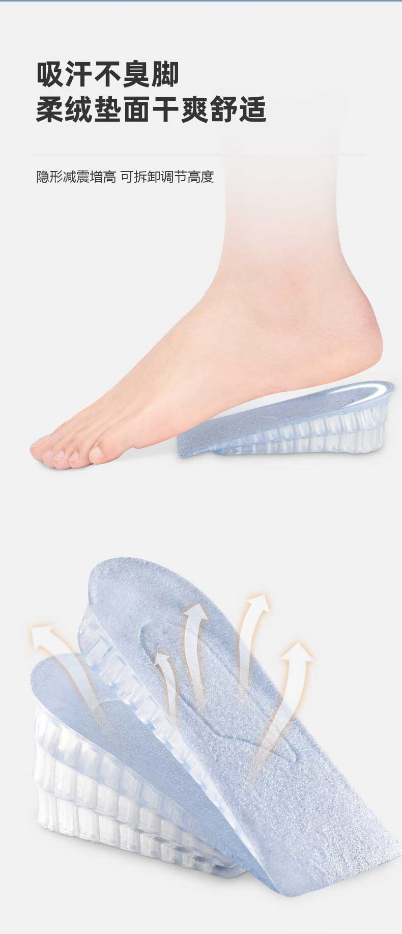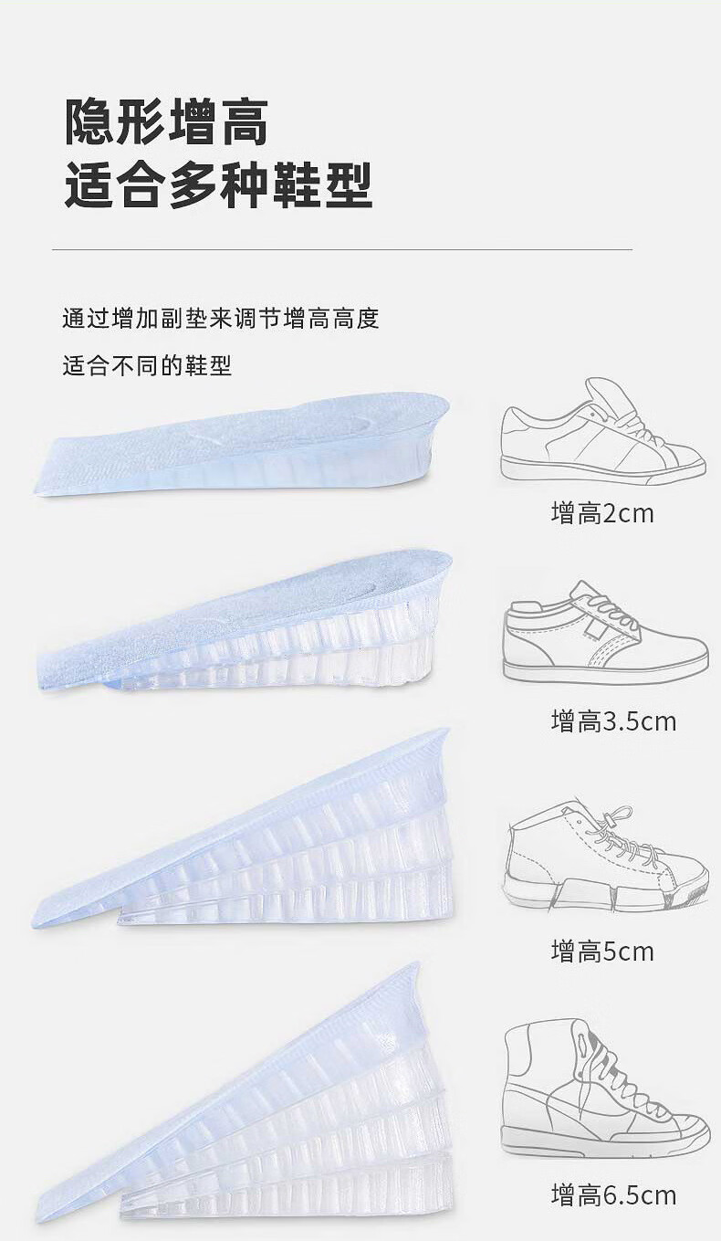【精选】内增高鞋垫男士女式隐形增高网红硅胶半垫冬季鞋垫 黑色2层3.5cm 1双 其他尺码