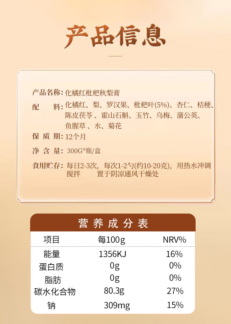 华北制药大健康秋梨膏润喉化痰护嗓化橘红枇杷秋梨膏儿童0添加成人泡水秋冬必备 【清润护嗓】 300g*1瓶