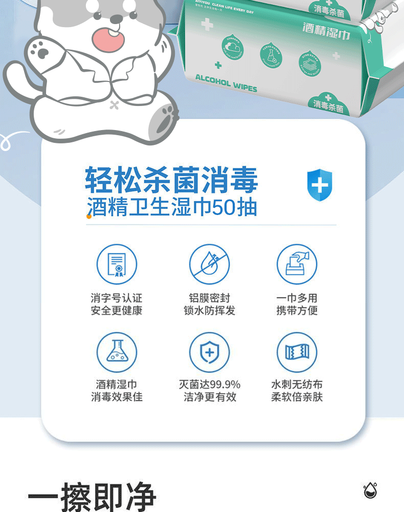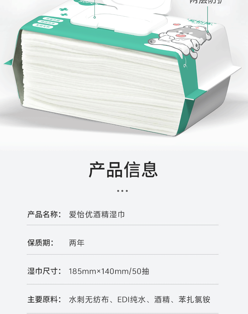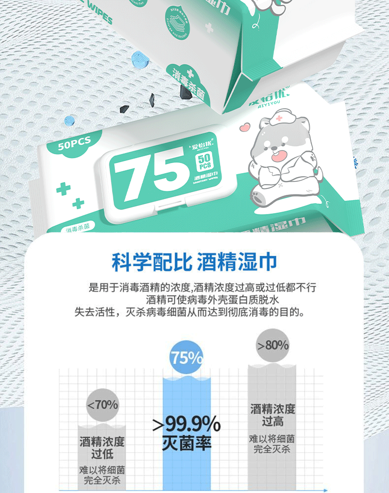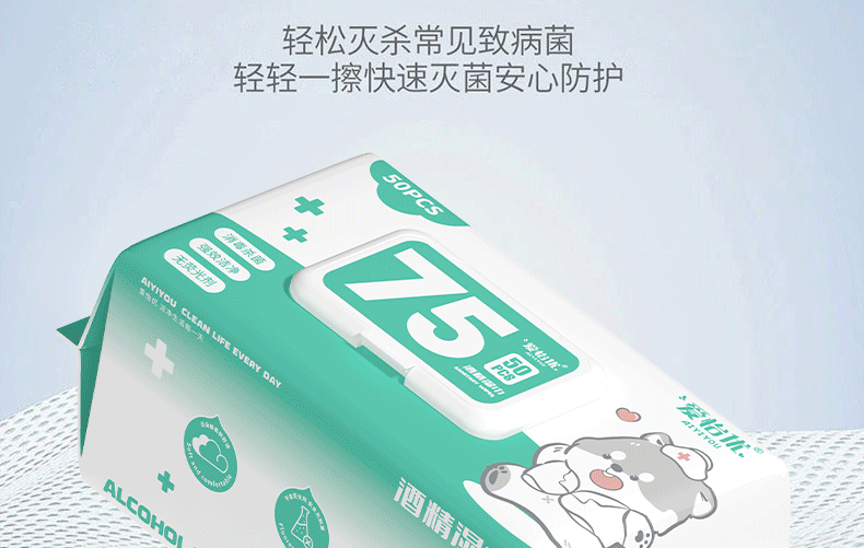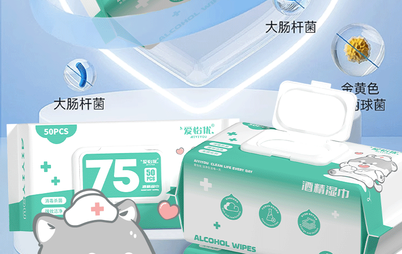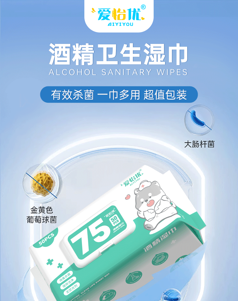爱怡优75度酒精消毒湿巾 杀菌专用除菌清洁便捷湿巾 家庭实惠装 【囤货装】50抽*10包有效抑菌