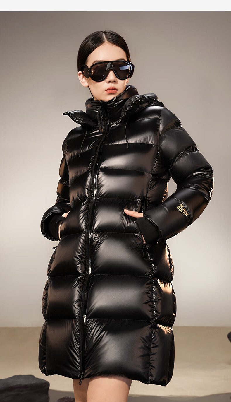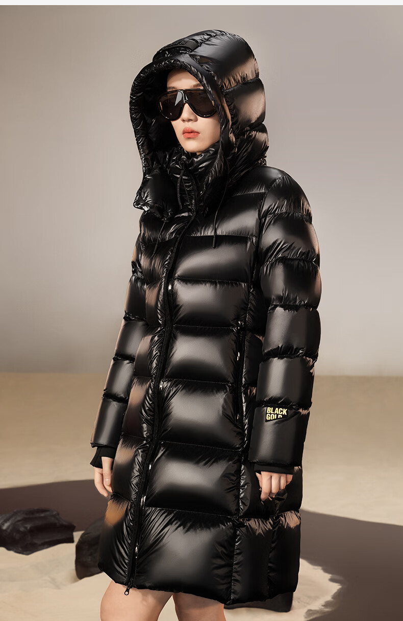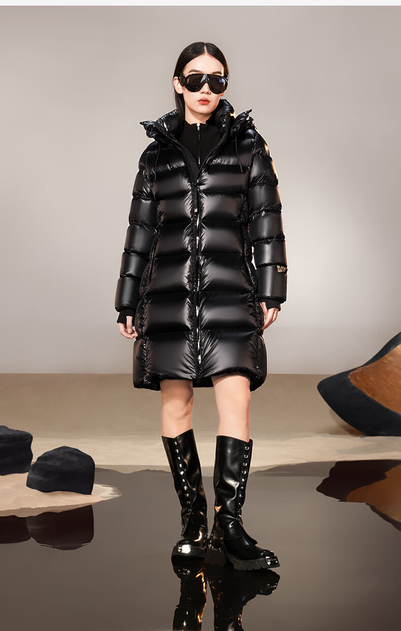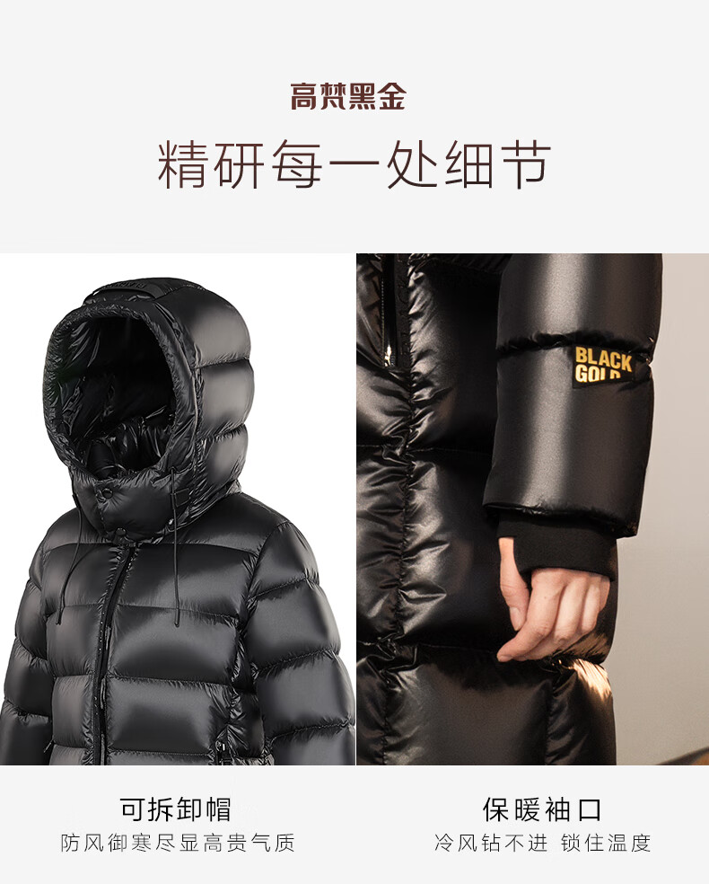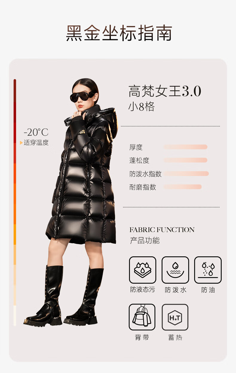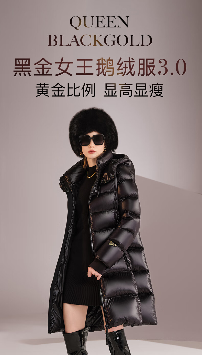 高梵黑金鹅绒服女王3.0八格收腰羽绒服女士热力感中长款冬厚外套黑色L