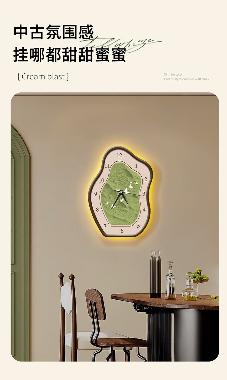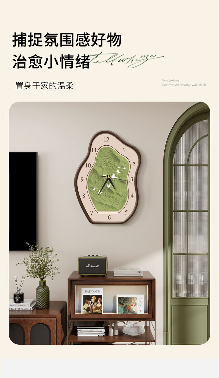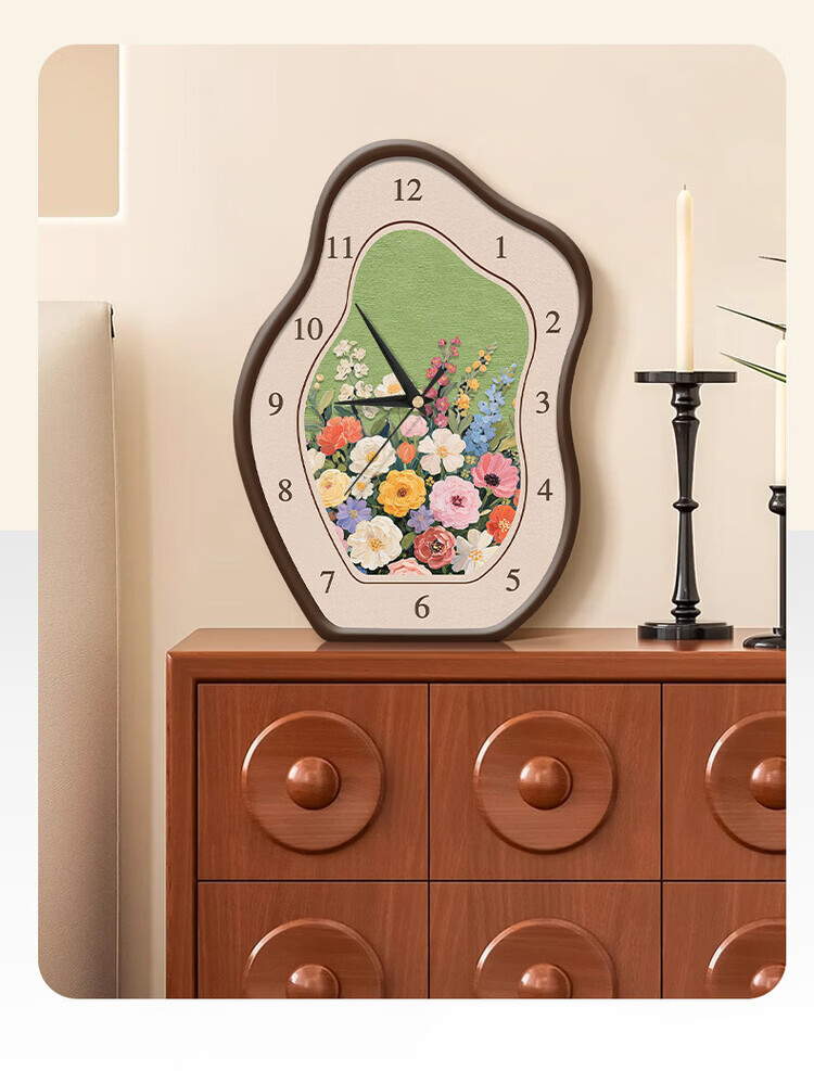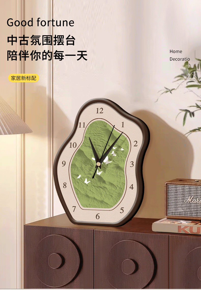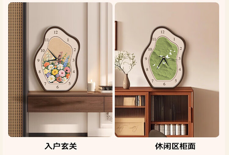 OYKTN中古原木风玄关柜桌面时钟摆台创意免打孔客厅挂钟复古钟表摆件 时光 小号 常规款