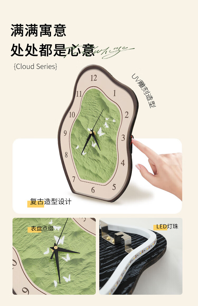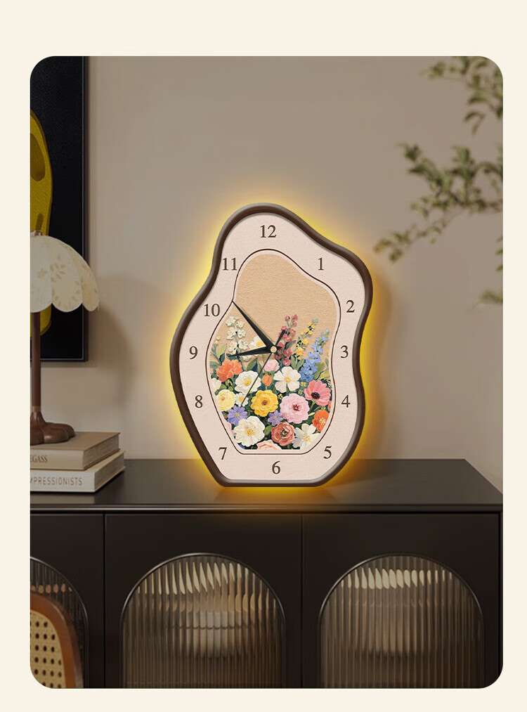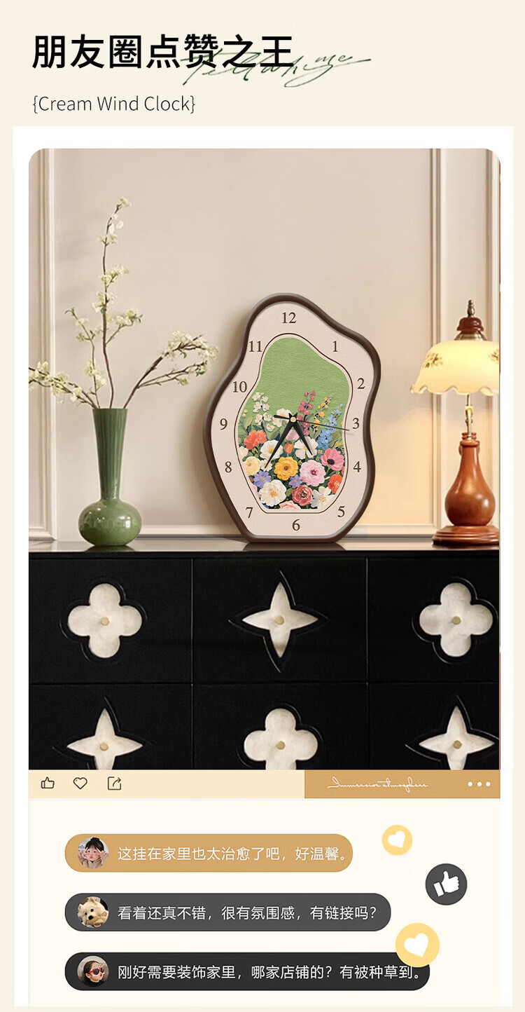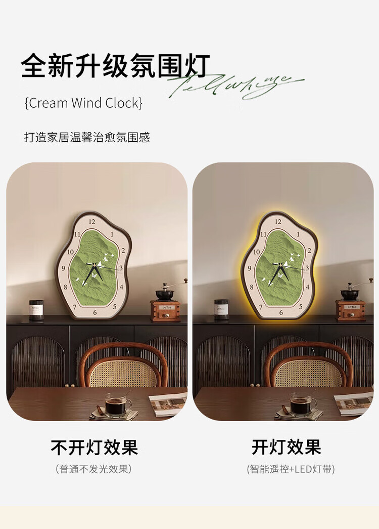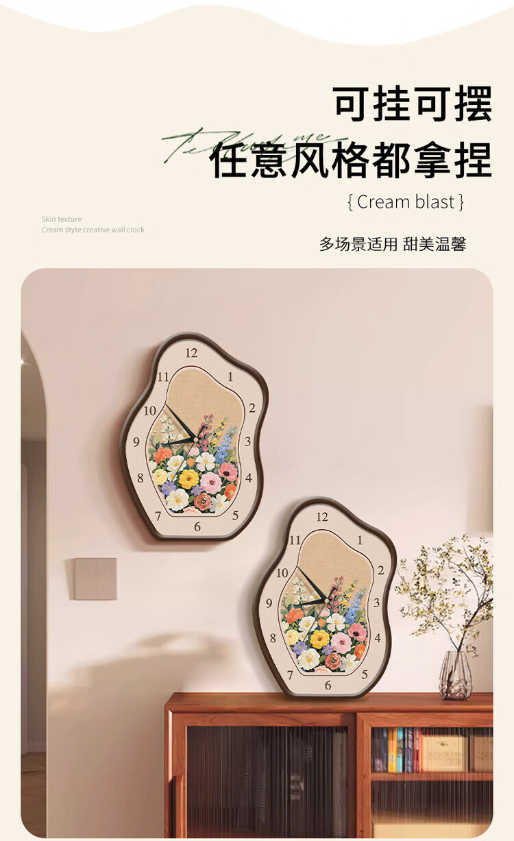 OYKTN中古原木风玄关柜桌面时钟摆台创意免打孔客厅挂钟复古钟表摆件 时光 小号 常规款
