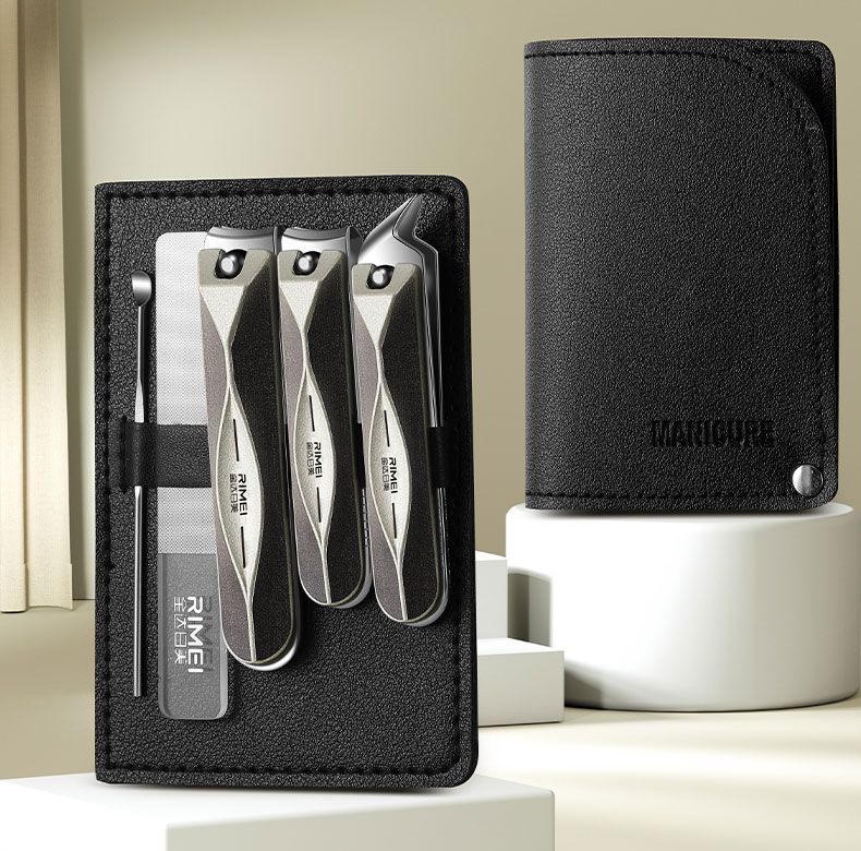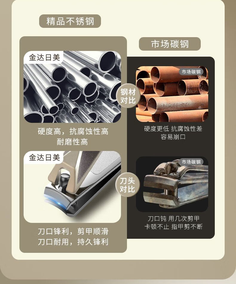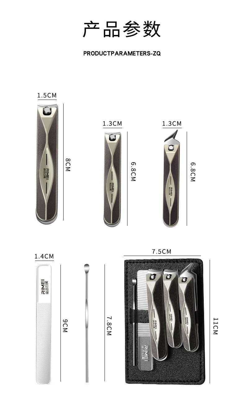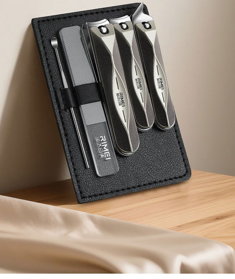 金达日美指甲剪家用指甲刀套装斜口指甲钳甲沟专用修脚工具2025新款 枪灰菱背指甲刀2件套【单层皮套常规款】