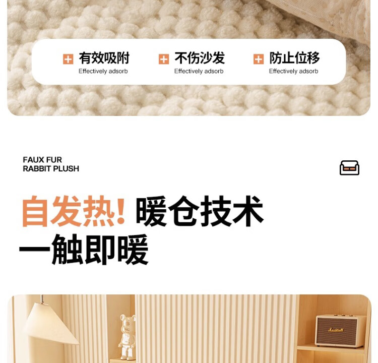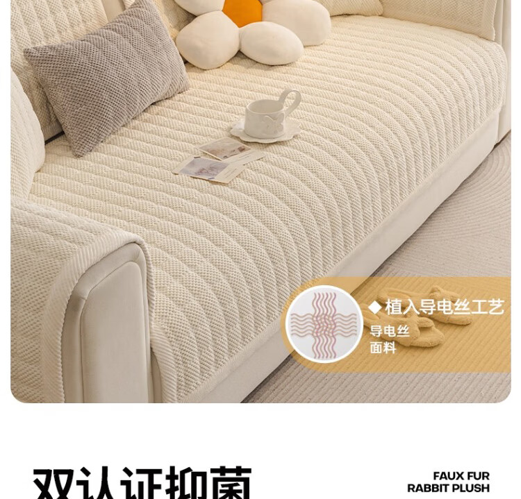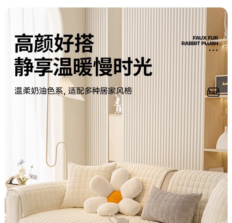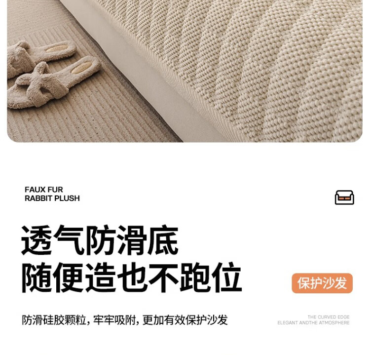 金拾美月三座一贵妃毛绒弹力沙发套罩2025新款全包坐垫笠秋冬防滑盖布巾 绒绵笠-黑白色 单人加大S宽65-85cm*长65-95cm