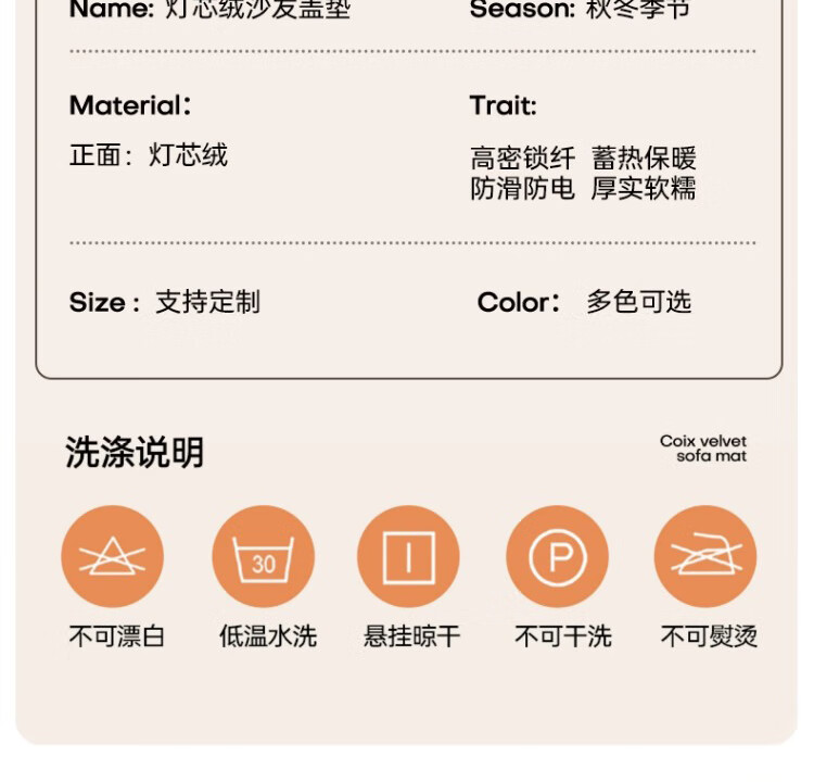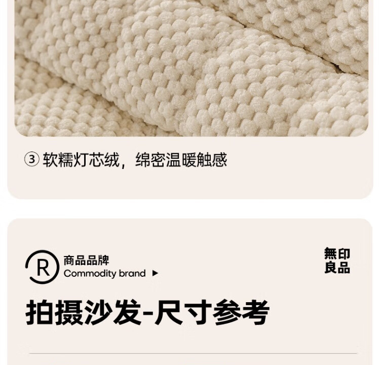 无印良品【三倍加厚】沙发垫冬季灯芯绒2025年新款沙发座垫防滑直排坐垫子 嘉纳-米黄【背部硅胶防滑颗粒】 70*70cm (可做扶手或靠背)