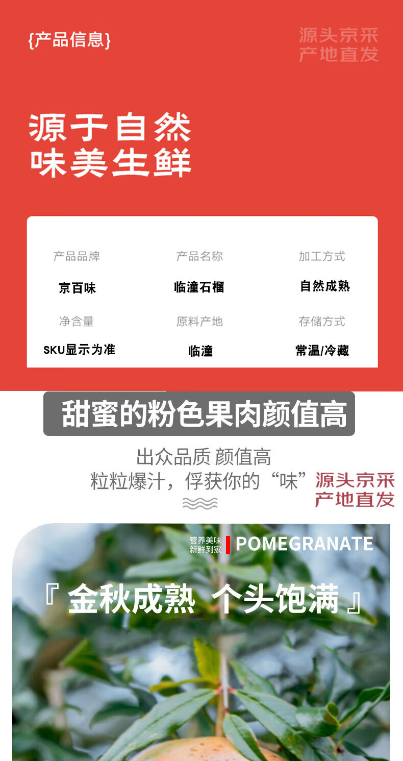 京鲜生 陕西临潼石榴 3斤装 单果300g+ 生鲜水果源头直发
