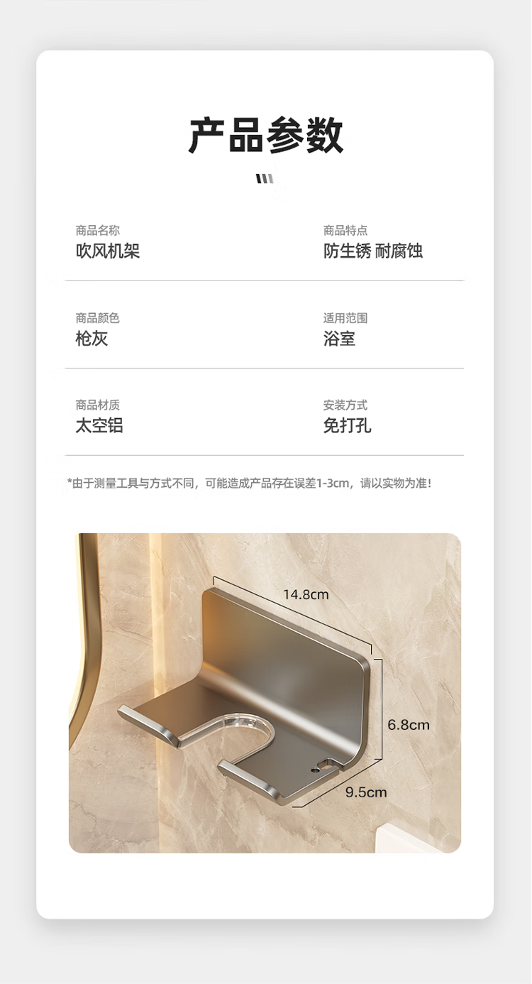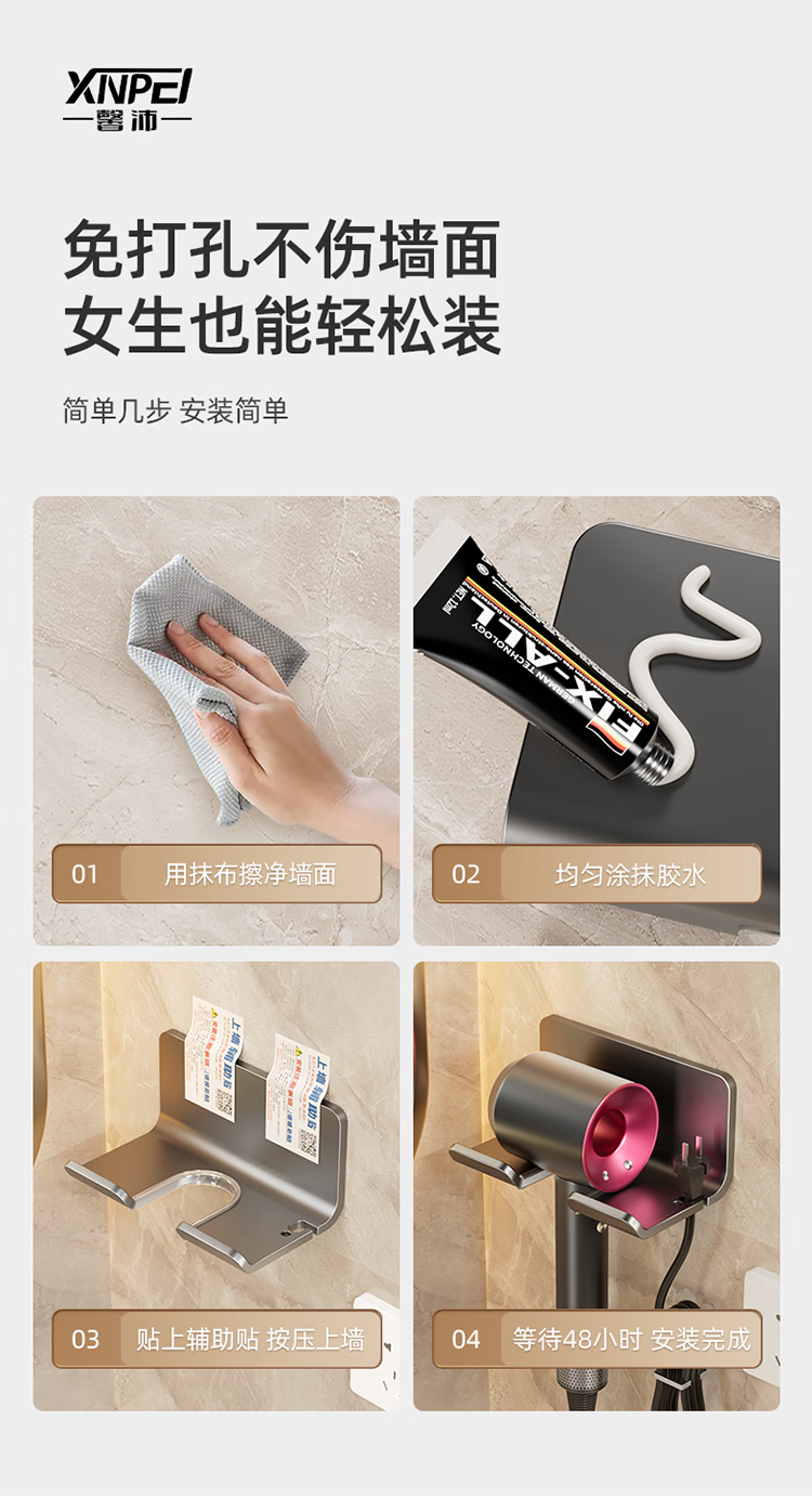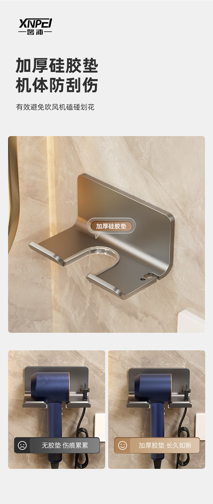 馨沛吹风机架浴室置物架免打孔卫生间电吹风挂架吹风筒支架浴室架子