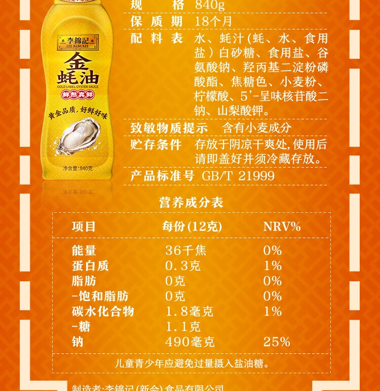 李锦记 金蚝油840g 挤挤装 不易残留 鲜蚝熬煮 火锅蘸料炒拌 提鲜调味