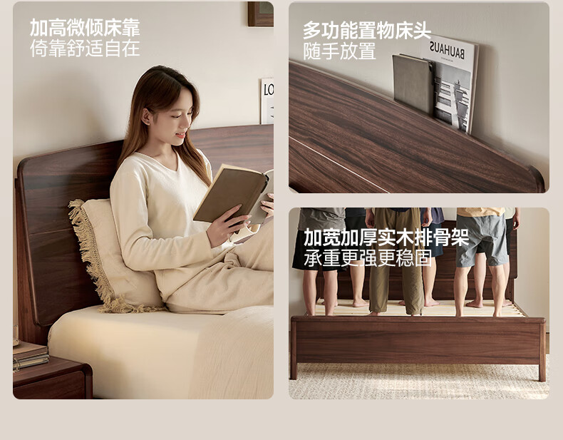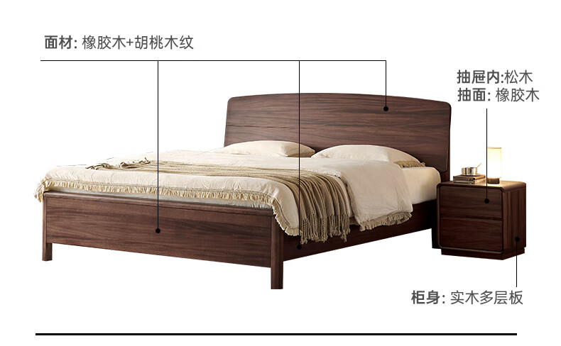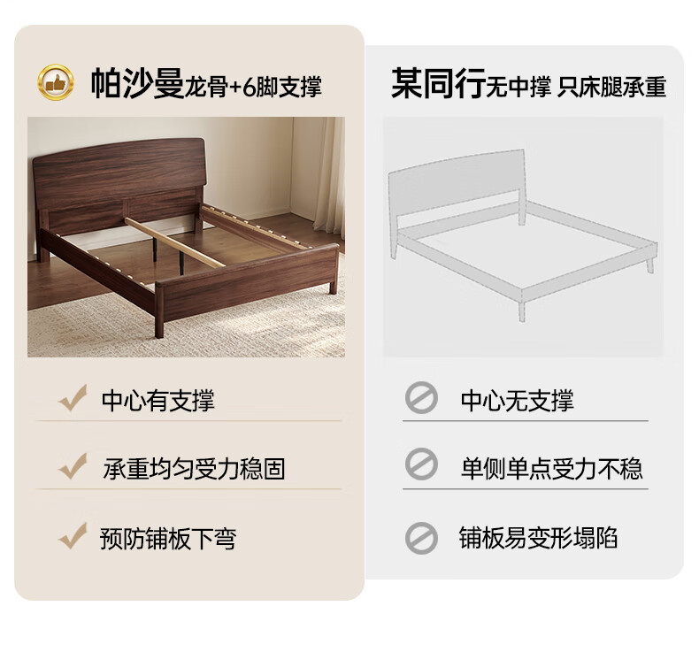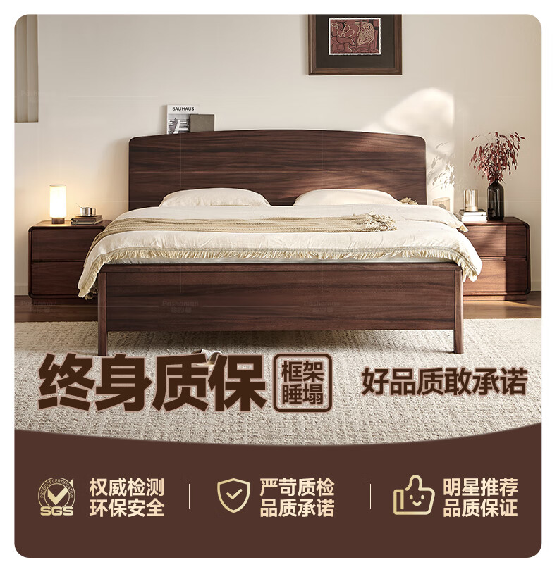 帕沙曼国货补贴全实木床1米8双人床复古主卧原木大板床中古风MC100-Q 【单床】卡槽松木排骨架 1800*2000mm