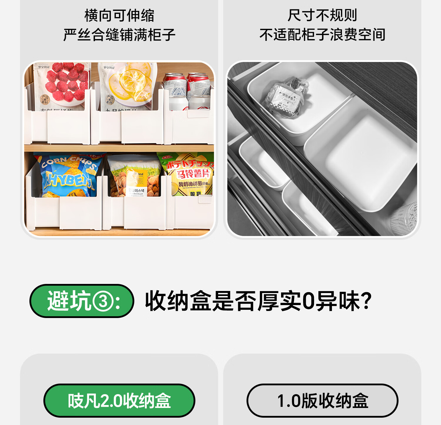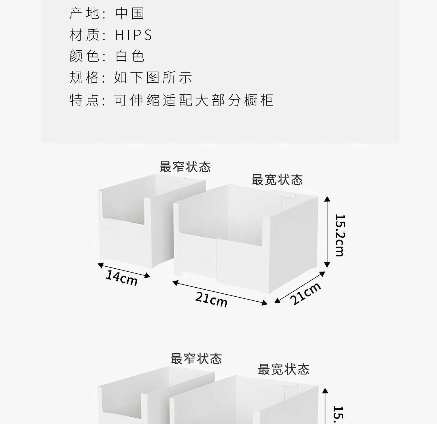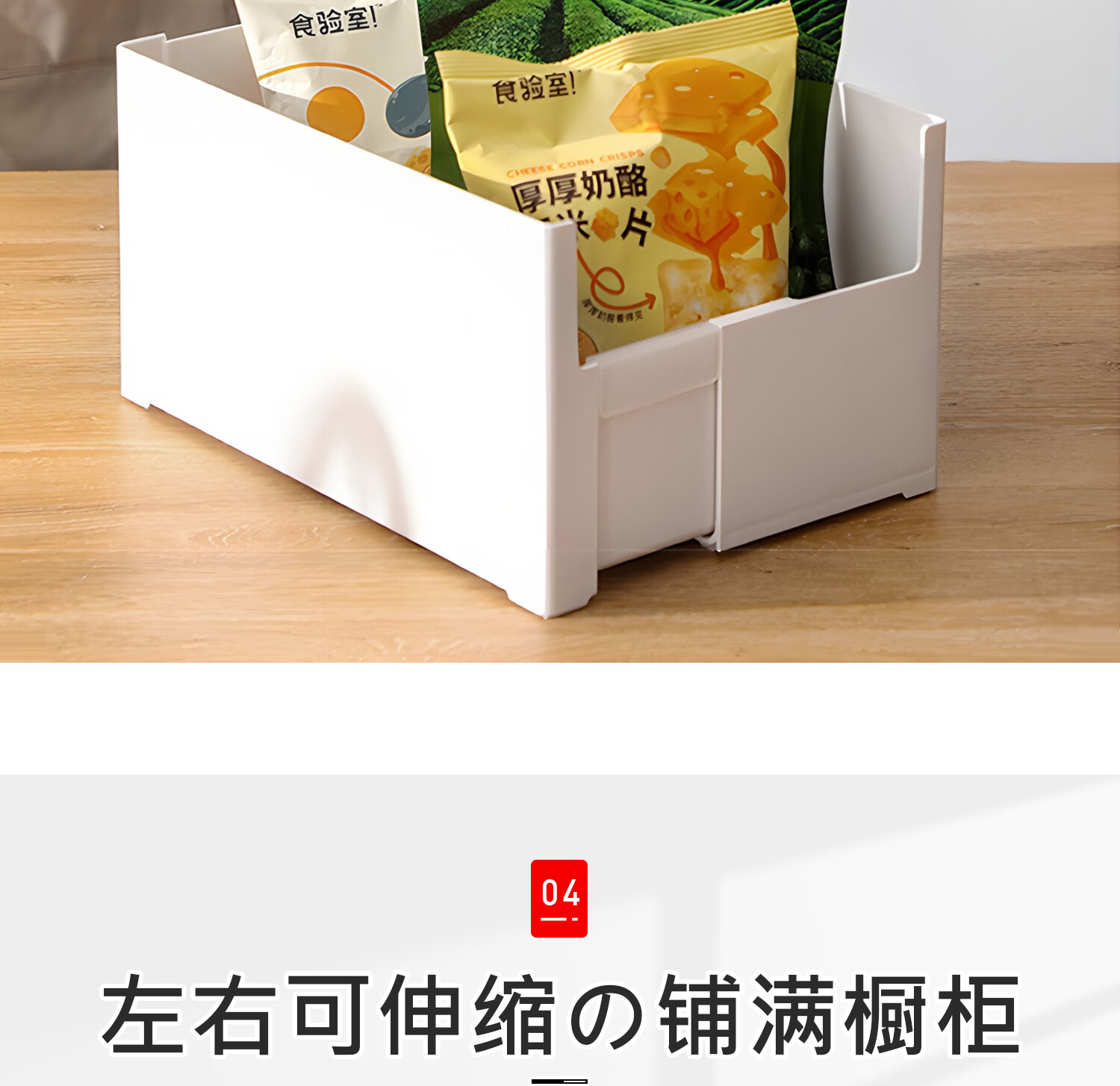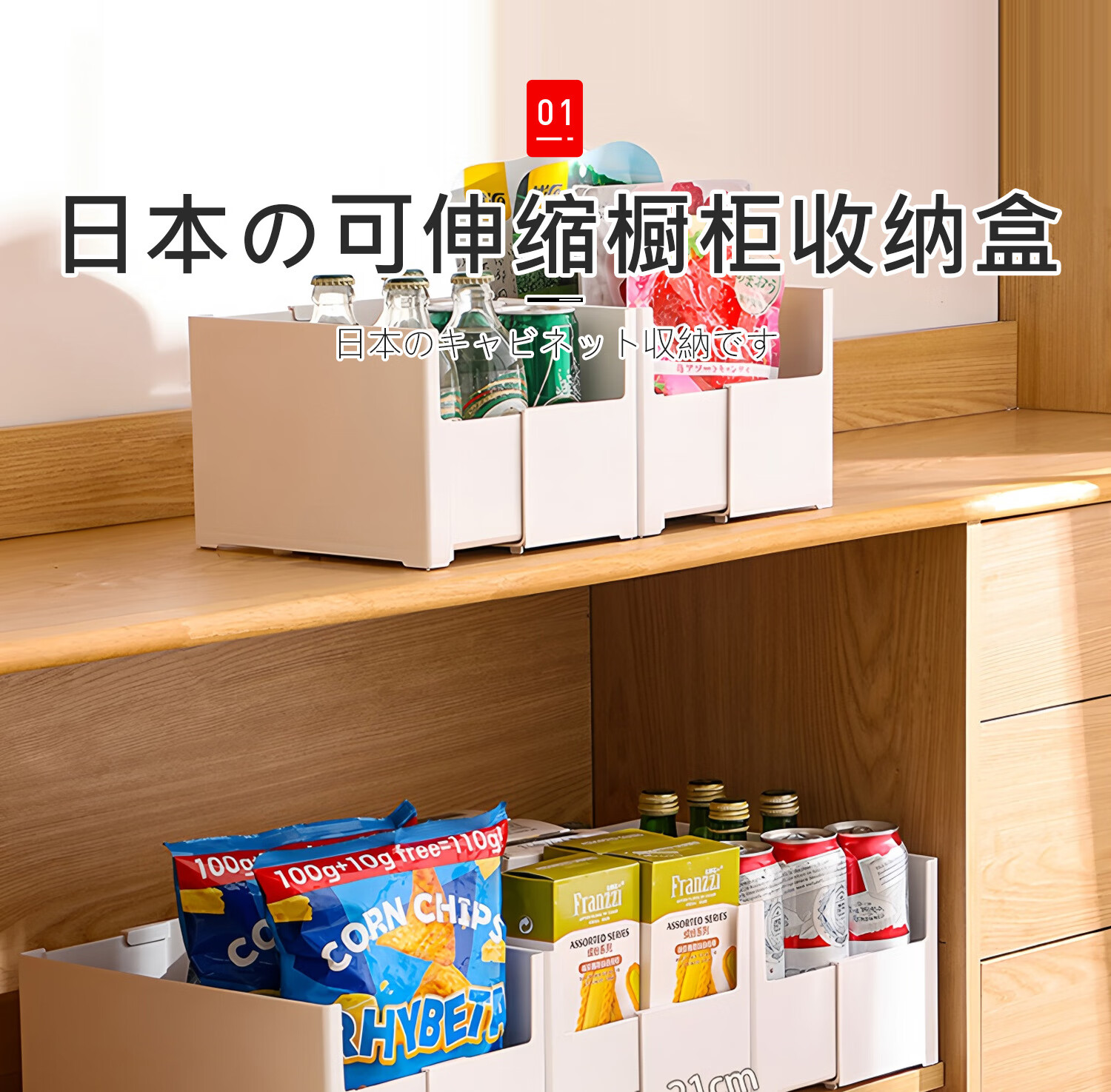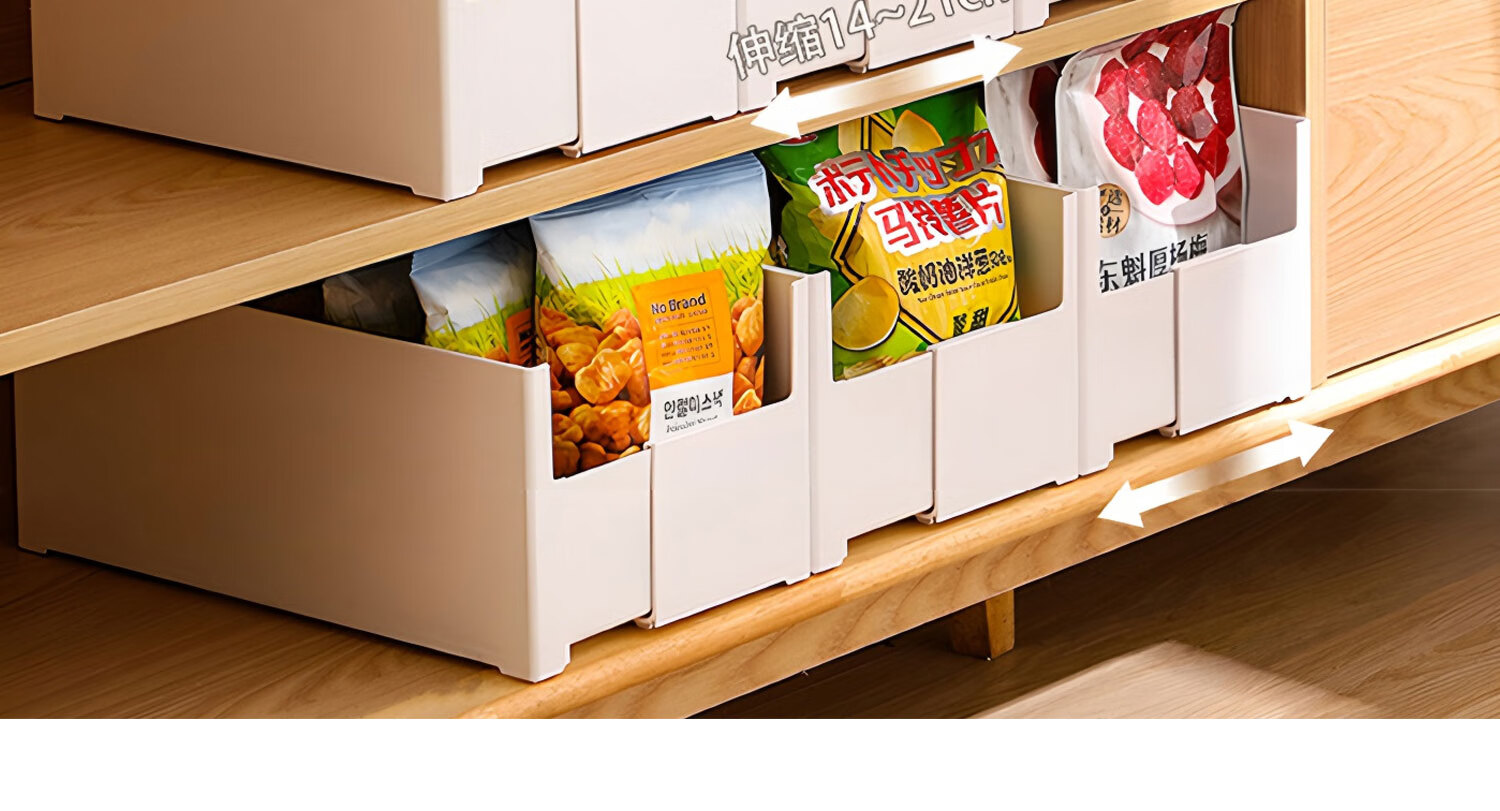 吱凡日本橱柜收纳盒抽屉式可伸缩桌面零食杂物整理盒深柜直角储物盒子 横向伸缩21cm 3个装