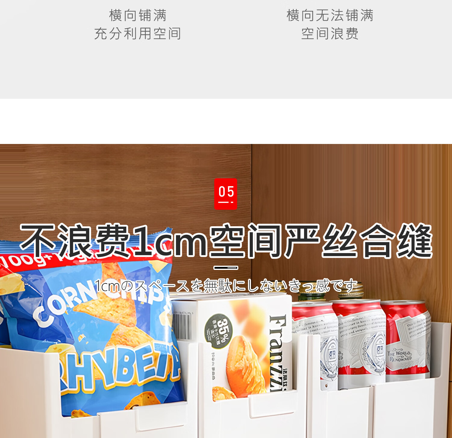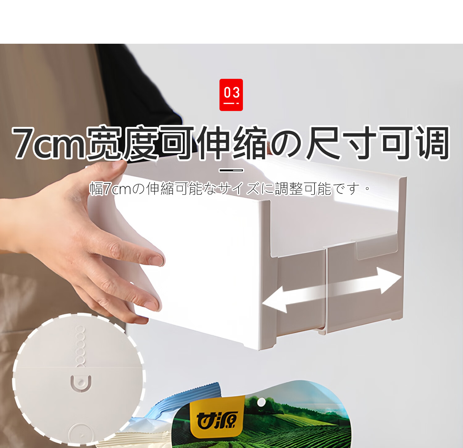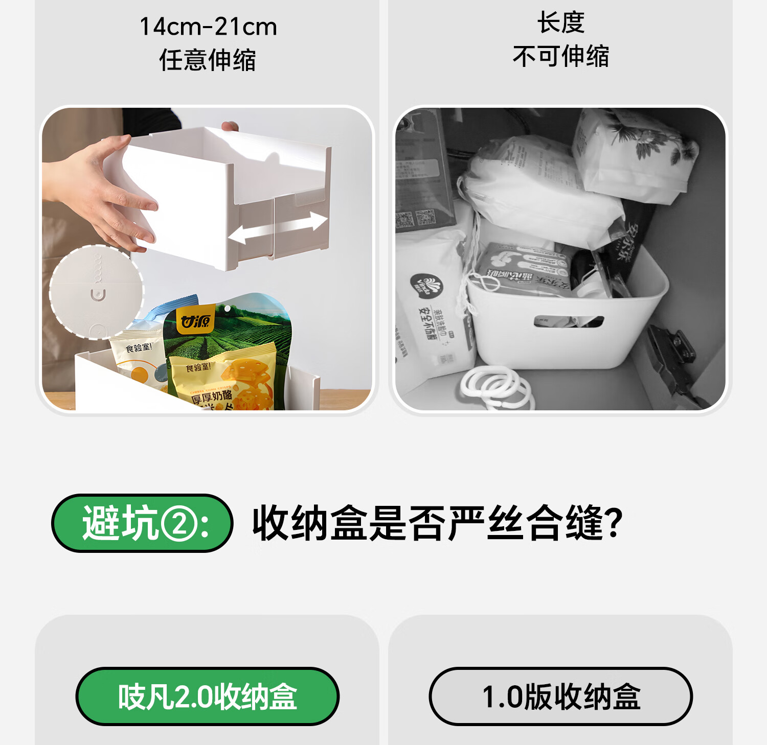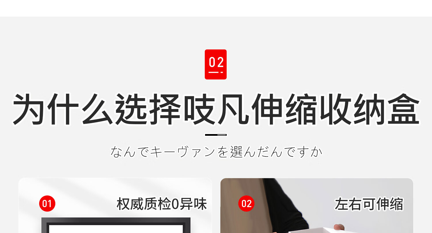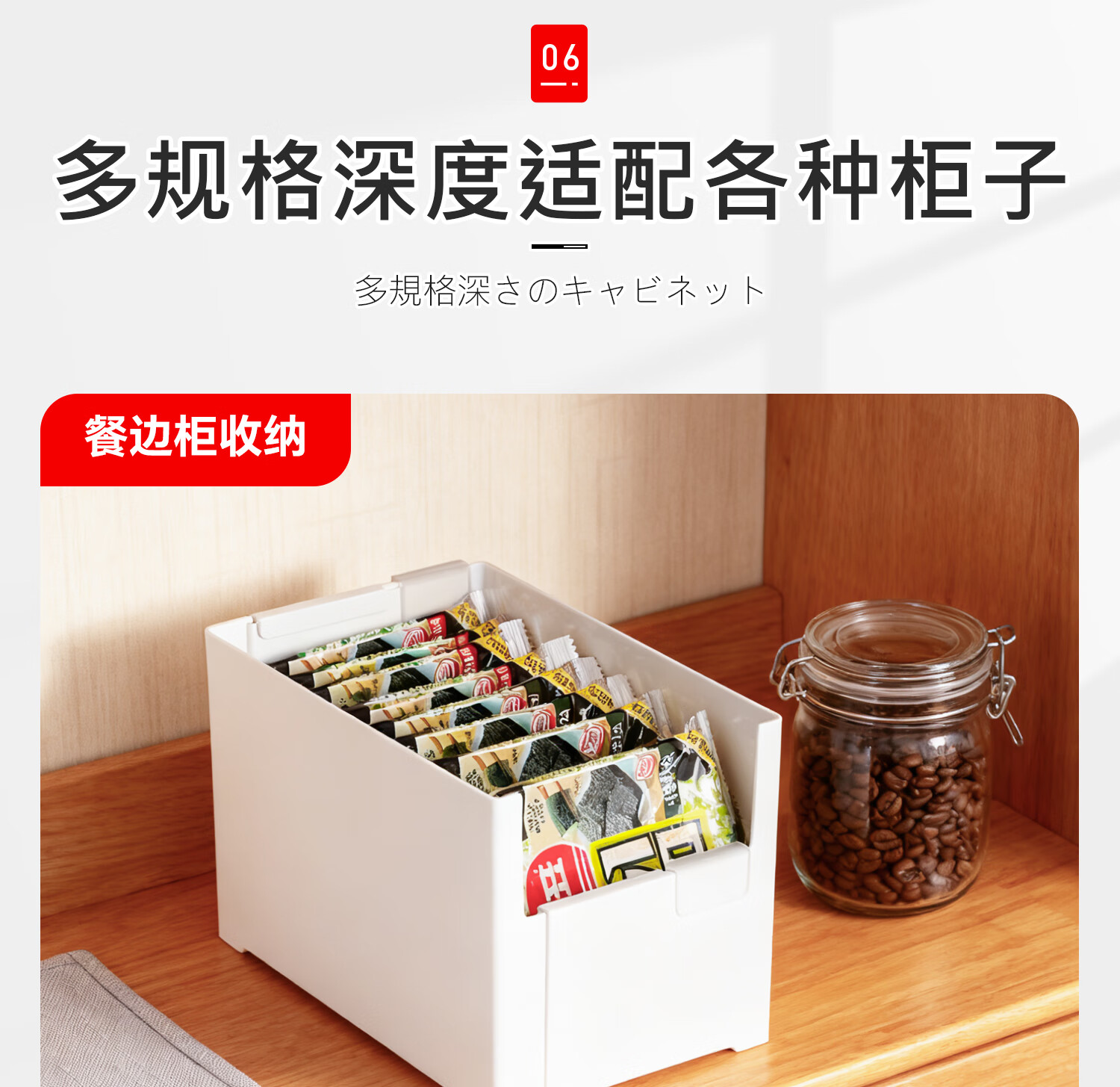吱凡日本橱柜收纳盒抽屉式可伸缩桌面零食杂物整理盒深柜直角储物盒子 横向伸缩21cm 3个装