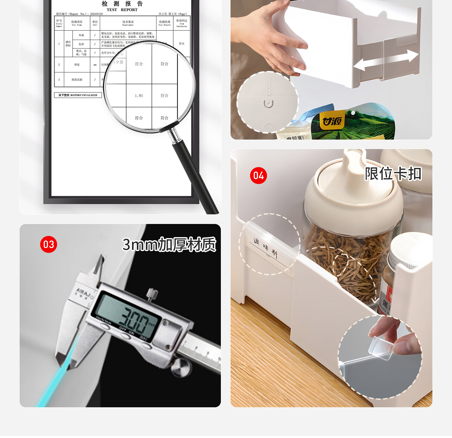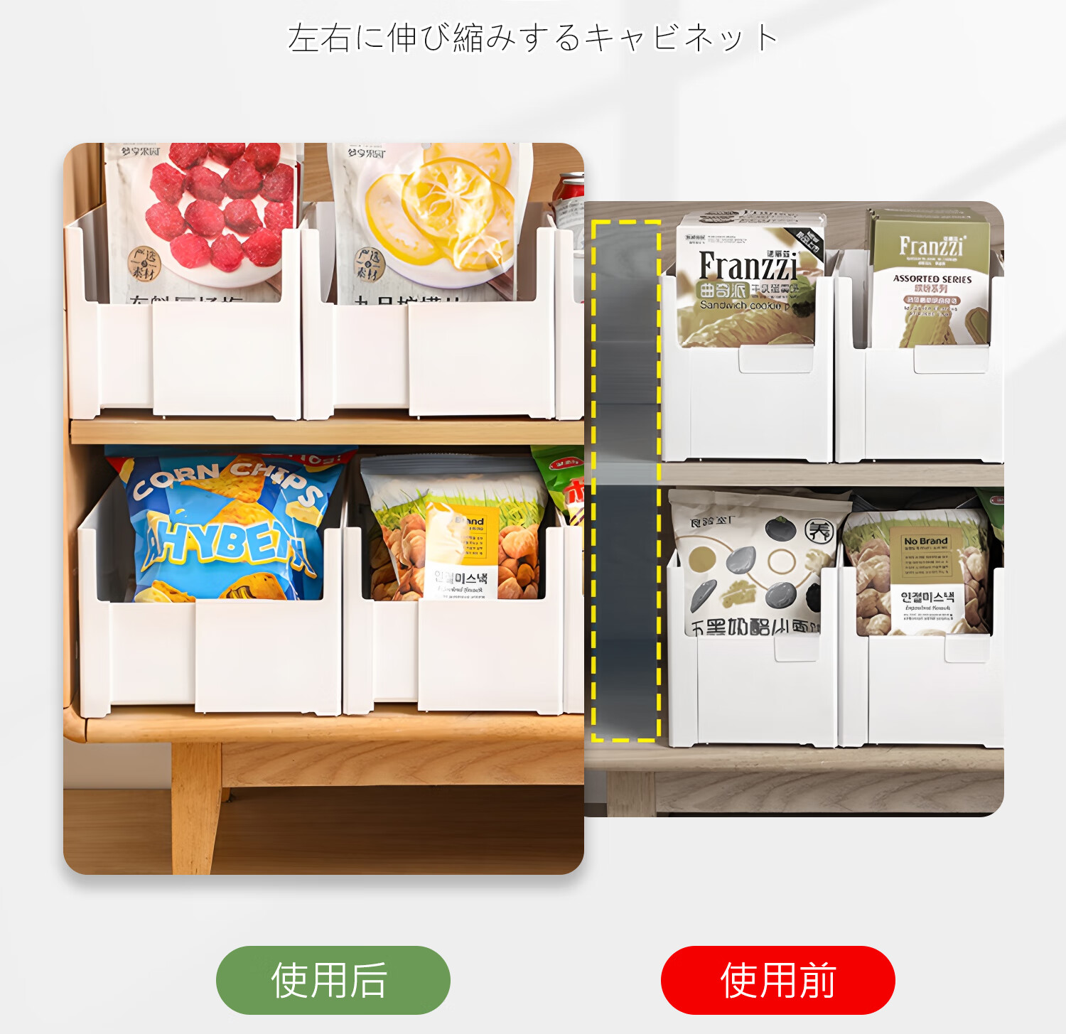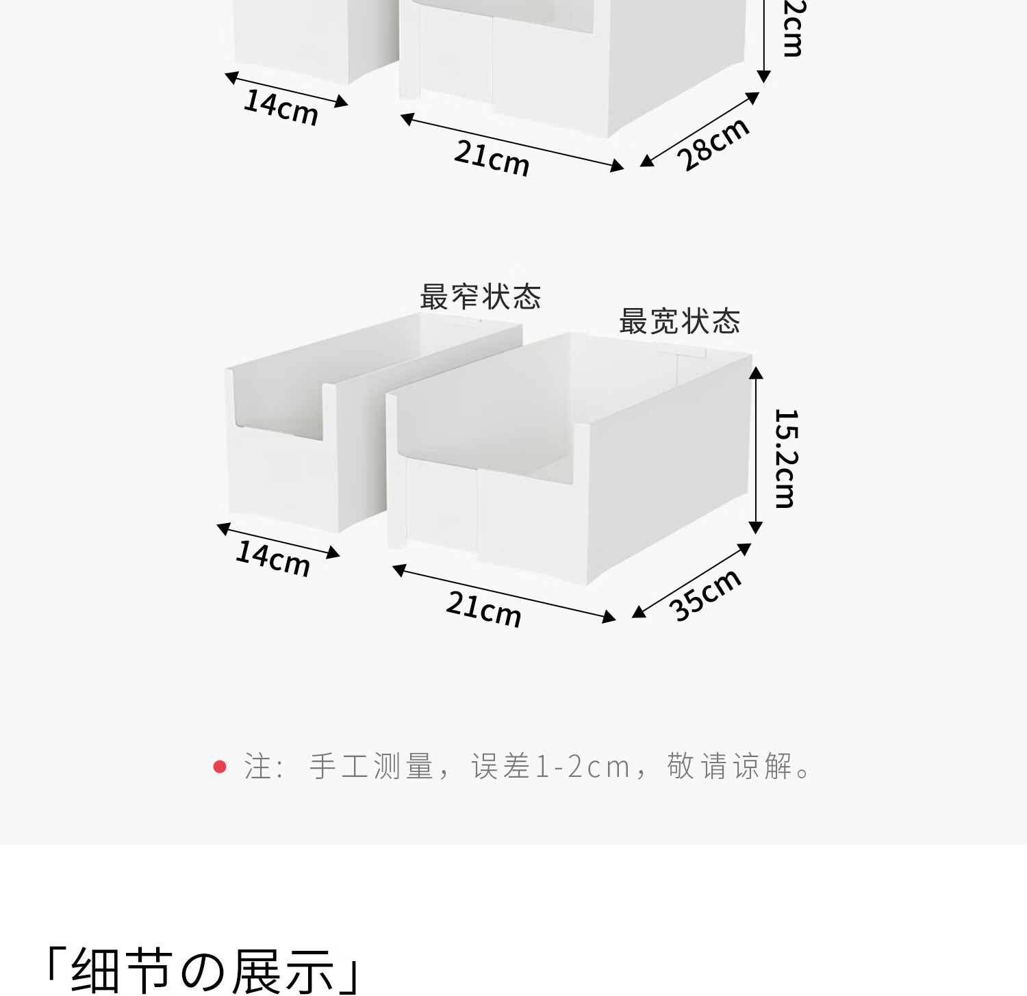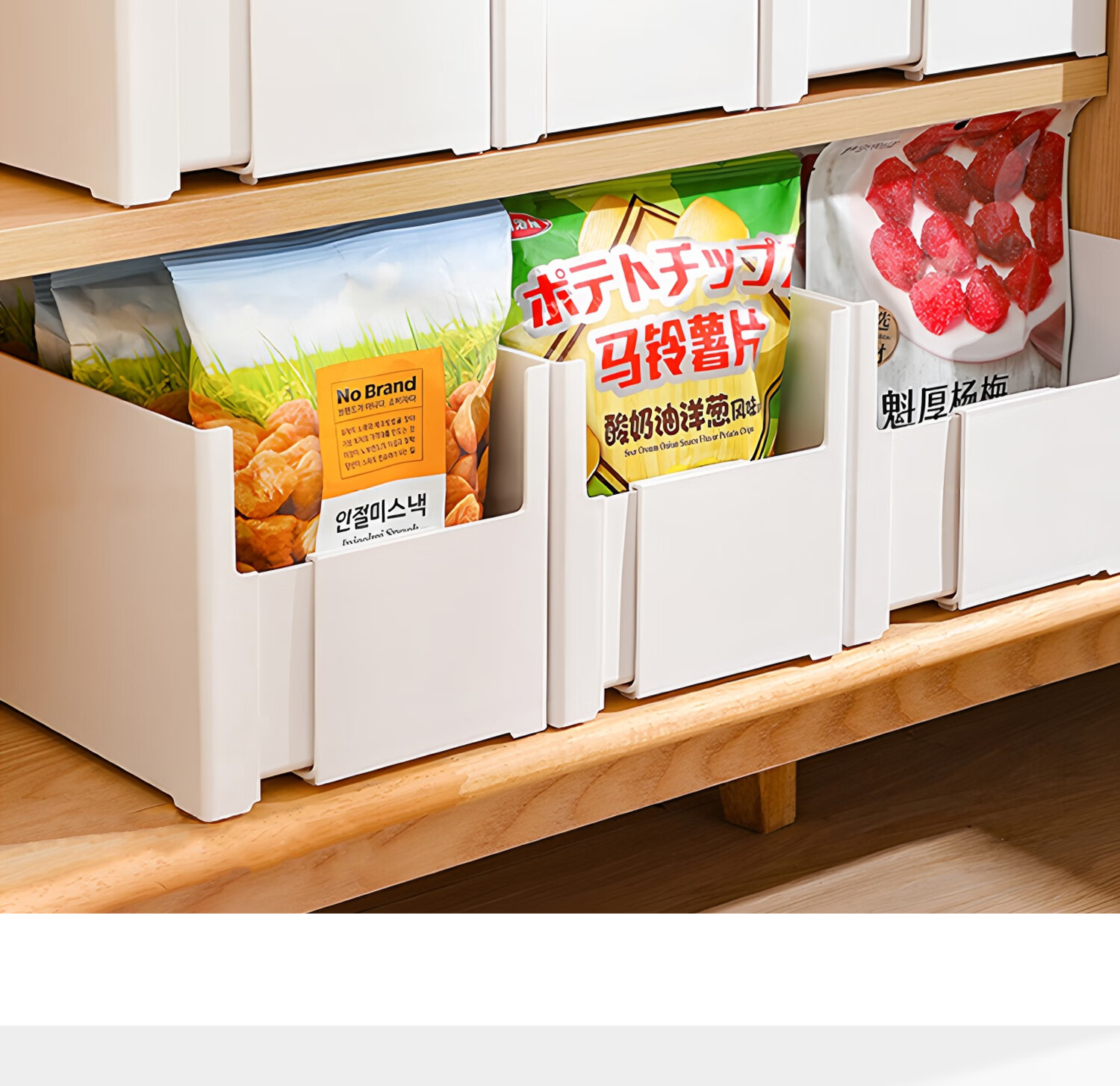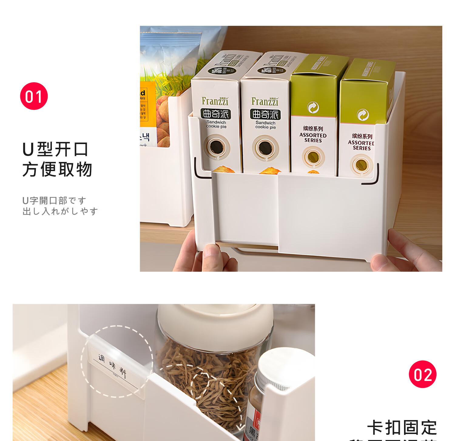 吱凡日本橱柜收纳盒抽屉式可伸缩桌面零食杂物整理盒深柜直角储物盒子 横向伸缩21cm 3个装