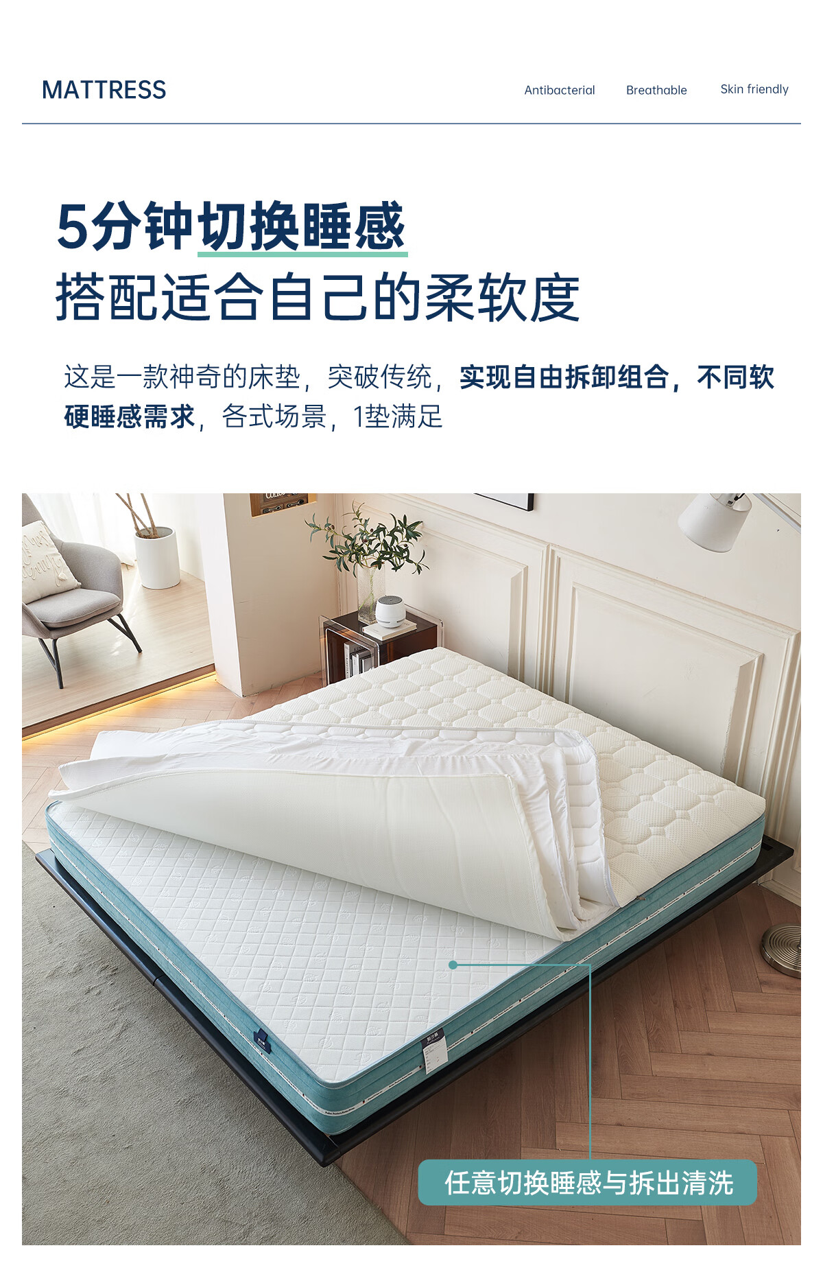 帕沙曼乳胶床垫现代简约卧室软硬可调节弹簧床垫记忆棉Z0013 创新升级【6种睡感 DIY搭配】天然乳胶床垫25cm厚 1800*2000mm