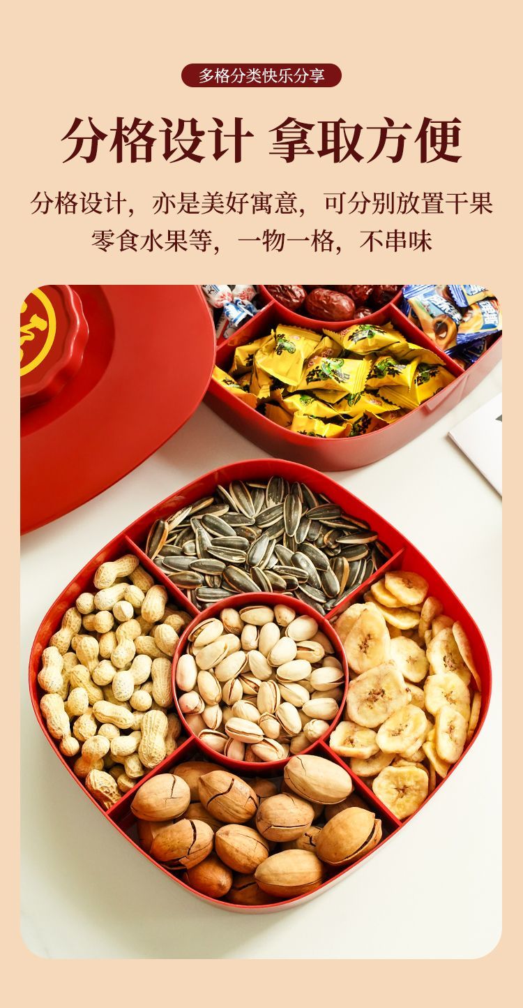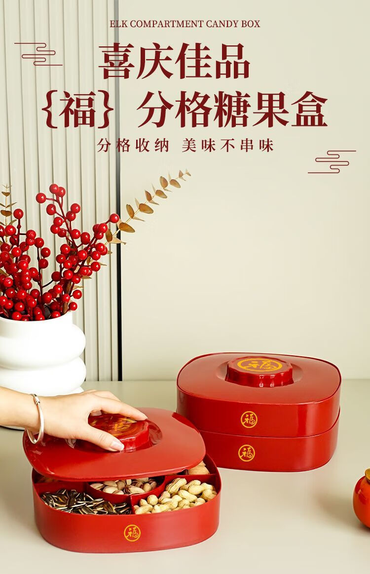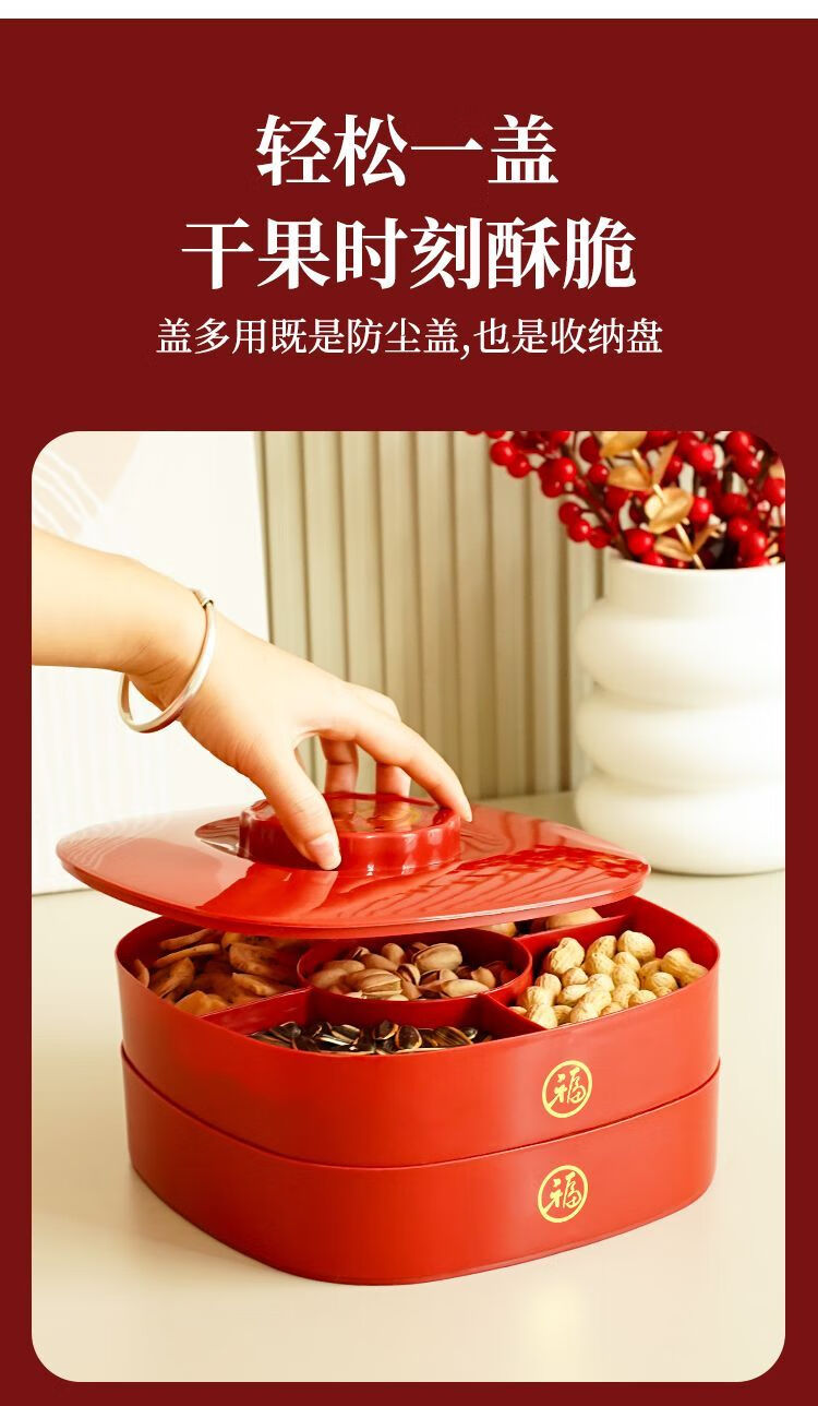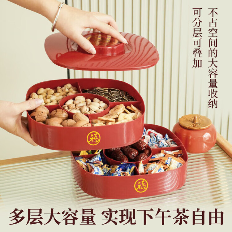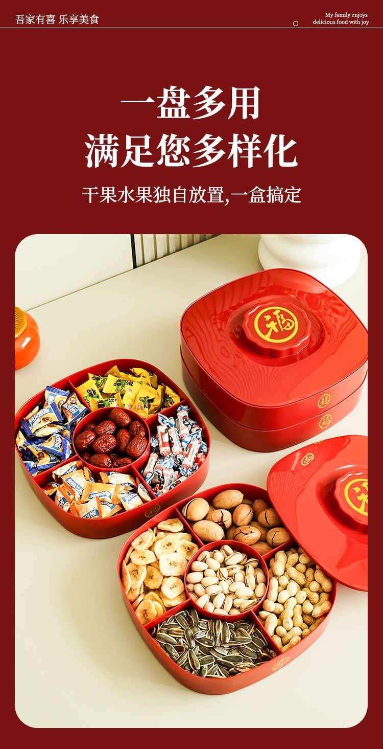 泰禧阁果盘家庭用客厅茶几糖果盒中国风中式结婚高颜值干果盒带盖收纳盒 福气临门(2层/10分格)