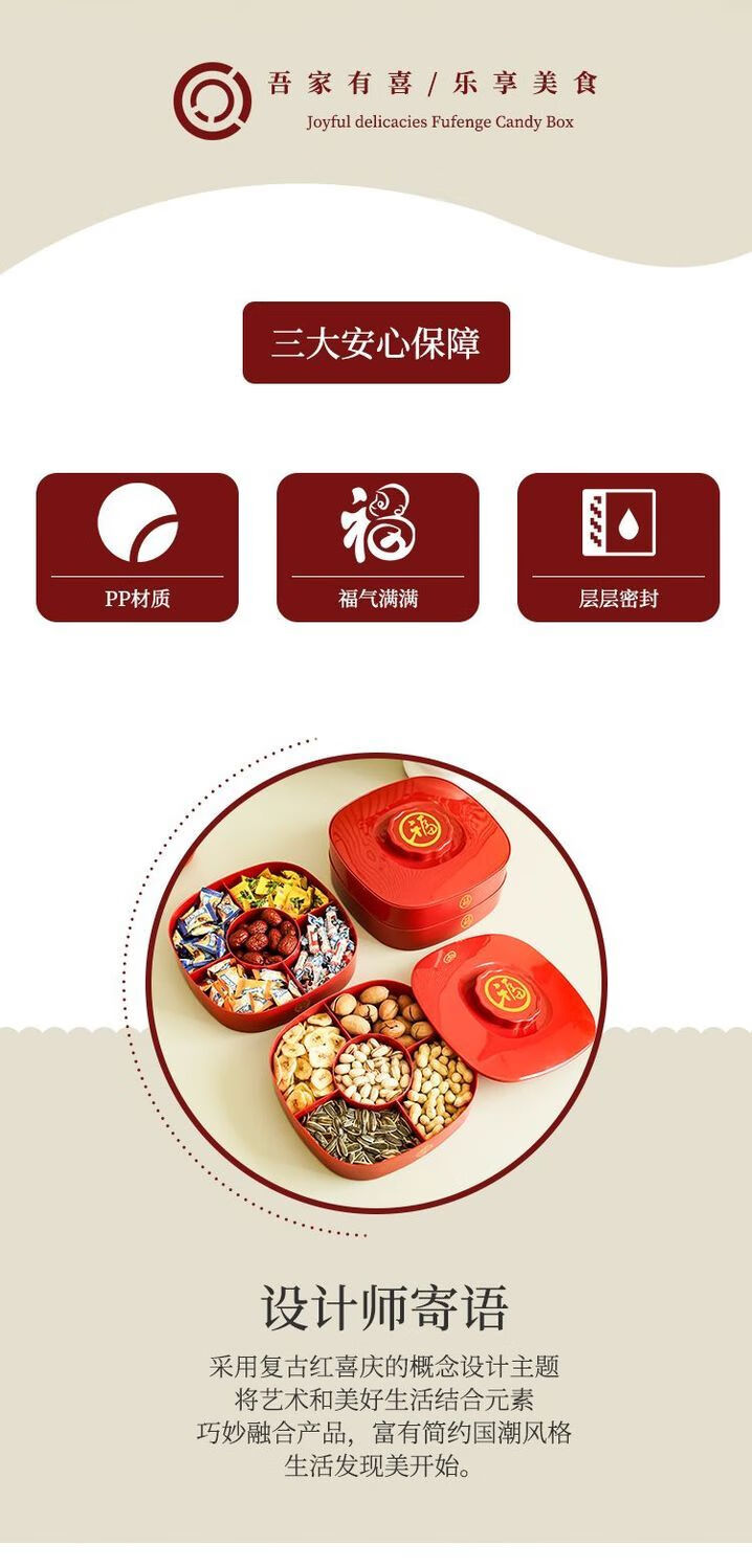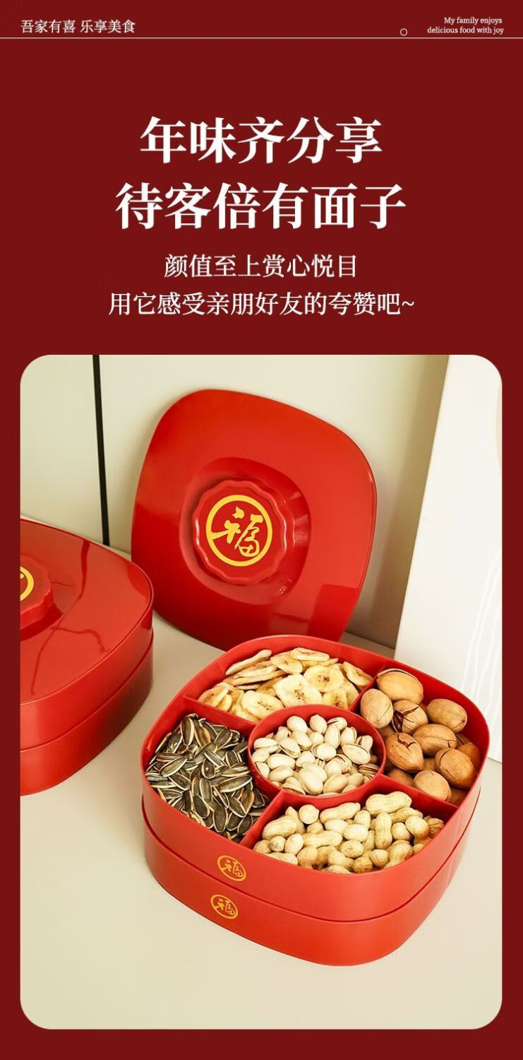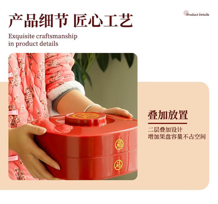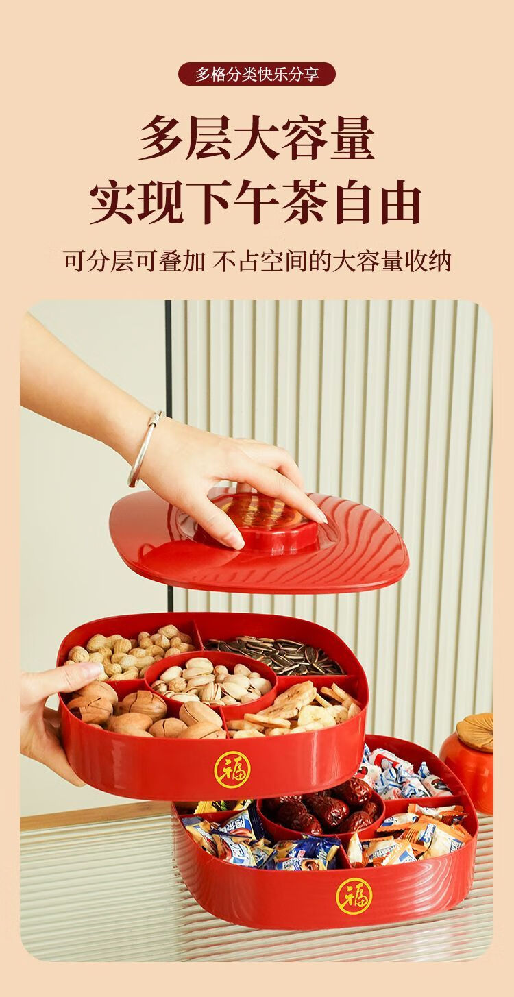 泰禧阁果盘家庭用客厅茶几糖果盒中国风中式结婚高颜值干果盒带盖收纳盒 福气临门(2层/10分格)