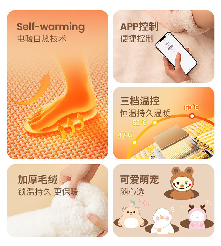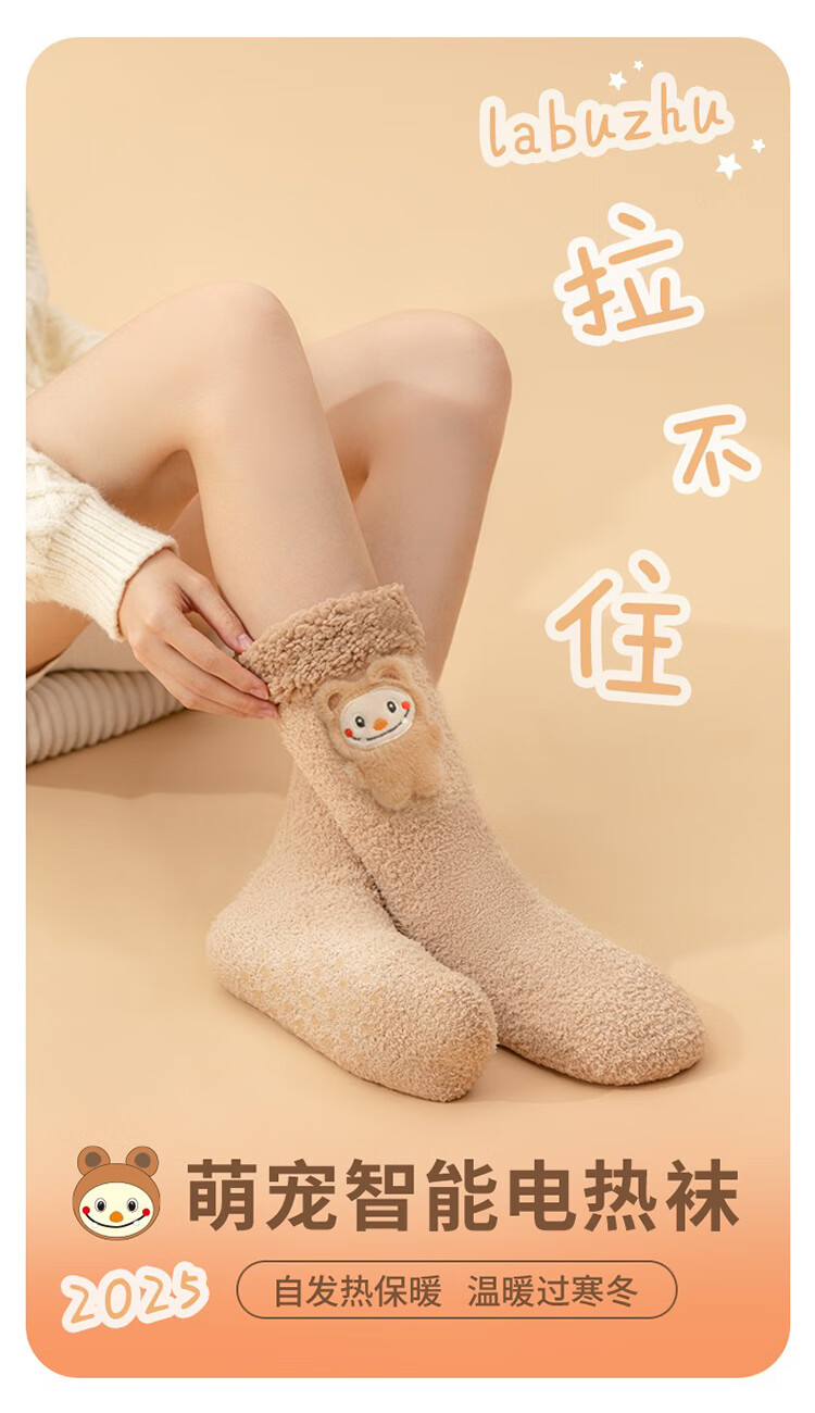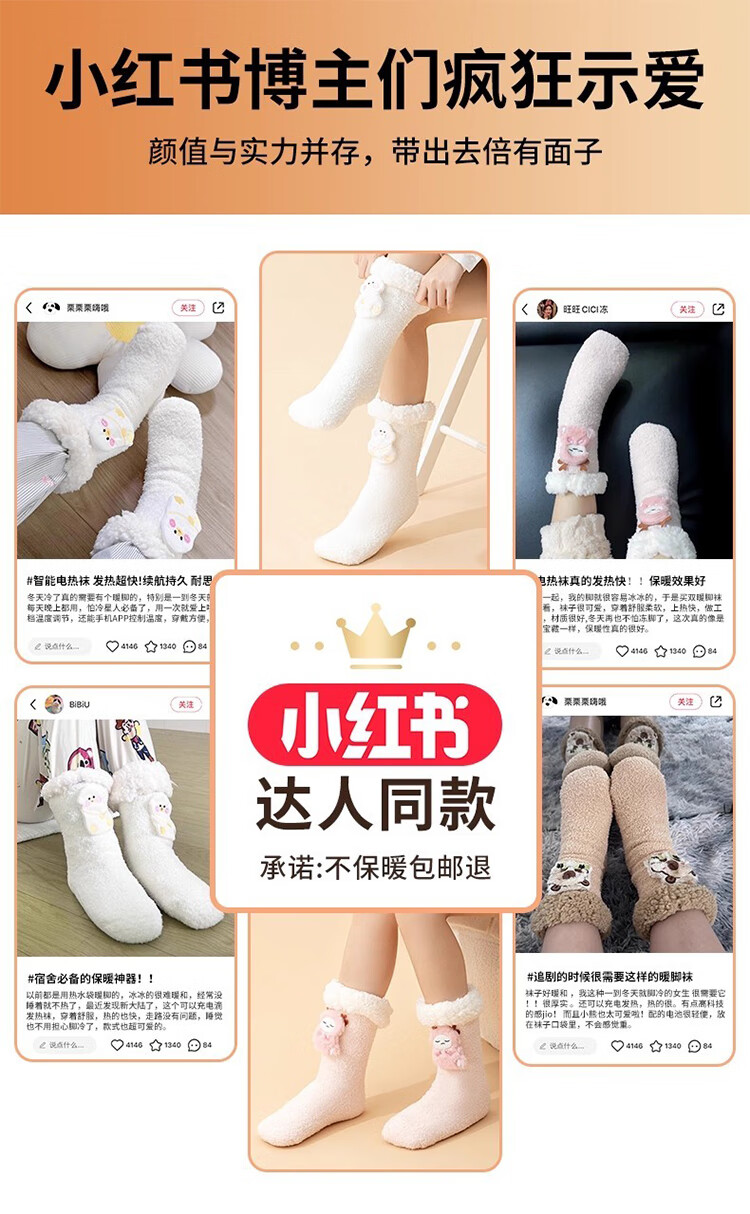 筏芯德国发热袜子女生冬天暖脚宝神器保暖加热暖被窝床上睡觉充电捂脚 拉不住萌宠-APP款【保暖8h+可行走可水洗】