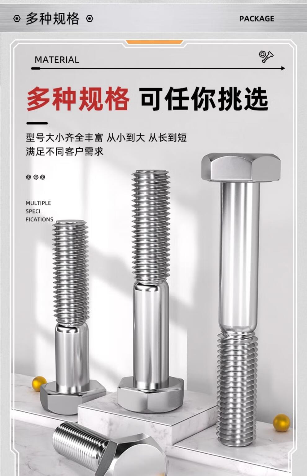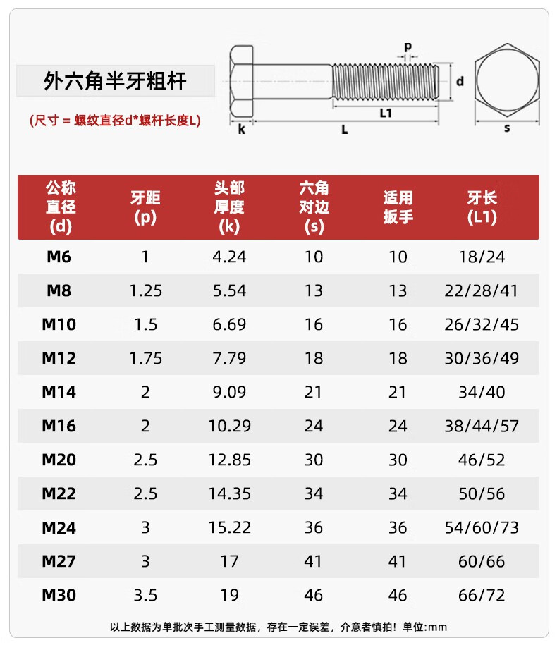 天卓五金粗杆半牙螺丝316不锈钢外六角螺栓半螺纹半扣螺钉螺杆M6M8M10-M30 M6*150牙长24-5个