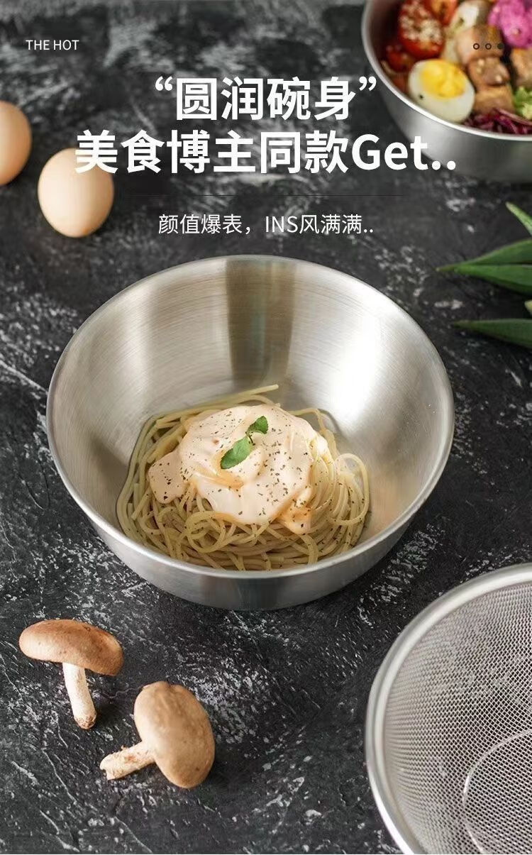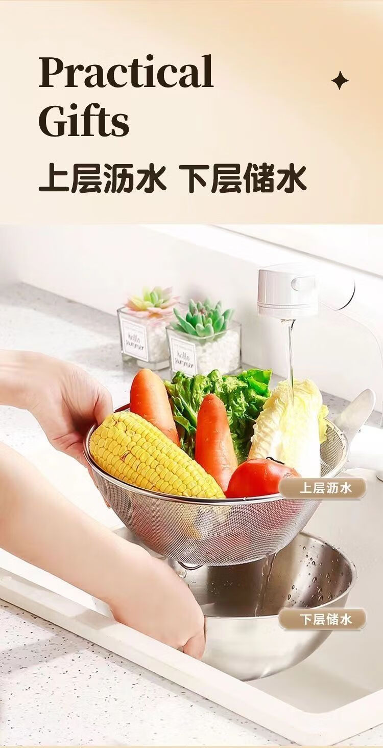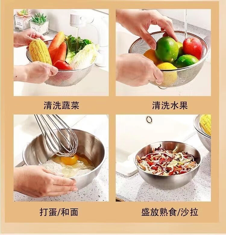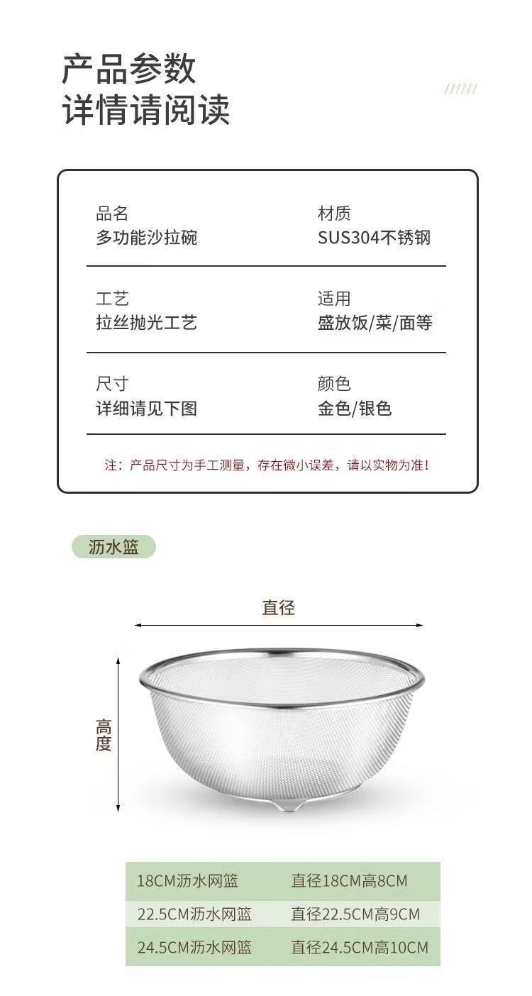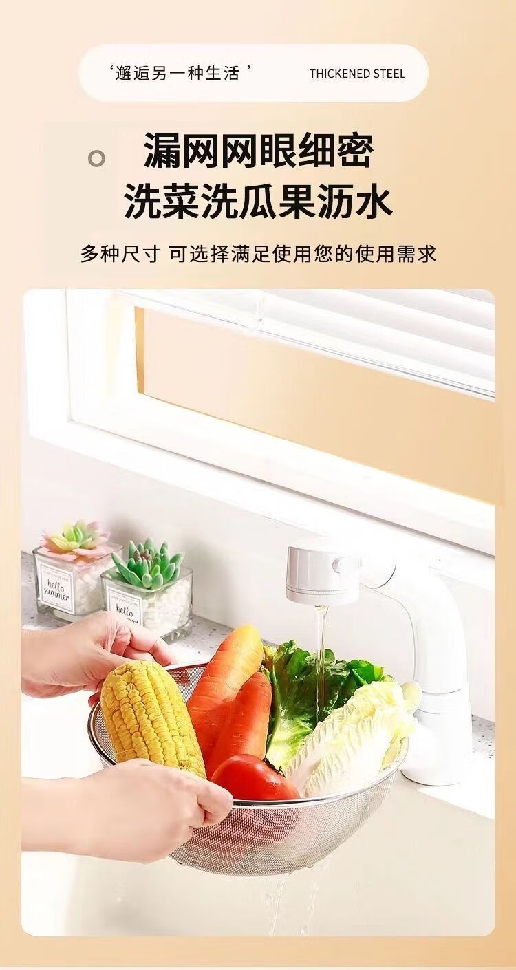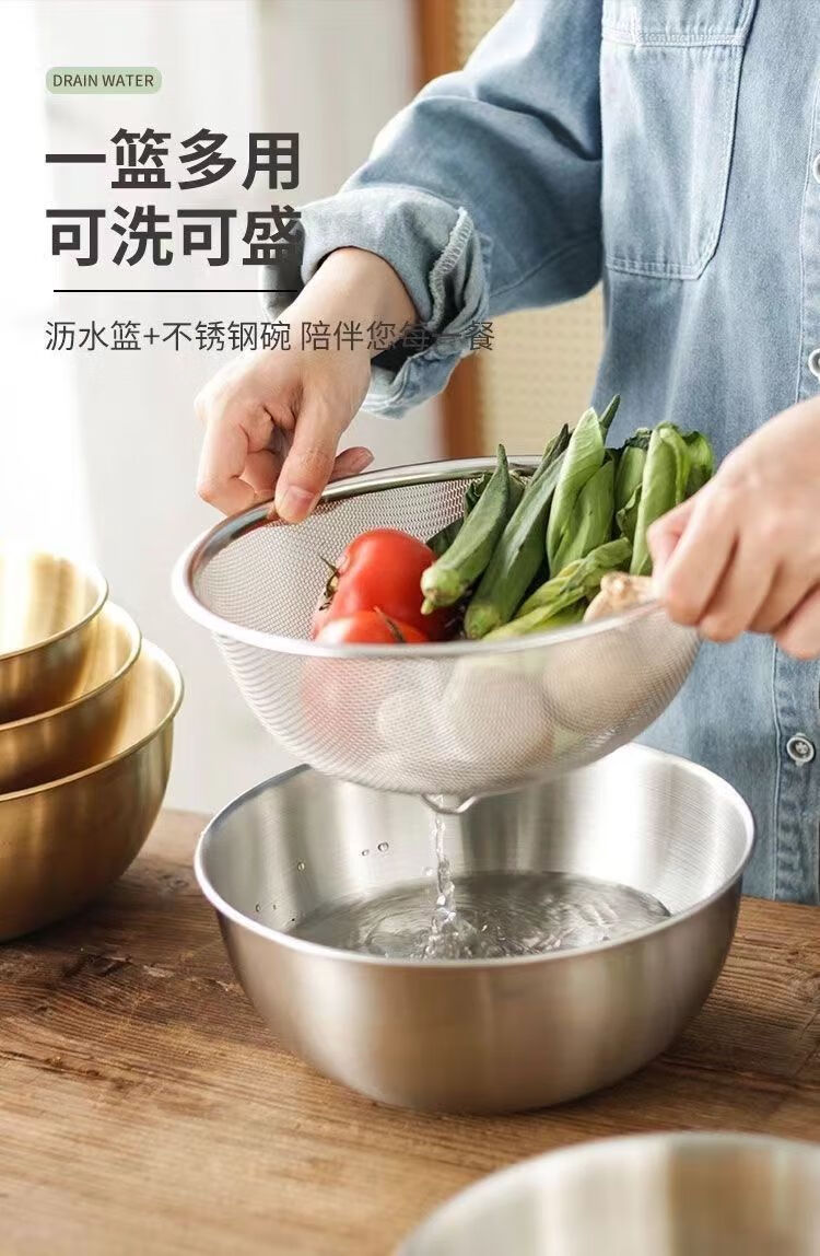 咏夏316不锈钢沥水篮两件套家用厨房漏盆洗菜细孔沥水篮漏水淘米过滤 特厚316材质 25CM盆+24CM沥水篮