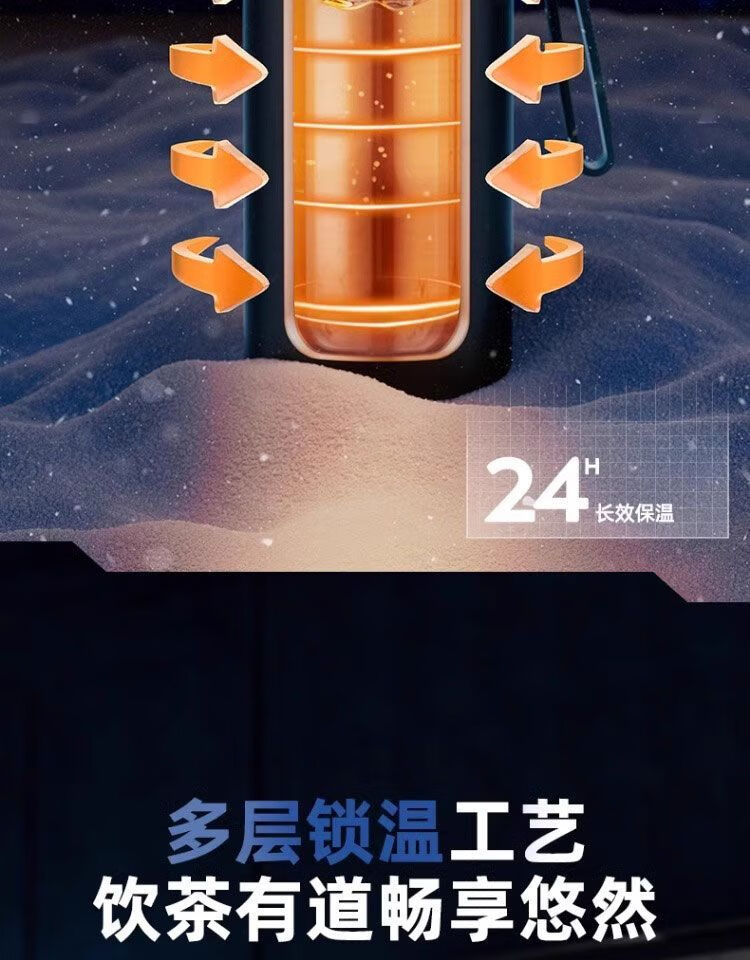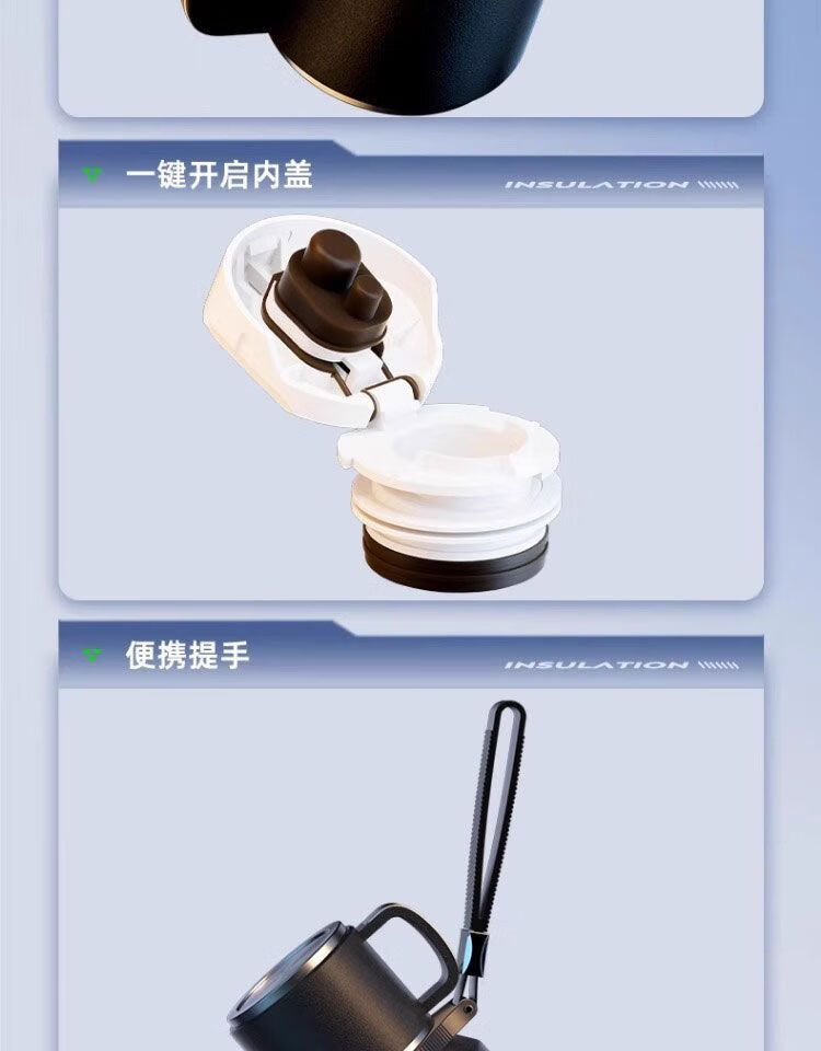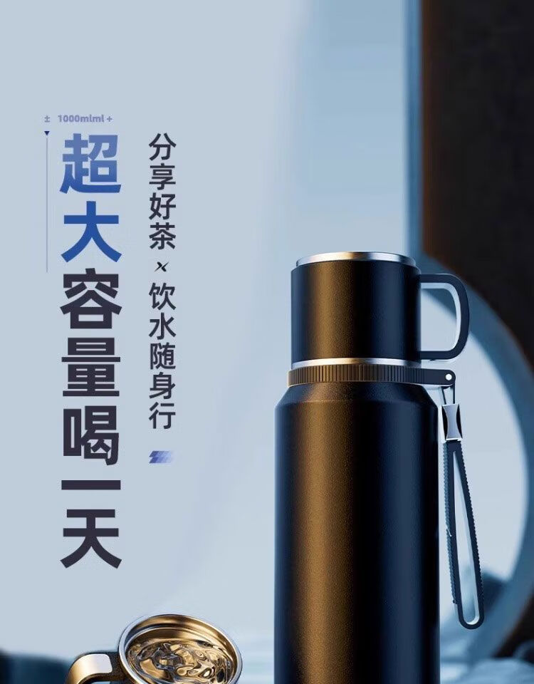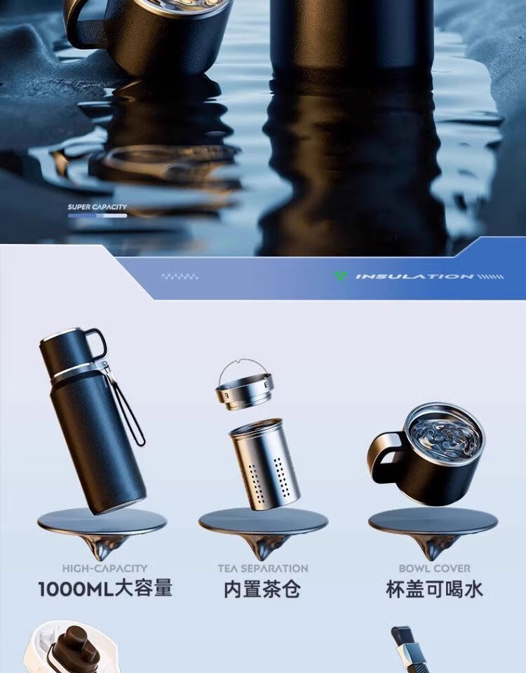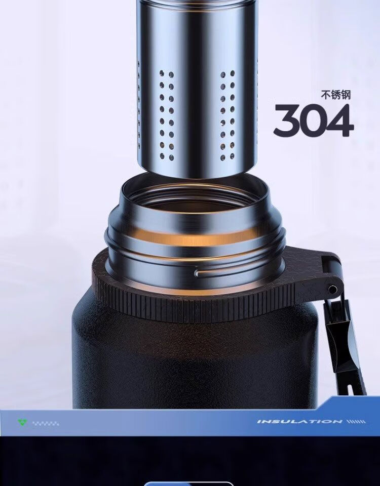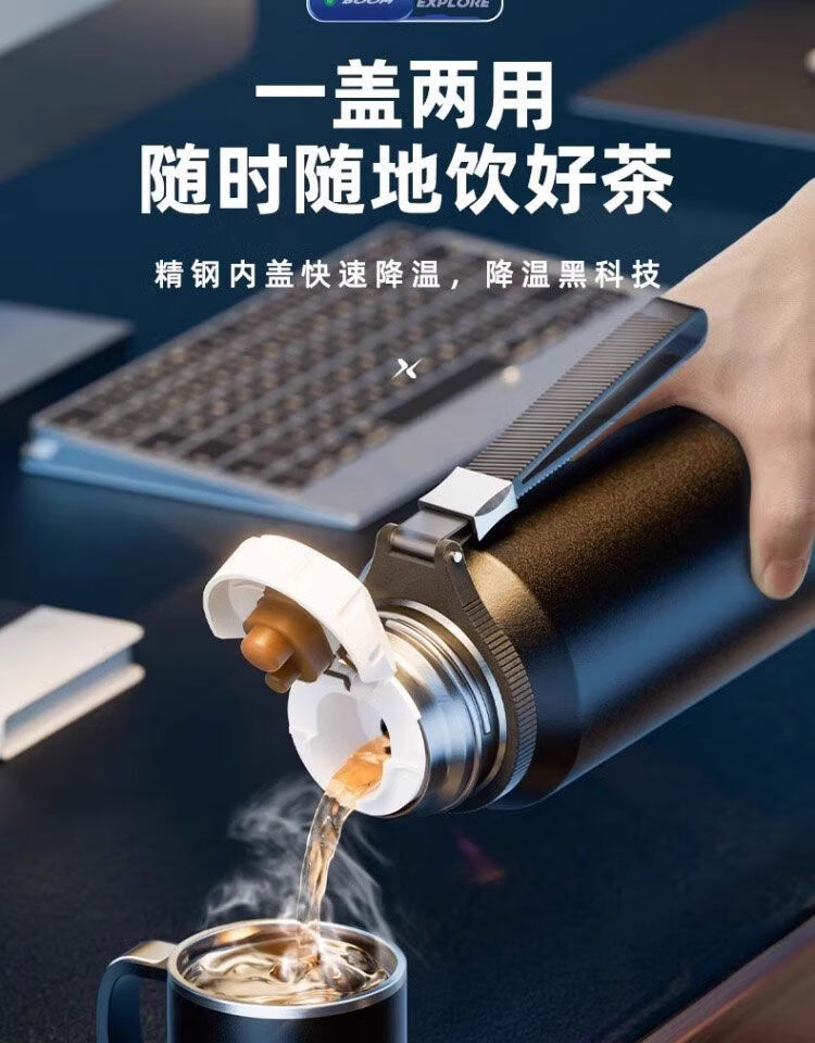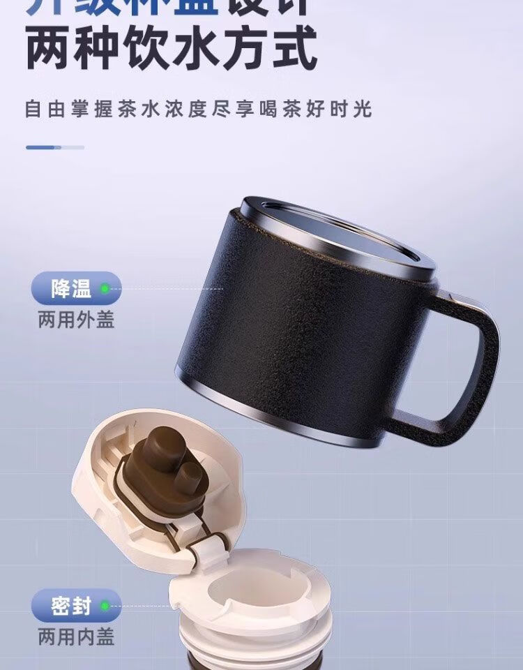 咏夏超大容量保温杯316不锈钢双盖便携防漏男女同款户外运动泡茶水杯 【耀石黑】625ML+茶水分离 【316不锈钢材质】