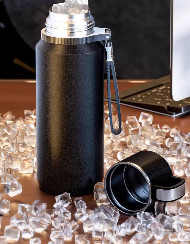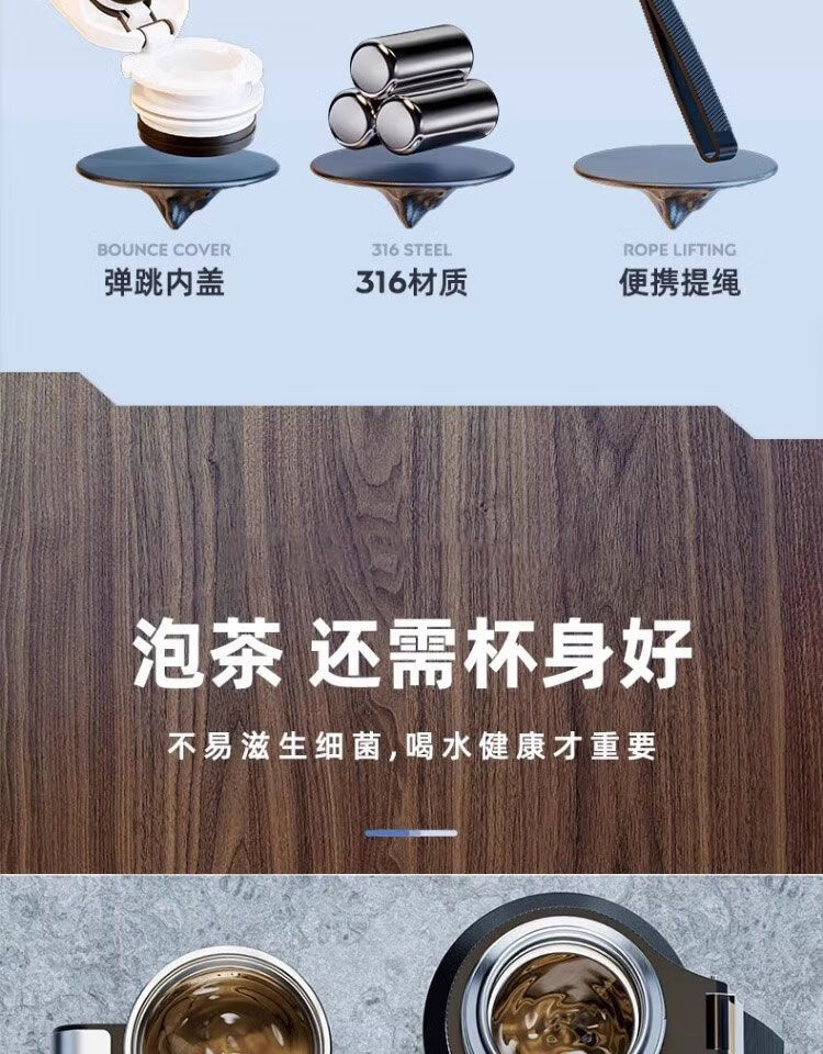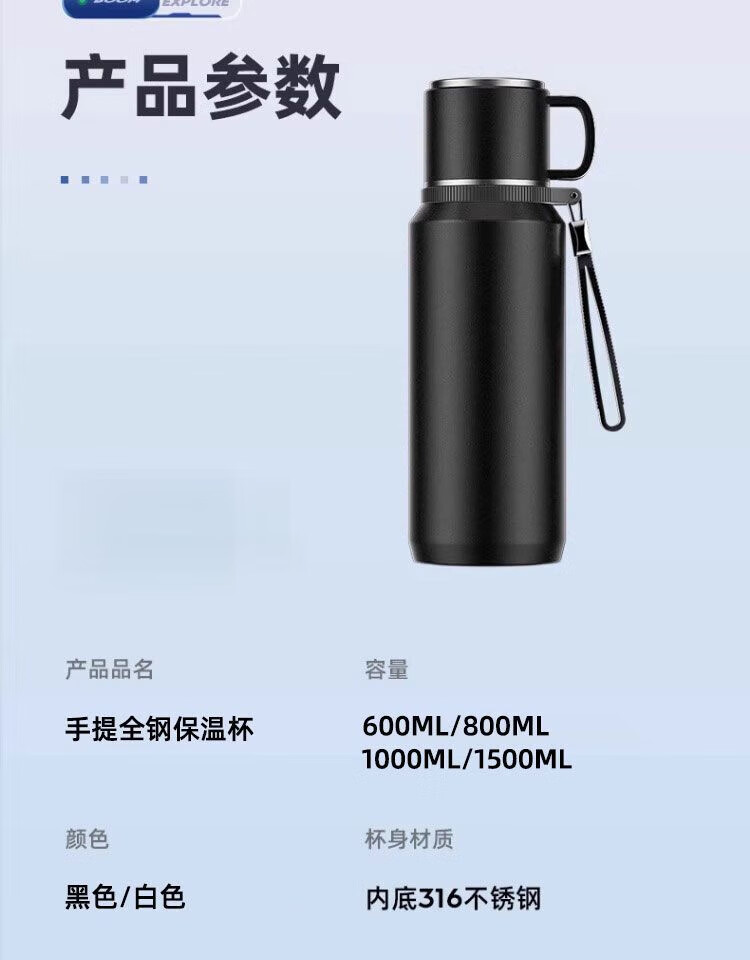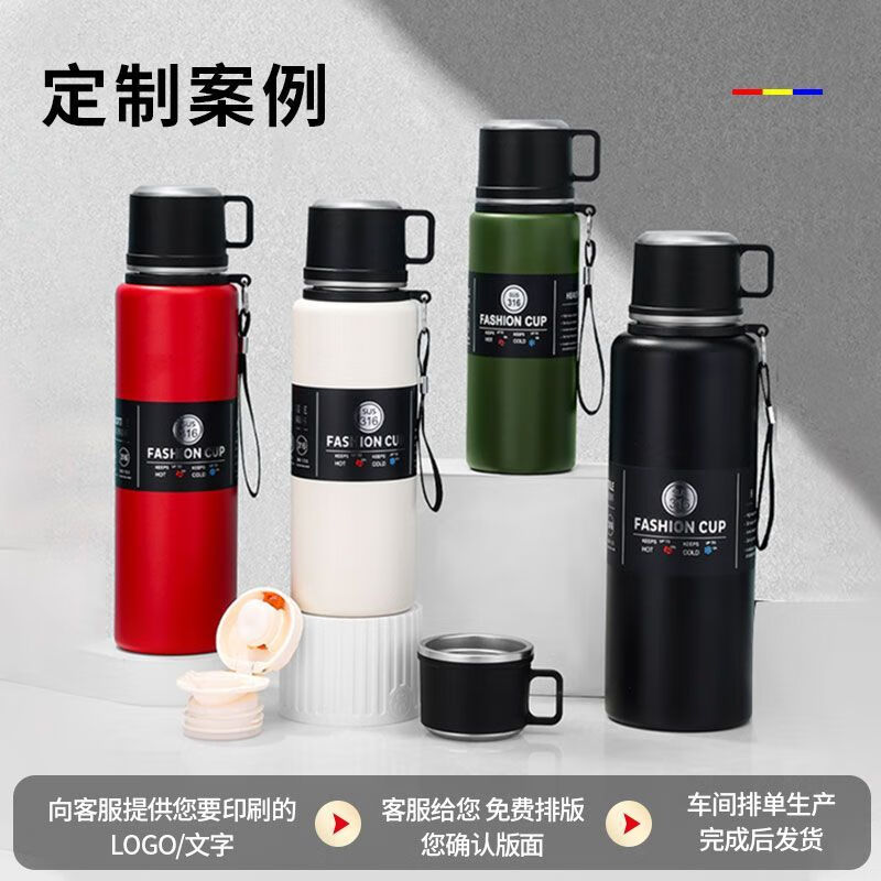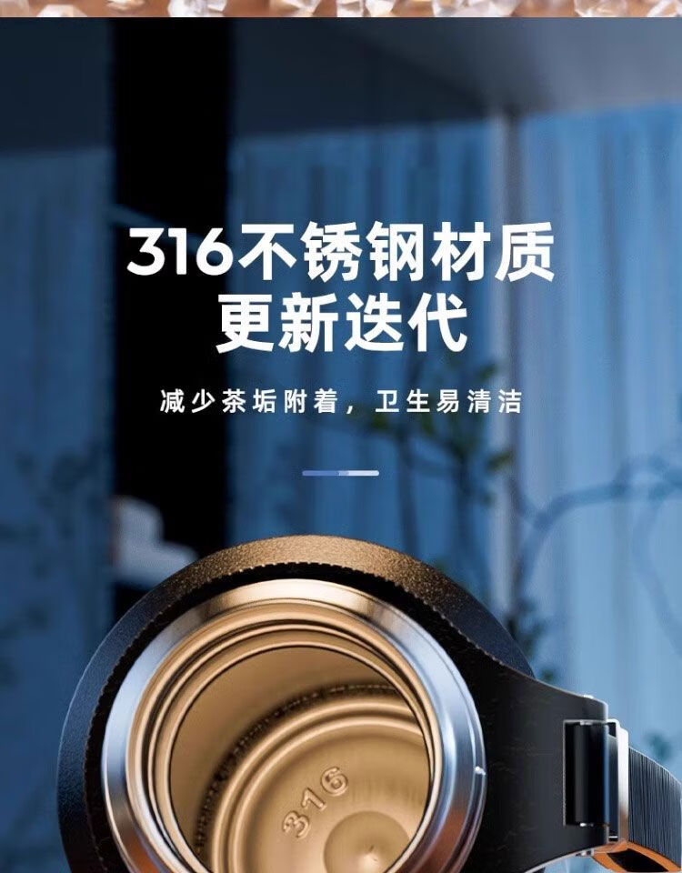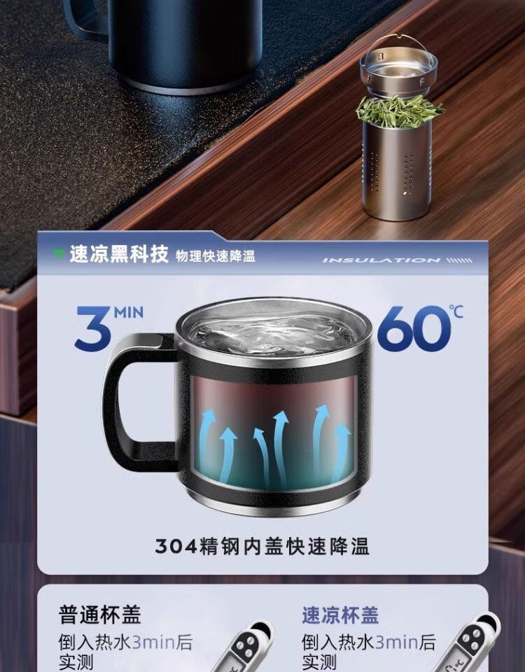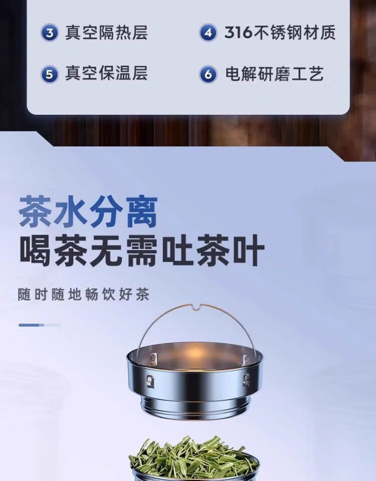 咏夏超大容量保温杯316不锈钢双盖便携防漏男女同款户外运动泡茶水杯 【耀石黑】625ML+茶水分离 【316不锈钢材质】