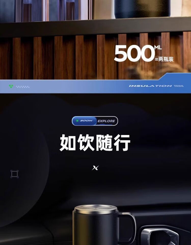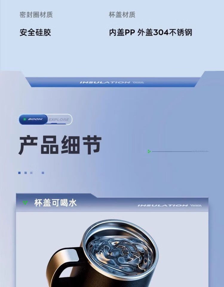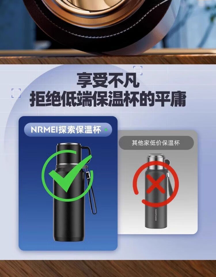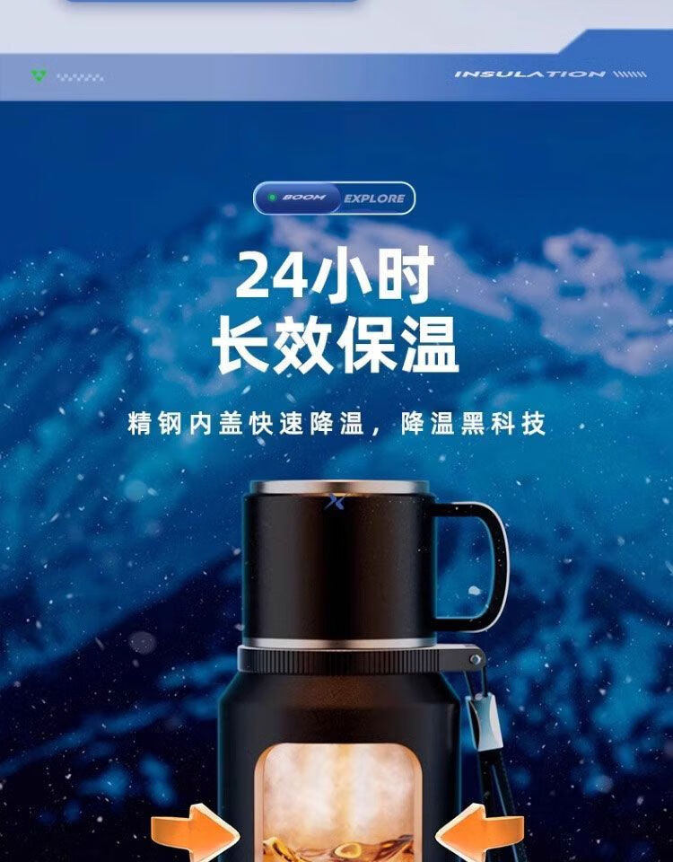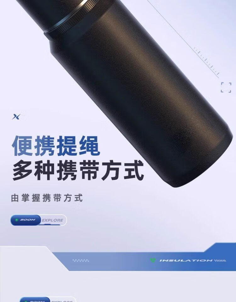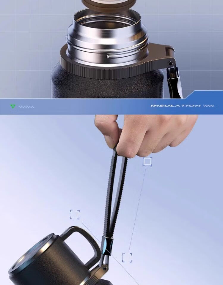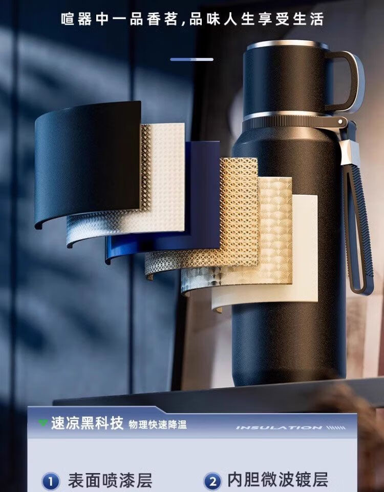 咏夏超大容量保温杯316不锈钢双盖便携防漏男女同款户外运动泡茶水杯 【耀石黑】625ML+茶水分离 【316不锈钢材质】