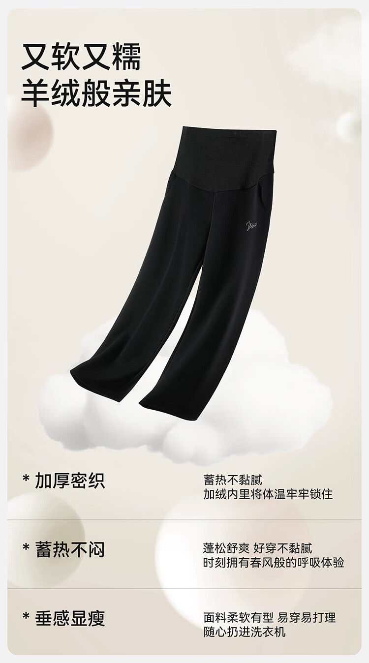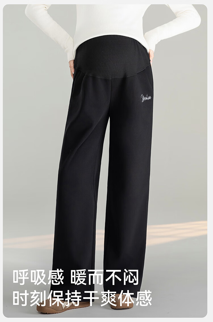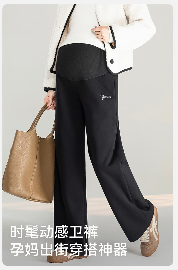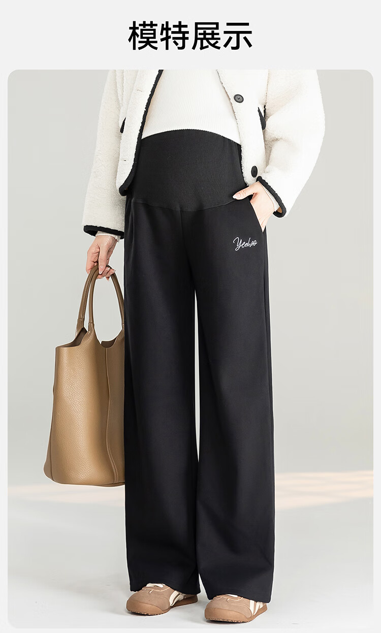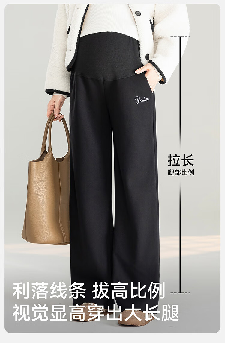英氏(YEEHOO)秋冬加绒孕妇裤外穿托腹裤垂顺阔腿裤全孕期可穿时尚显瘦 黑色 XXL【建议体重145-160斤】