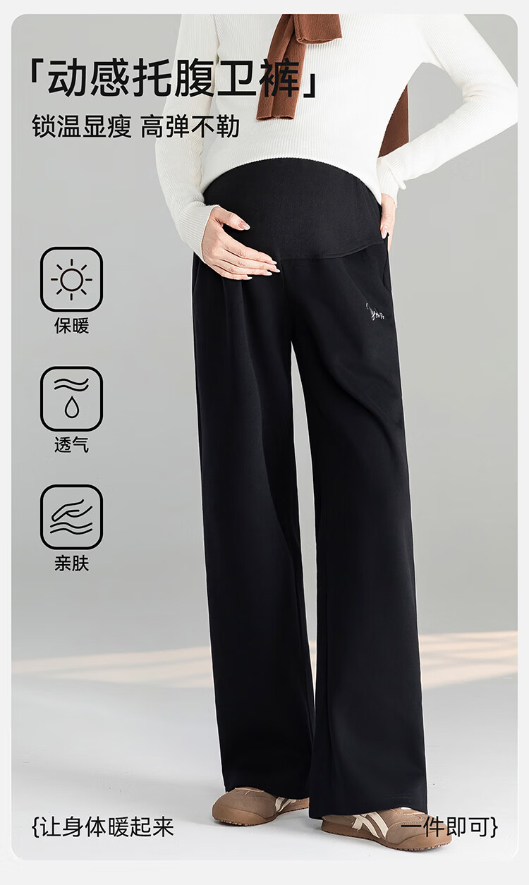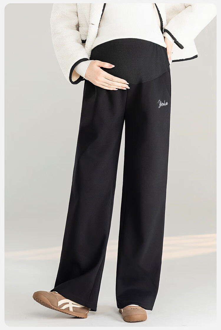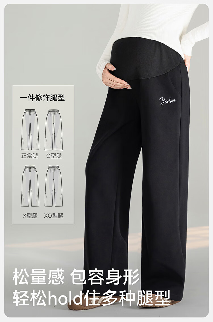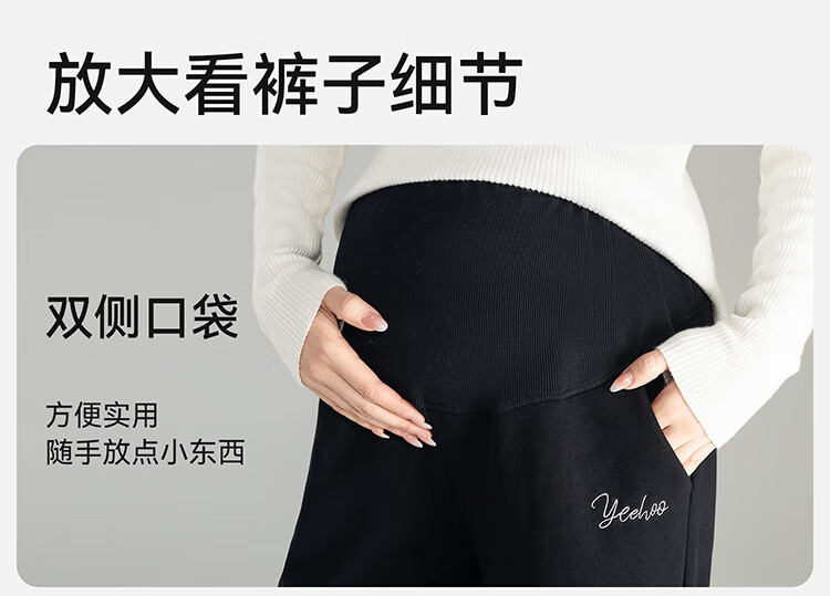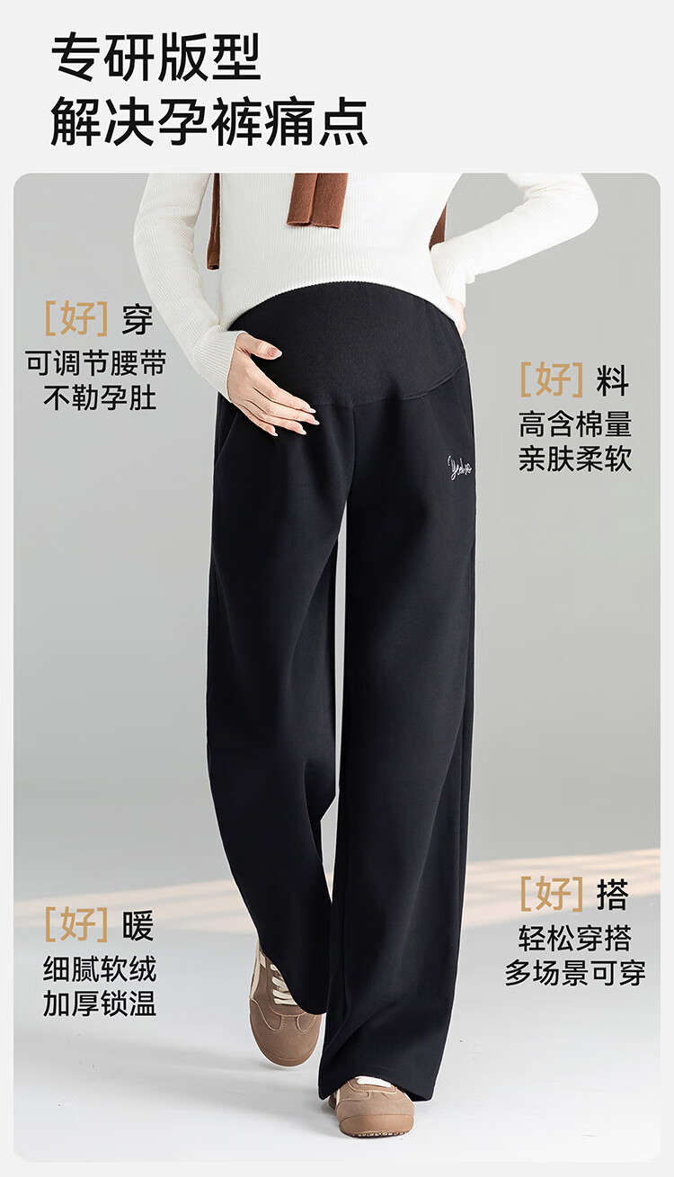 英氏(YEEHOO)秋冬加绒孕妇裤外穿托腹裤垂顺阔腿裤全孕期可穿时尚显瘦 黑色 XXL【建议体重145-160斤】