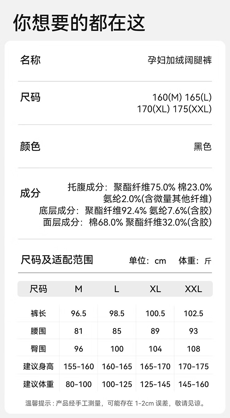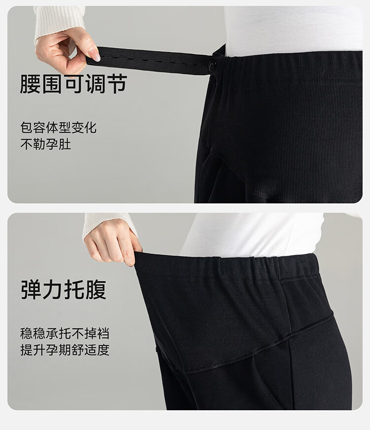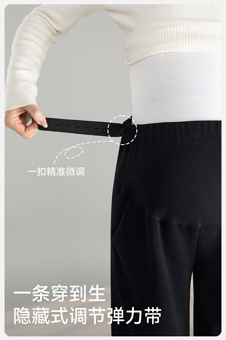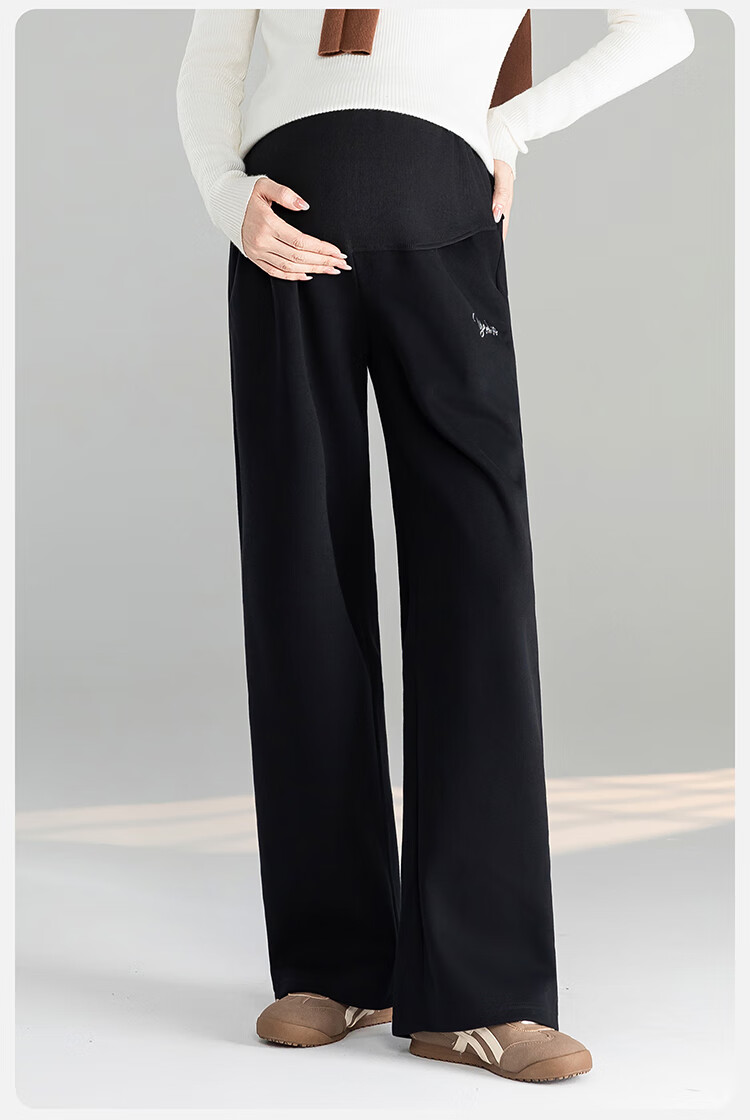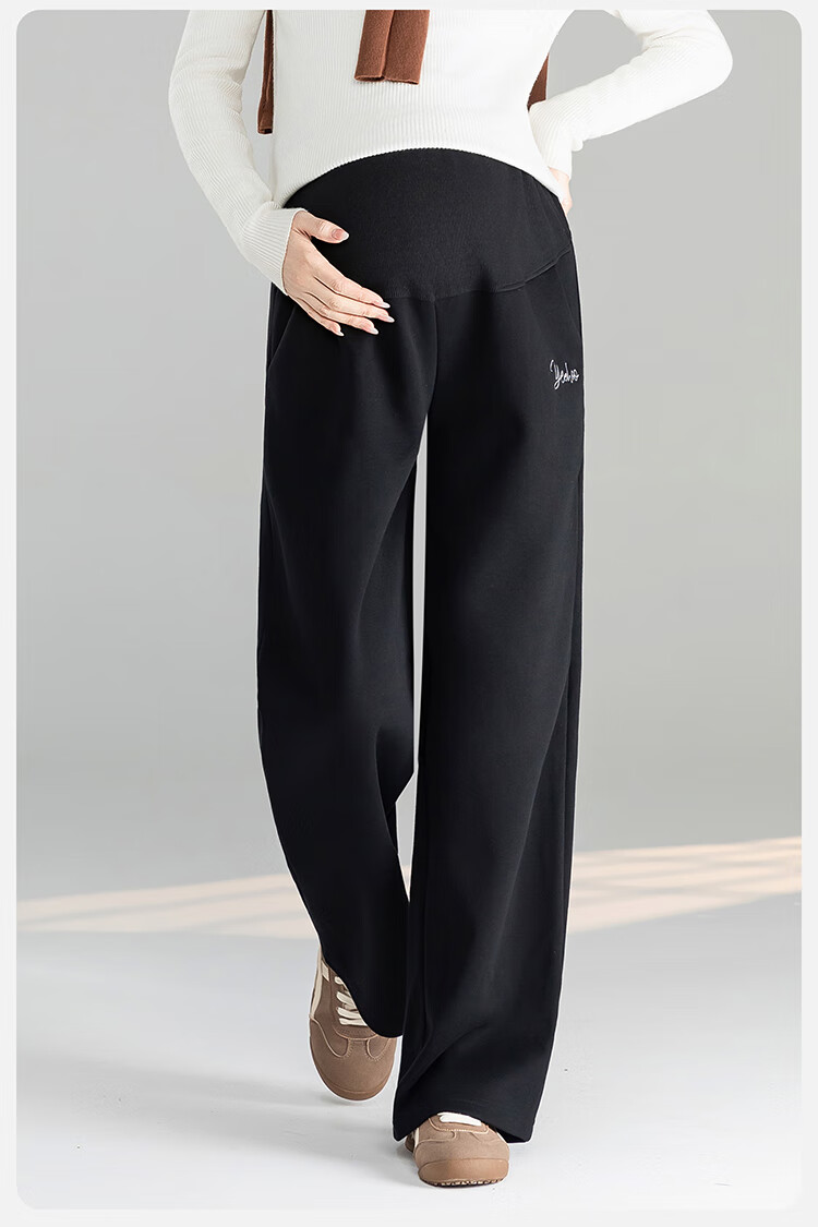 英氏(YEEHOO)秋冬加绒孕妇裤外穿托腹裤垂顺阔腿裤全孕期可穿时尚显瘦 黑色 XXL【建议体重145-160斤】