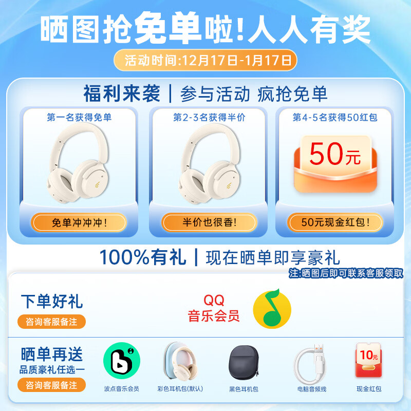 漫步者(EDIFIER)【重磅旗舰新品|蓝牙V6.0】Fit900NB小金标真无线主动降噪头戴式蓝牙耳机长续航游戏音乐耳麦礼物 雅典灰+QQ音乐