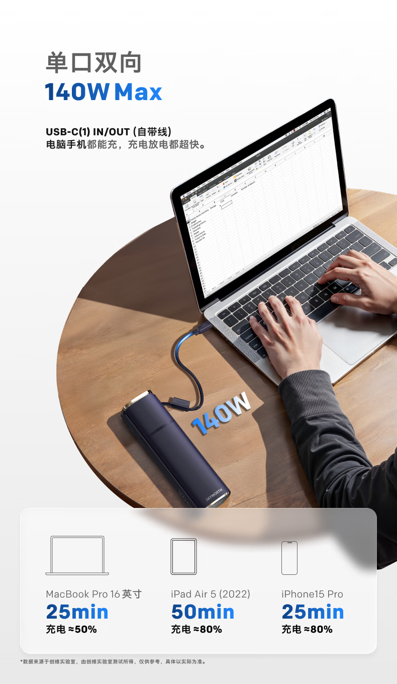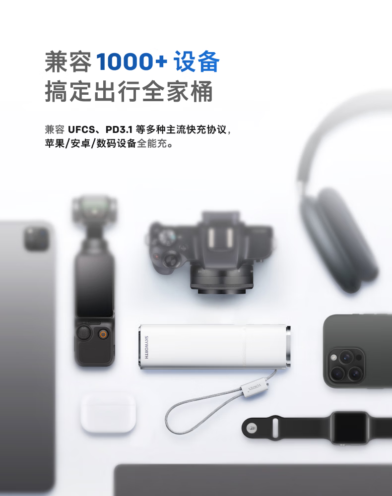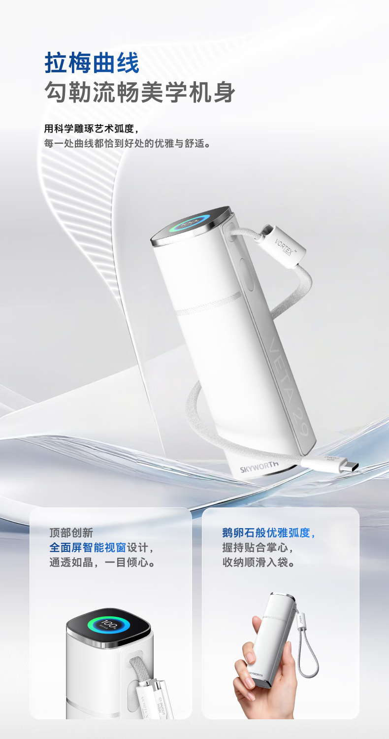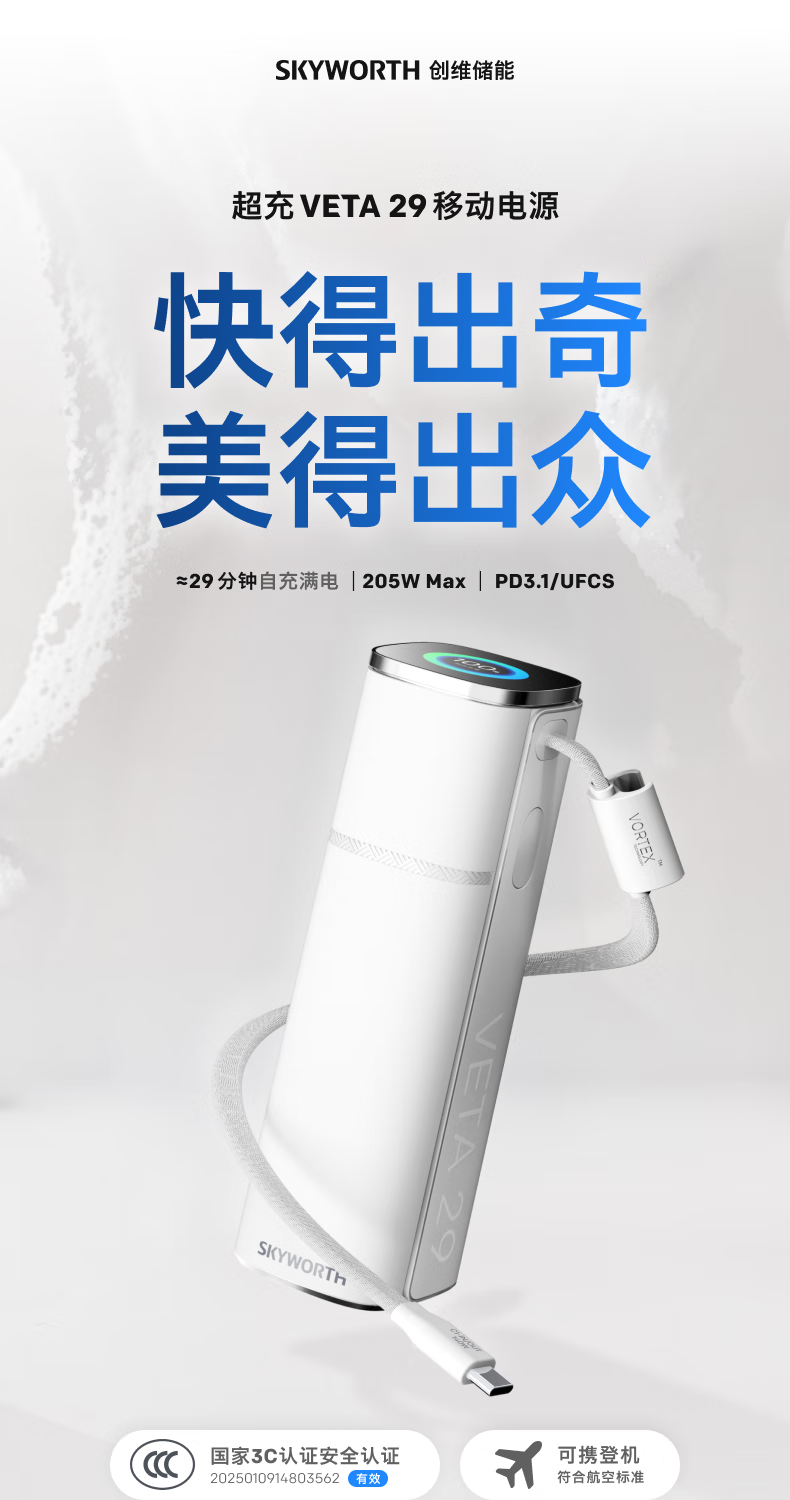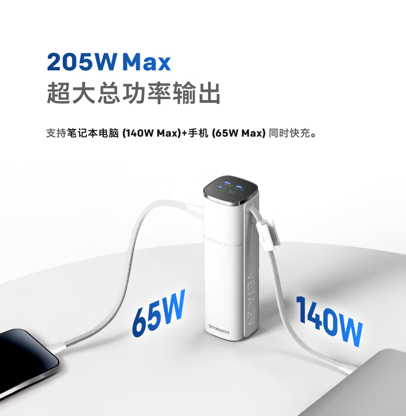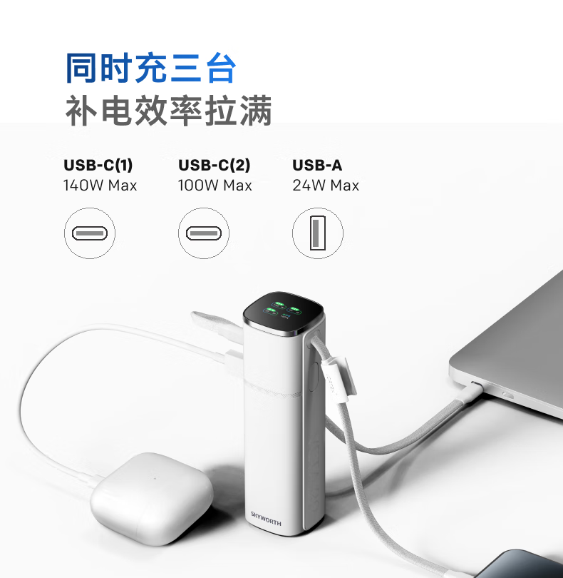 创维140W双向快充自带线15000毫安充电宝3c认证可上飞机京东自营移动电源适用苹果17华为小米 笔记本