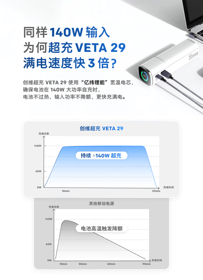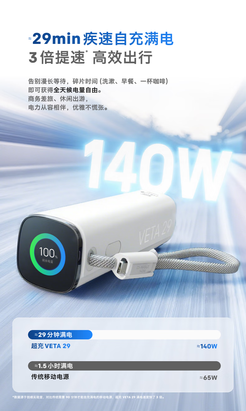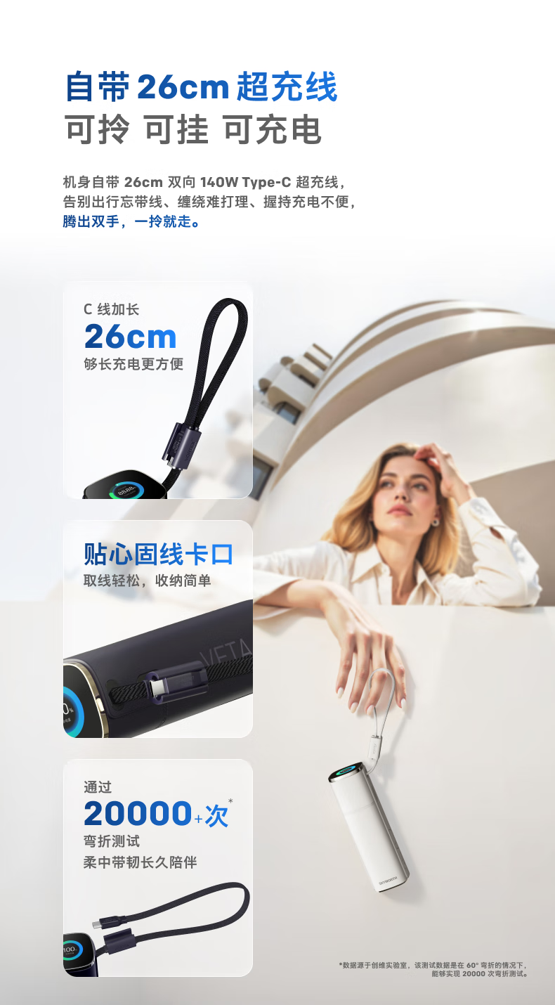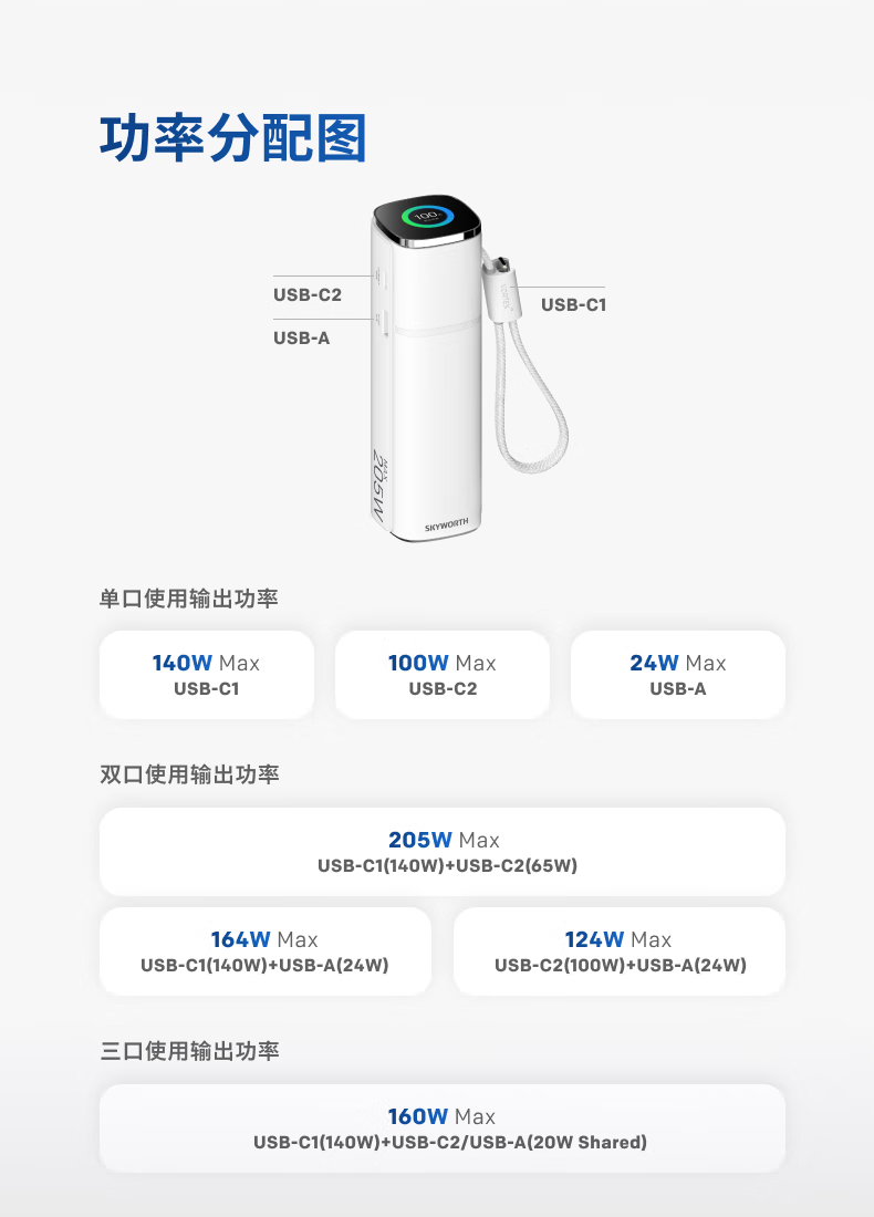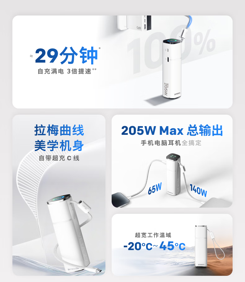 创维140W双向快充自带线15000毫安充电宝3c认证可上飞机京东自营移动电源适用苹果17华为小米 笔记本