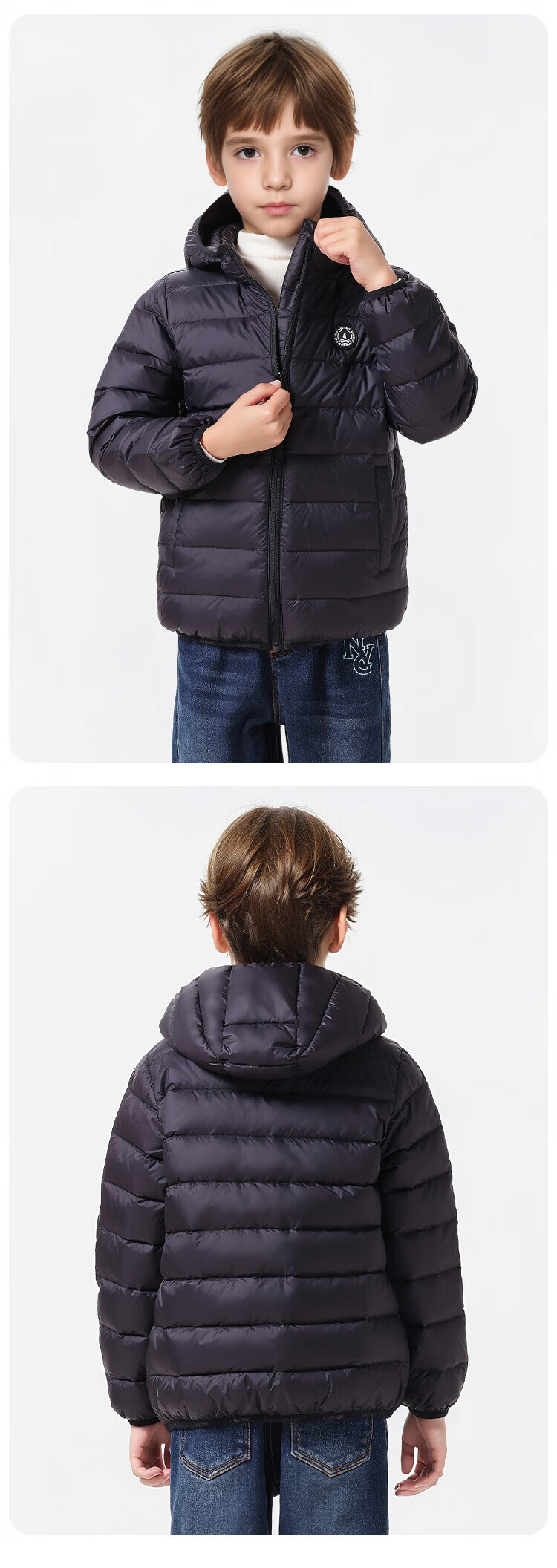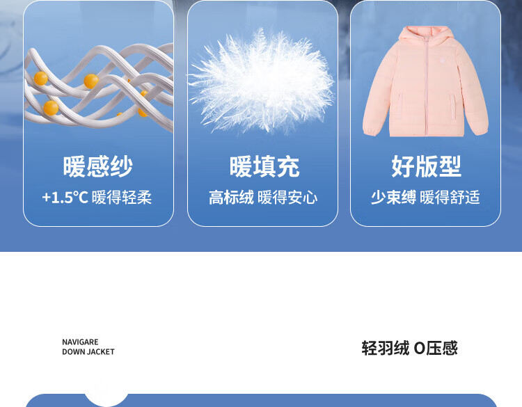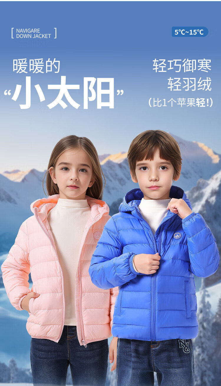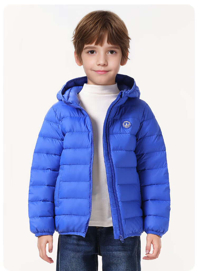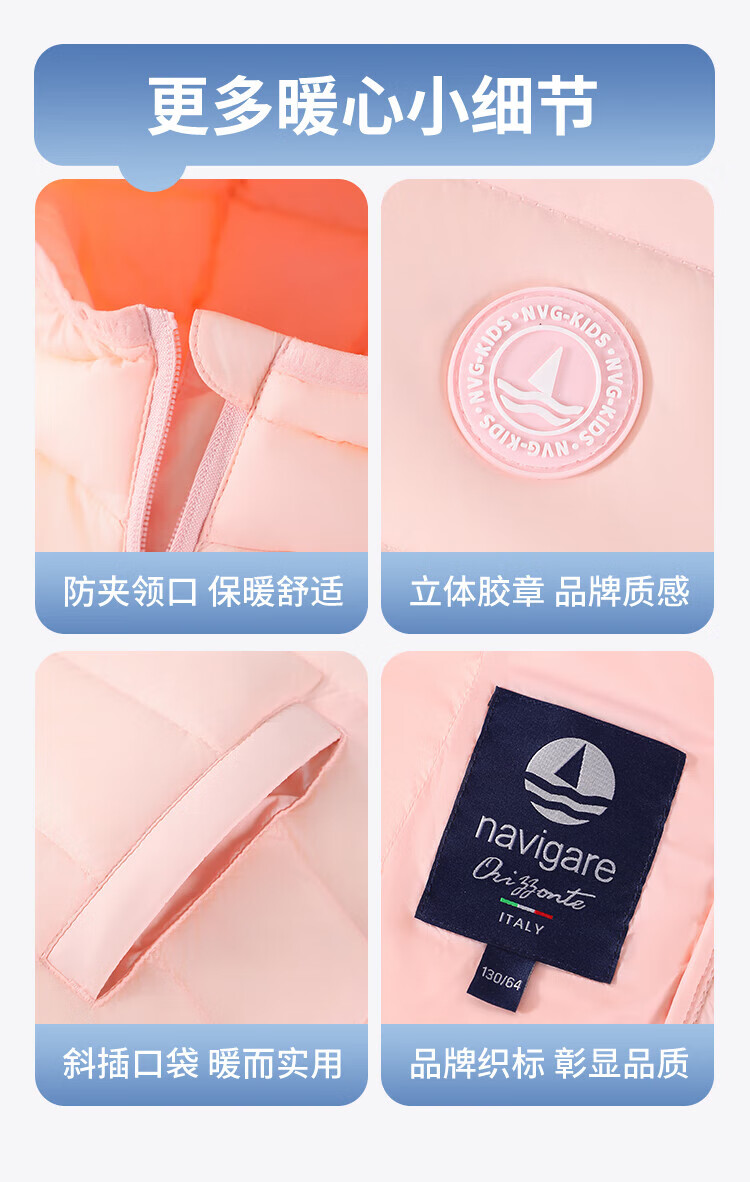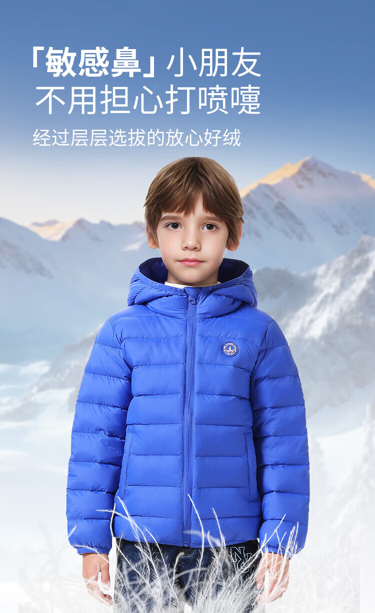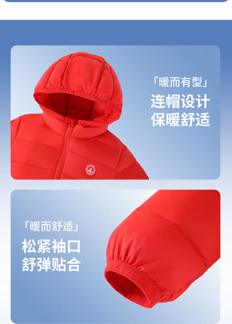 纳维凯尔意大利小帆船童装儿童羽绒服男童保暖外套女童舒适连帽冬装2 带帽胶章红色 140