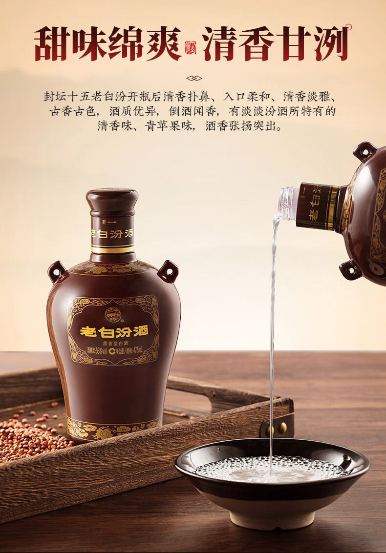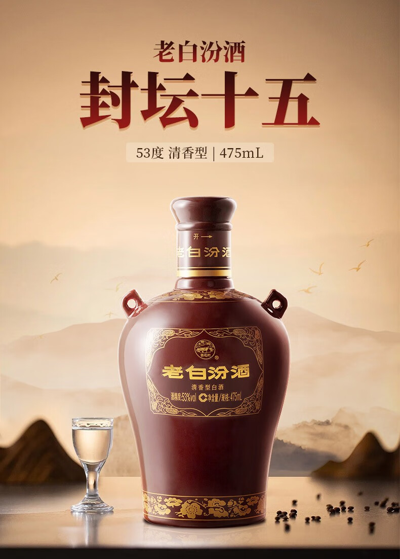 汾酒 老白汾酒 封坛15 清香型白酒 【婚事宴请】 53度 475mL 6瓶 整箱装
