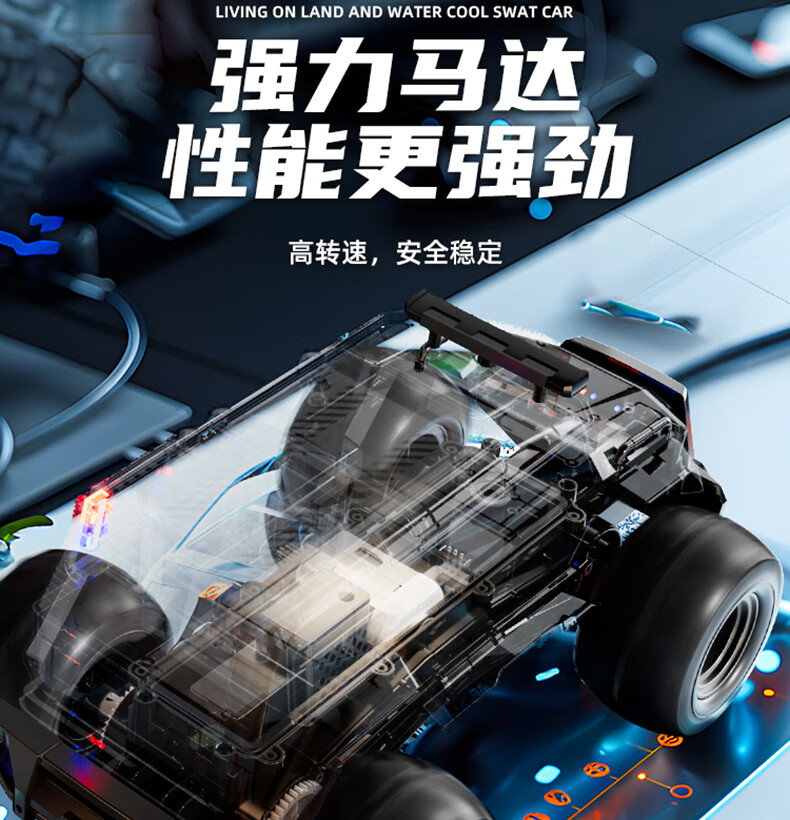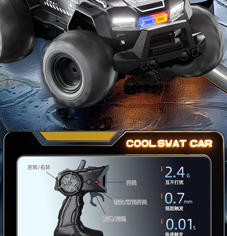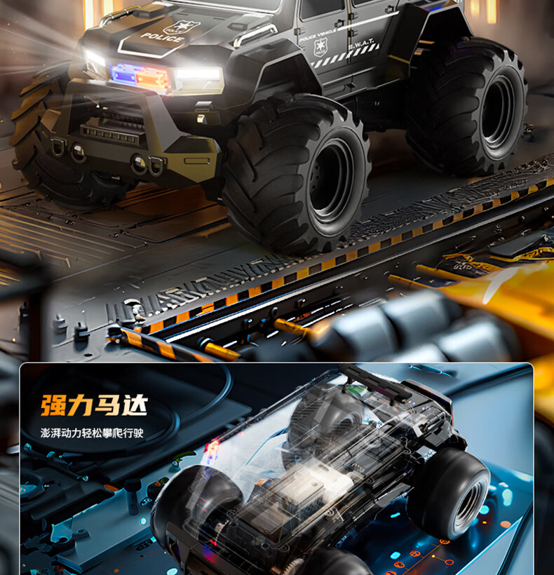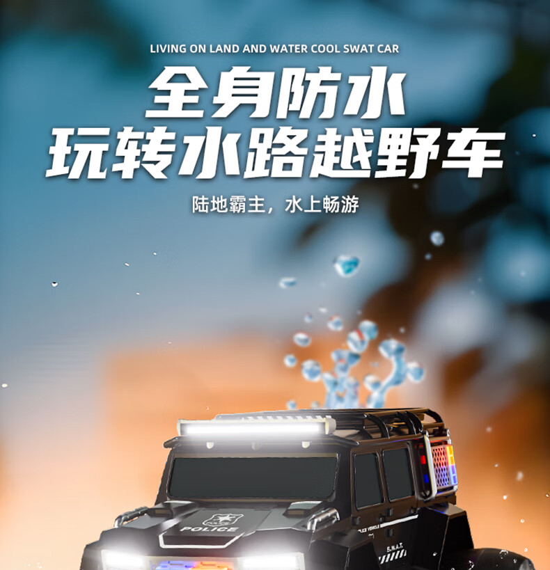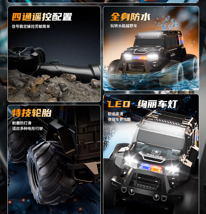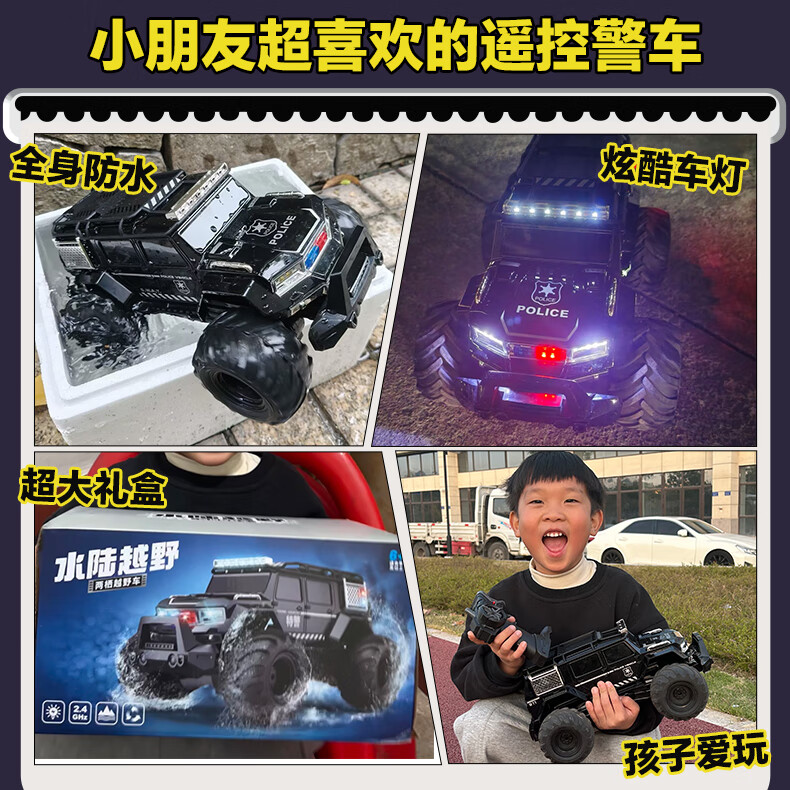 Holy STONE遥控汽车3-6岁玩具越野车水陆两栖超大号特警车玩具男孩生日礼物 特大号32cm【全身防水+四驱】遥控特警车 三五3-6-10-8-12岁7岁男孩圣诞礼物儿童节