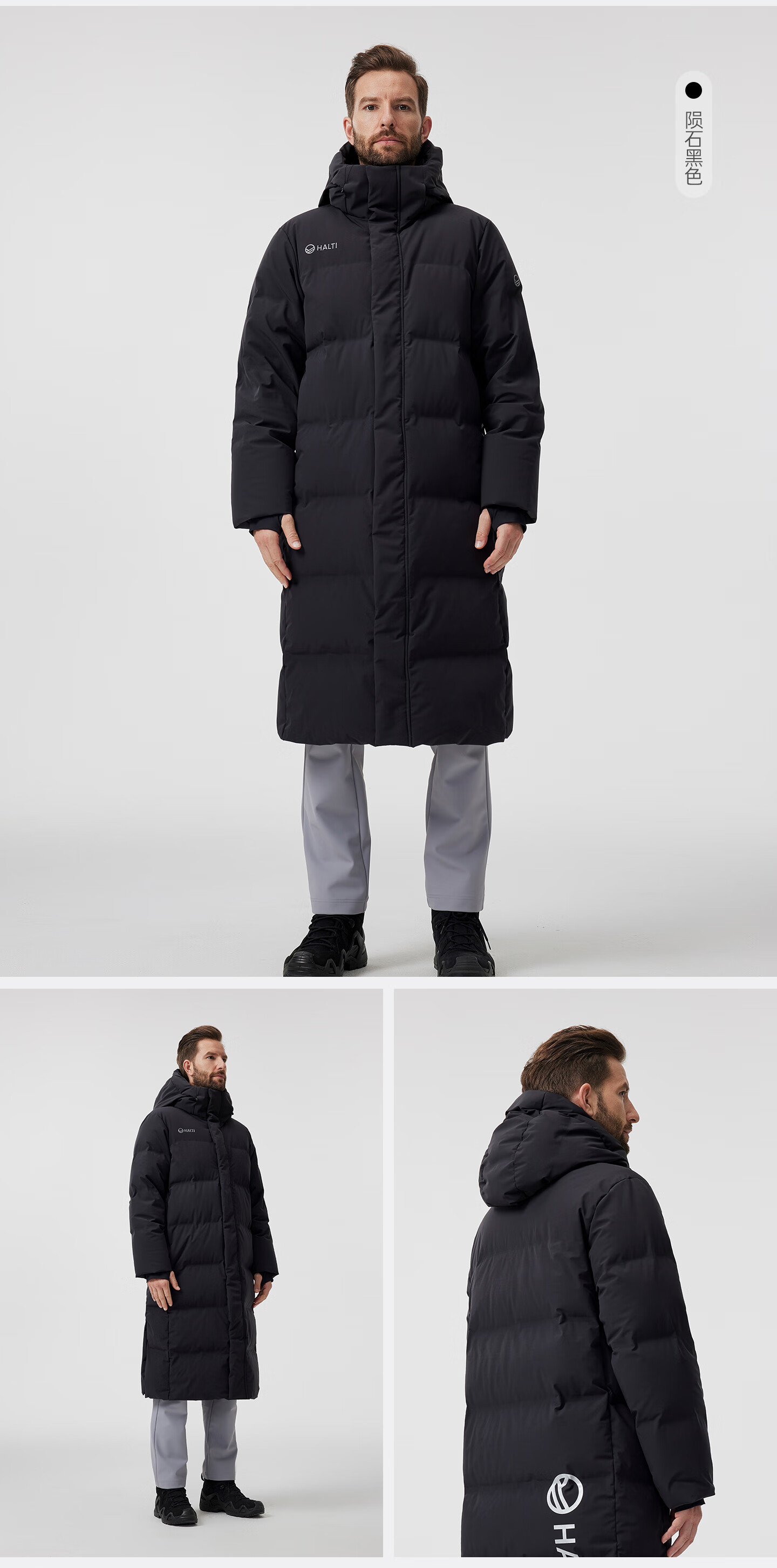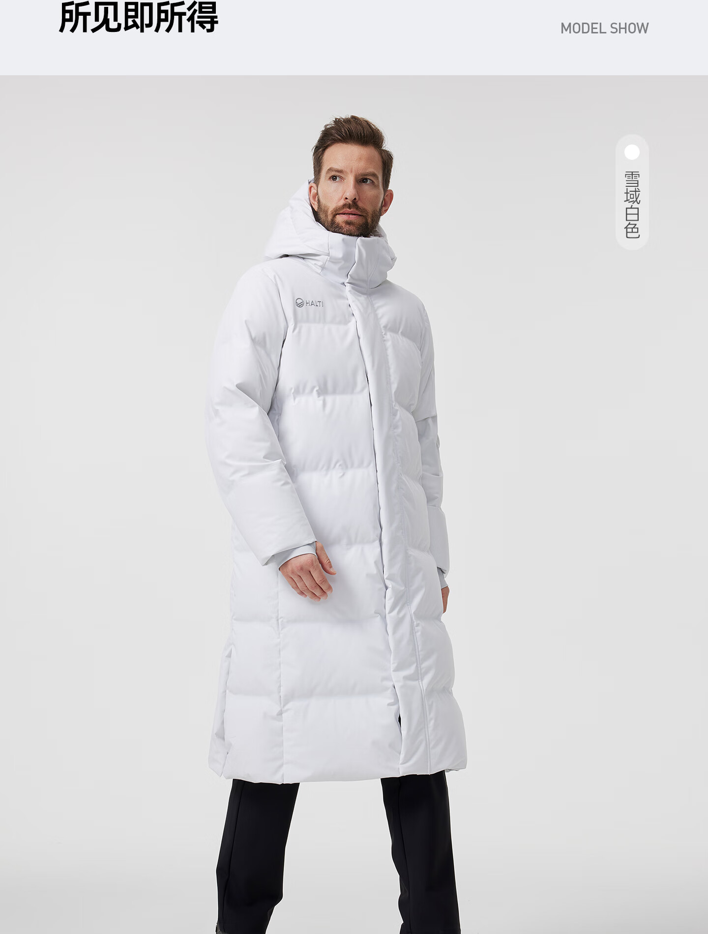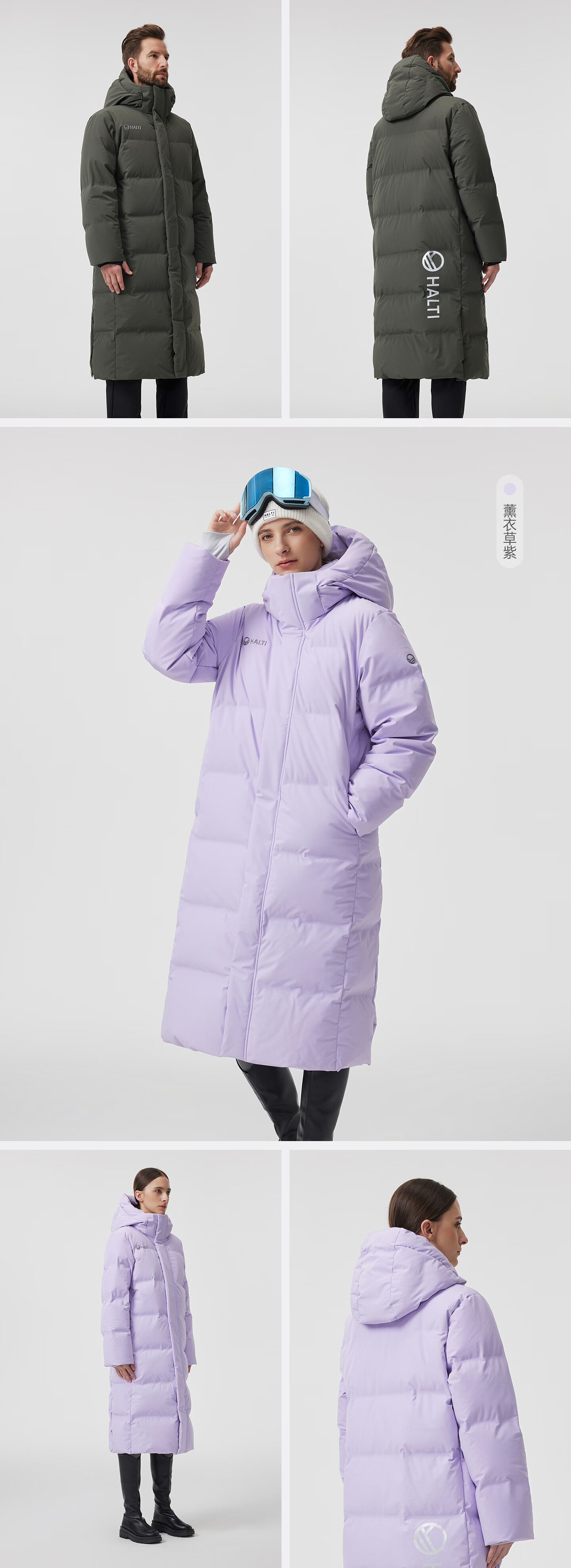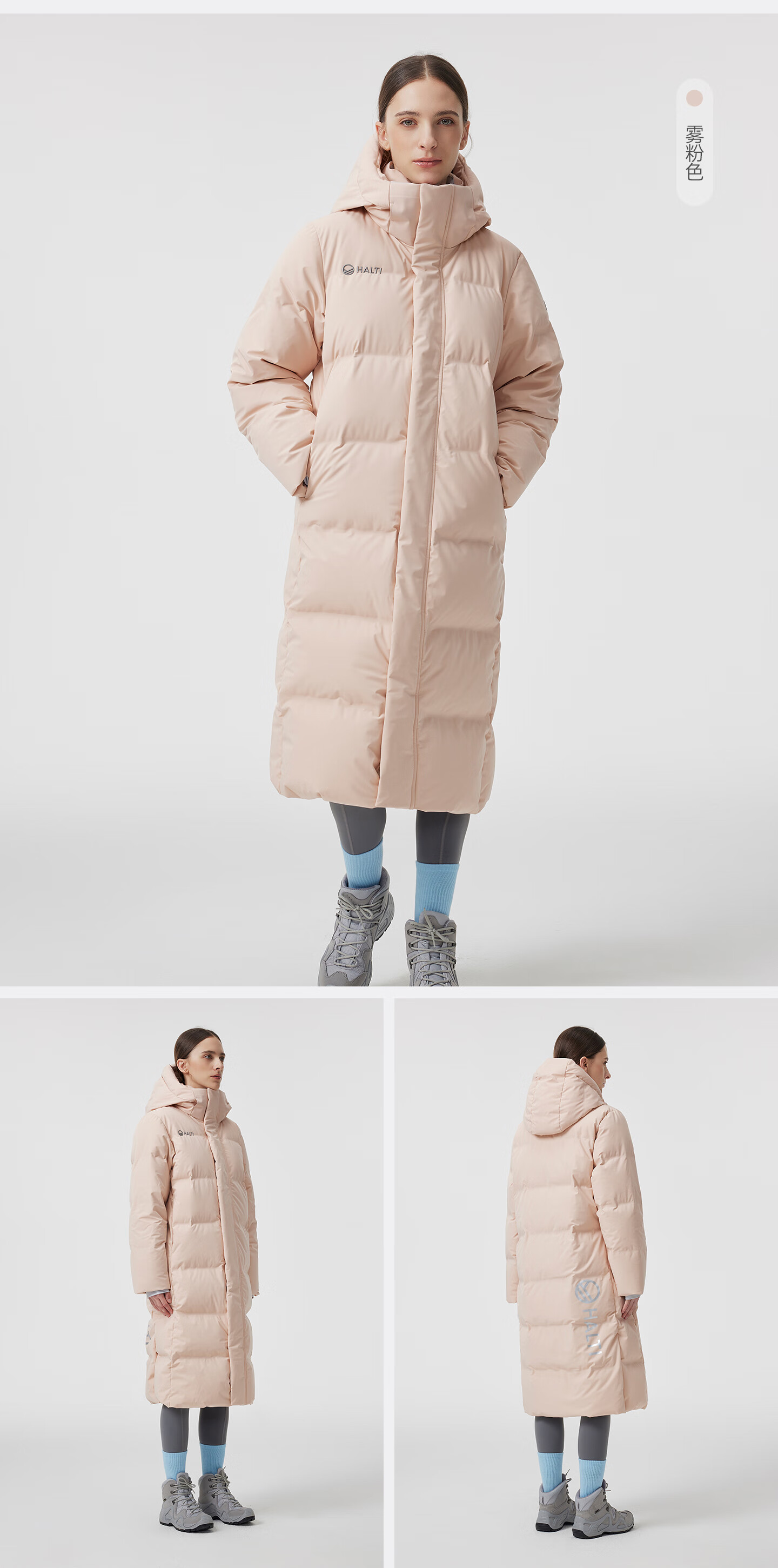 HALTI哈尔迪【明星同款】羽绒服男女中长款鹅绒冬季户外运动连帽 雾粉色-708S XL 180/96A