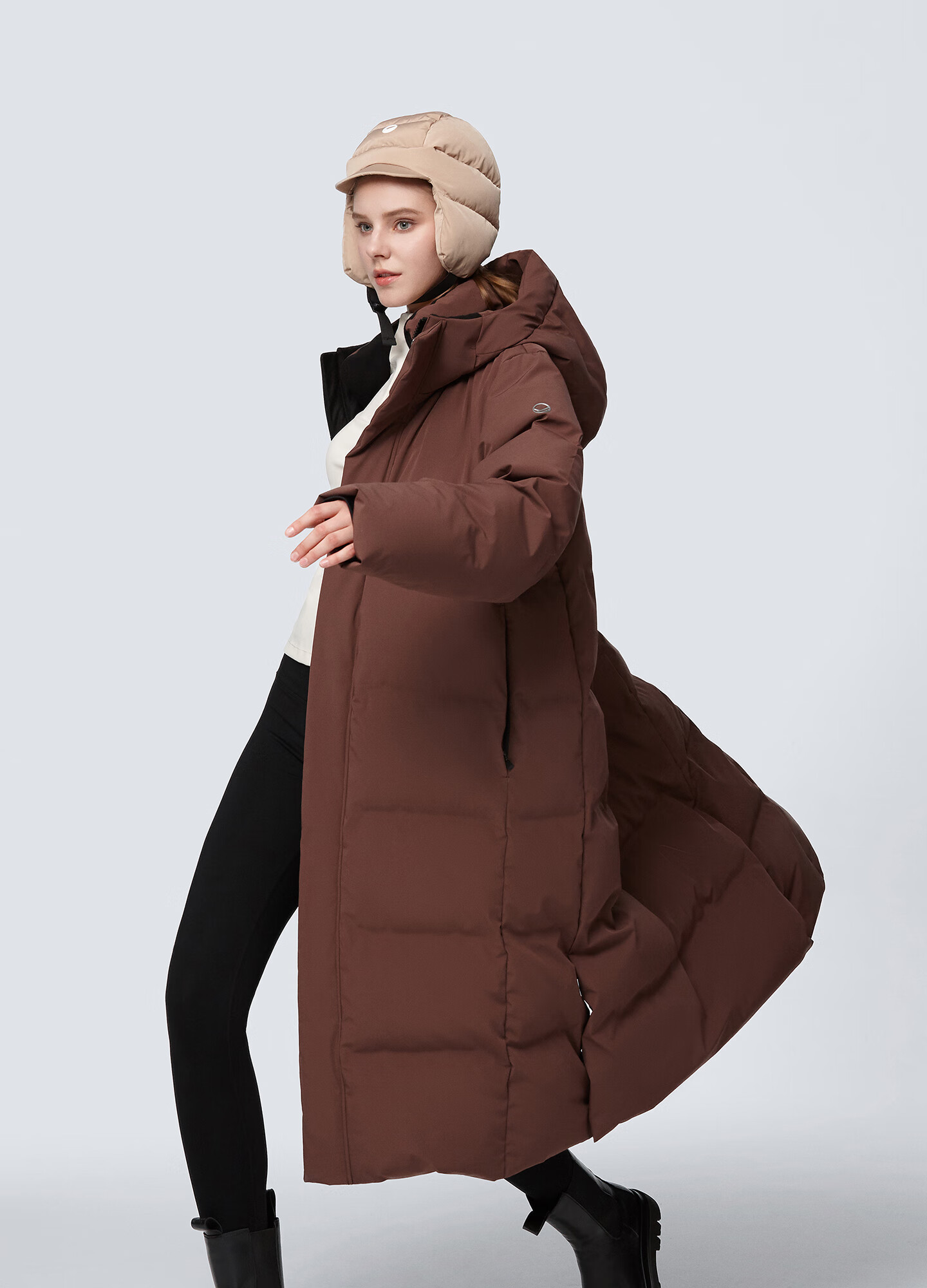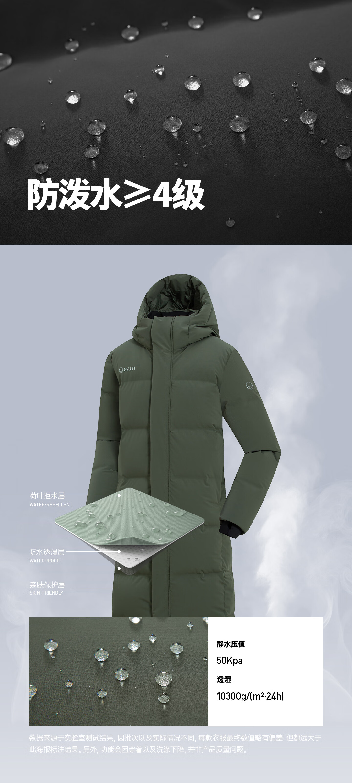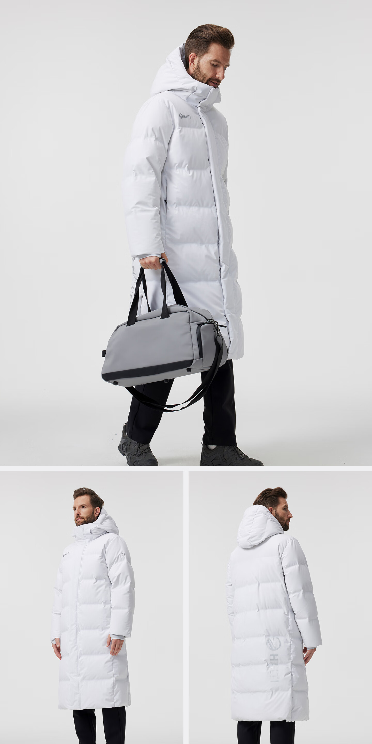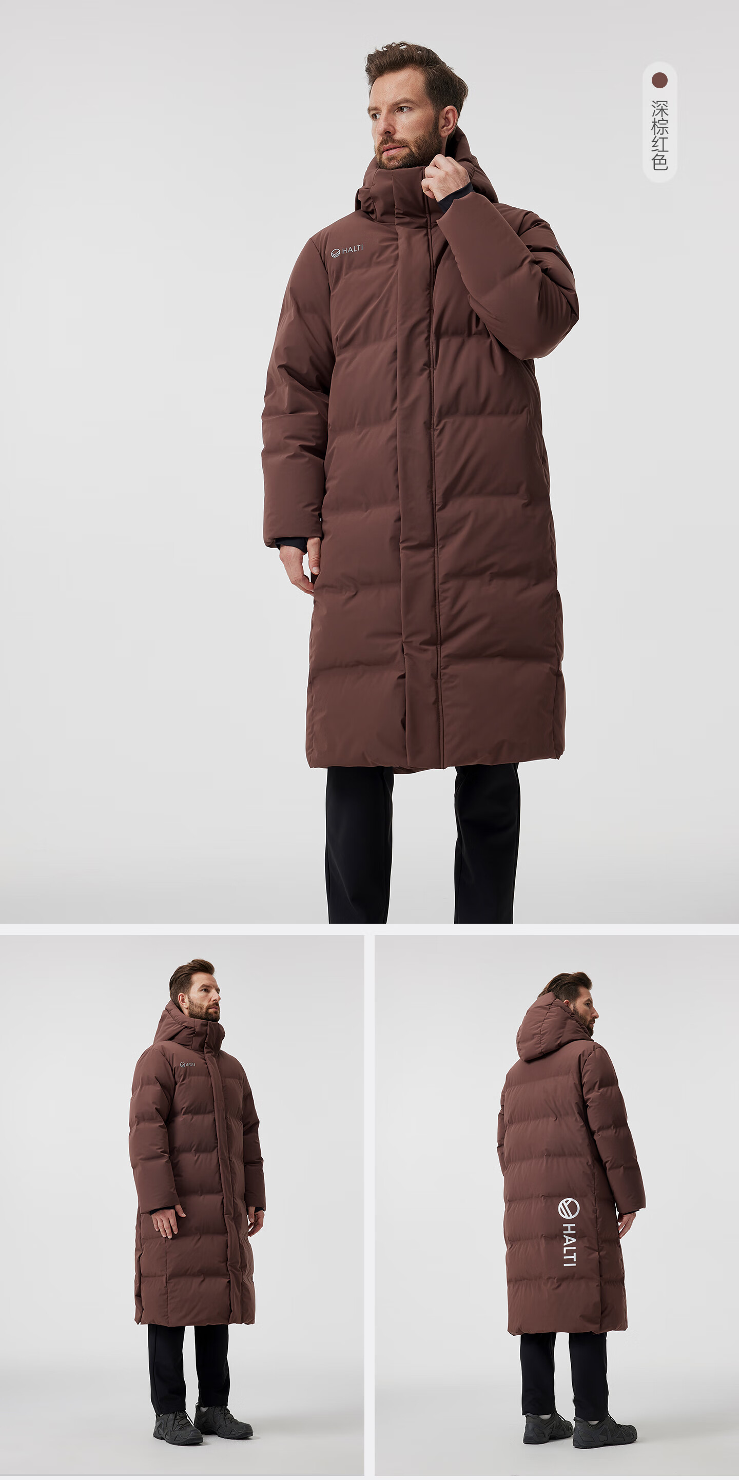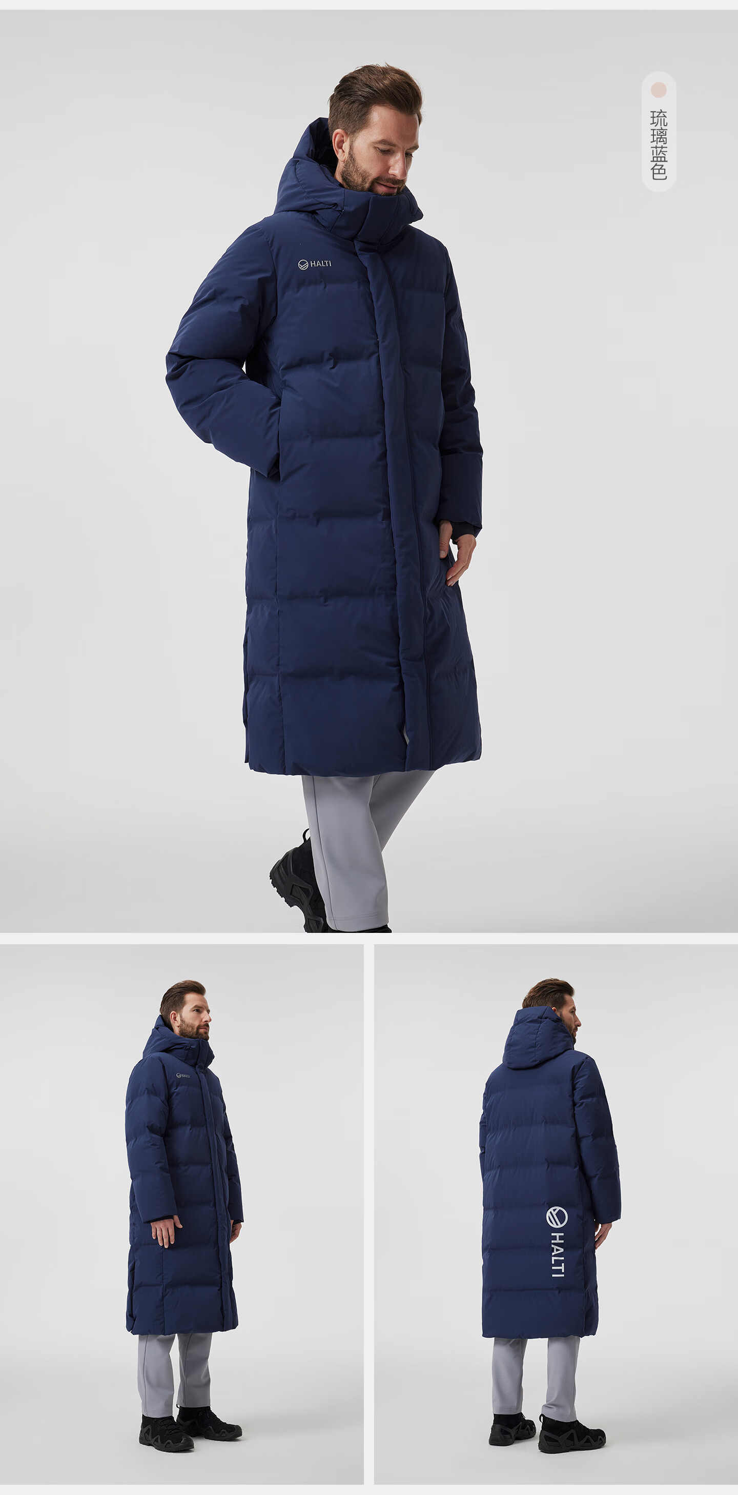 HALTI哈尔迪【明星同款】羽绒服男女中长款鹅绒冬季户外运动连帽 雾粉色-708S XL 180/96A