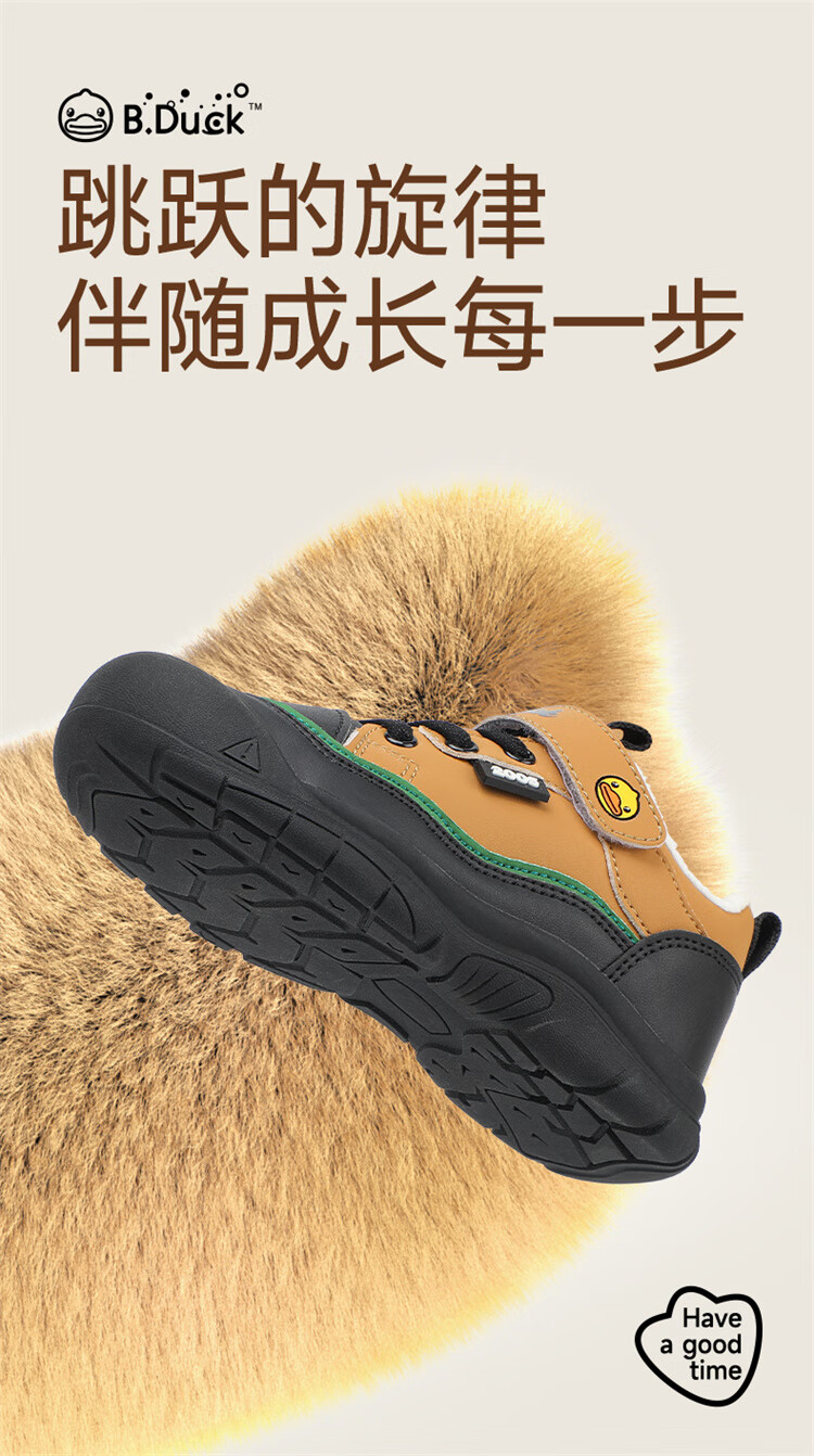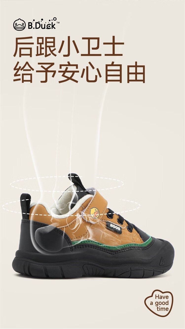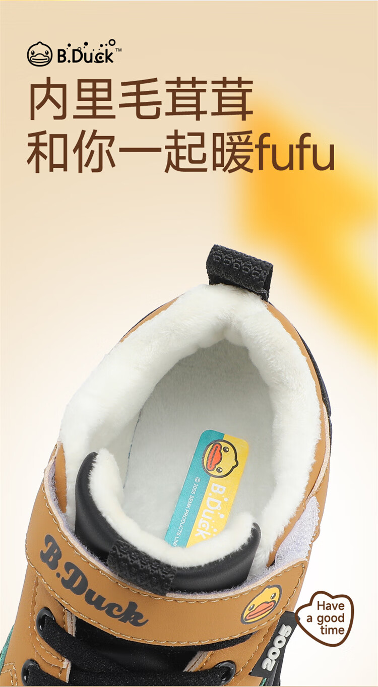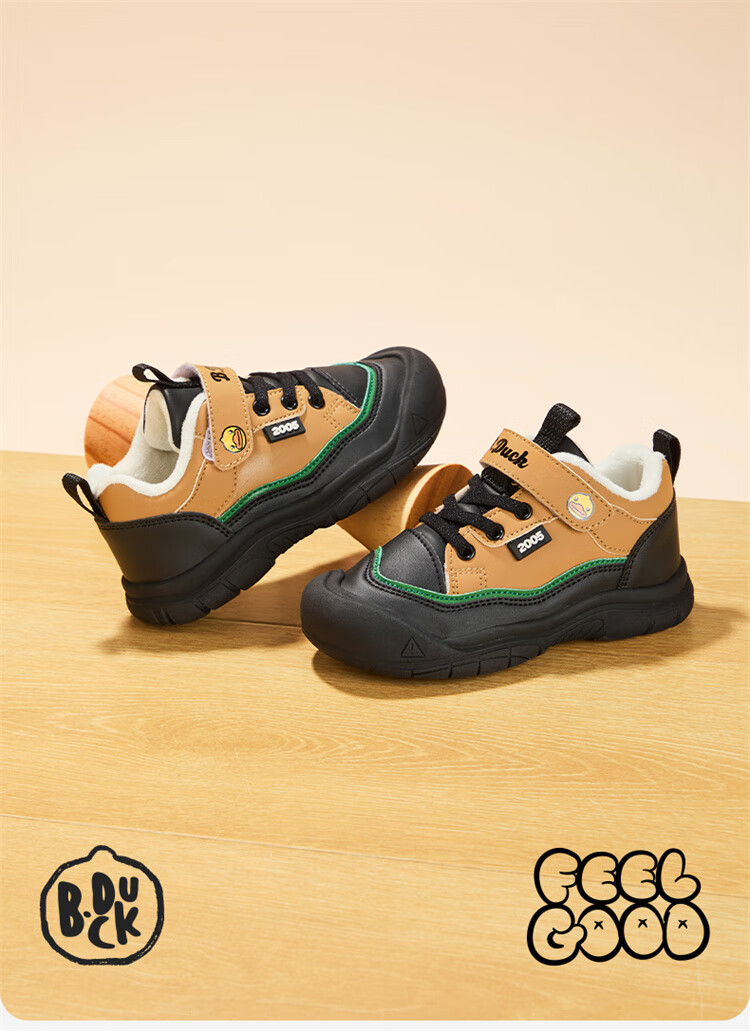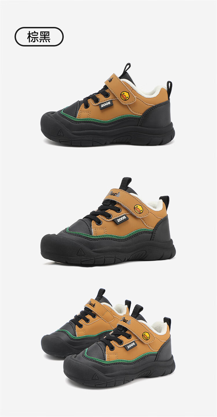 B.Duck小黄鸭童鞋男童棉鞋冬季新款儿童鞋子二棉运动鞋加绒户外休闲鞋 棕黑 26 码 适合脚长15.5-16.0cm