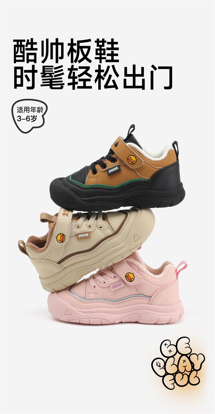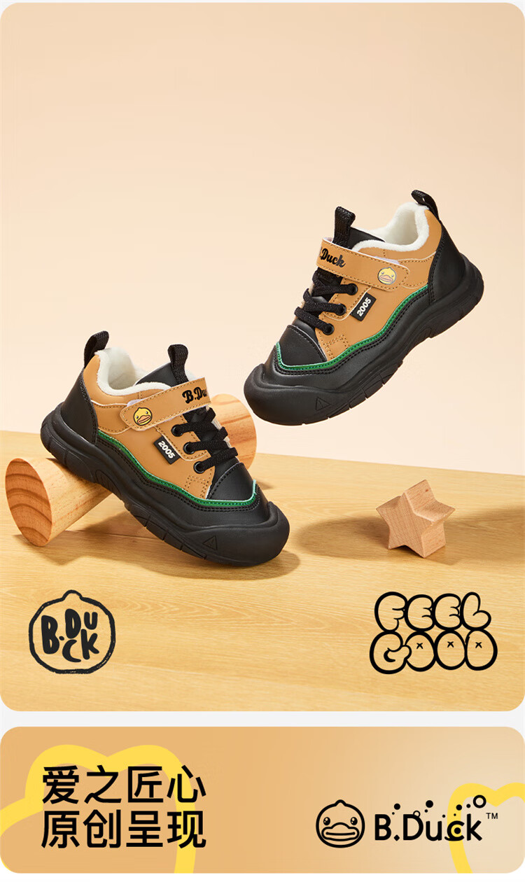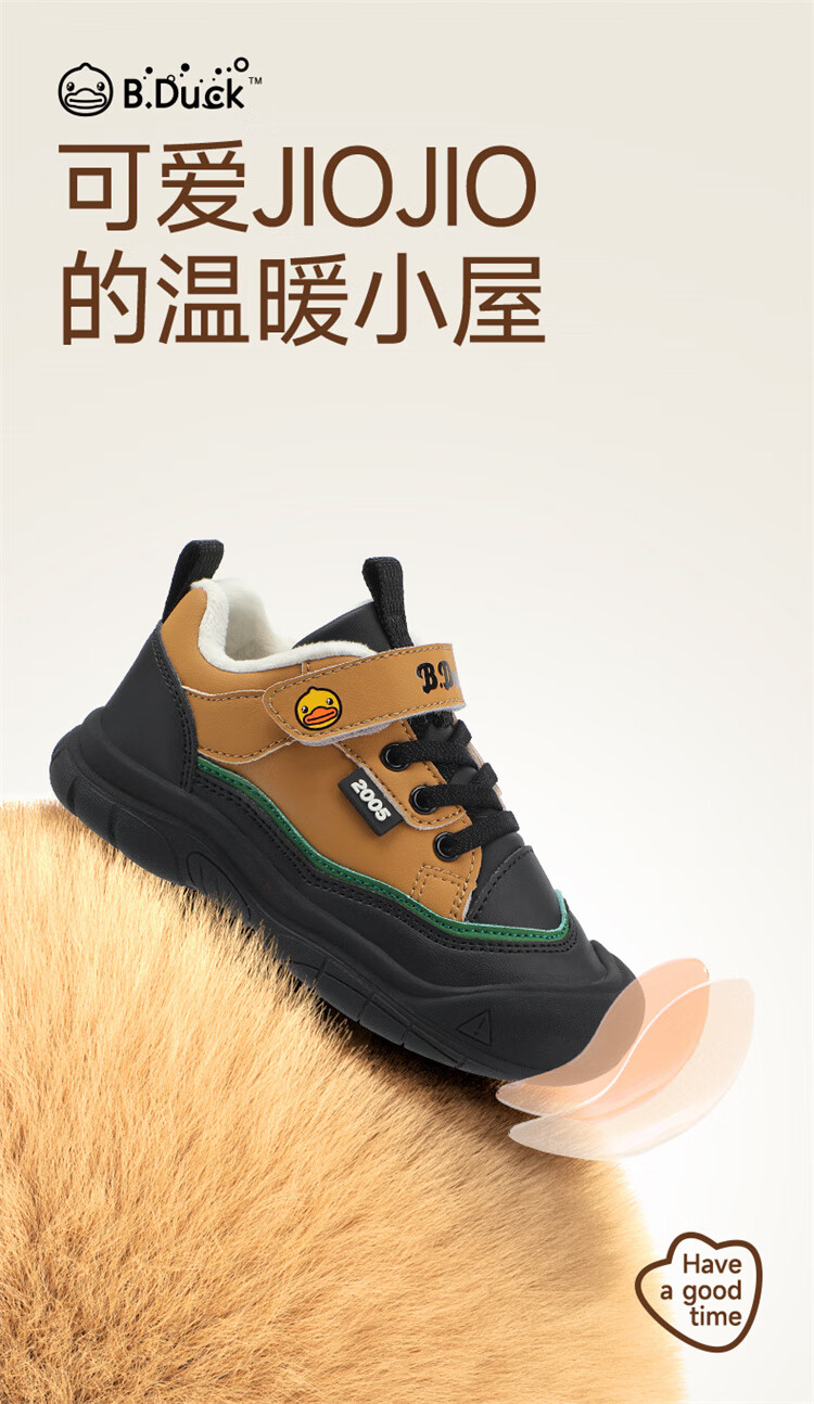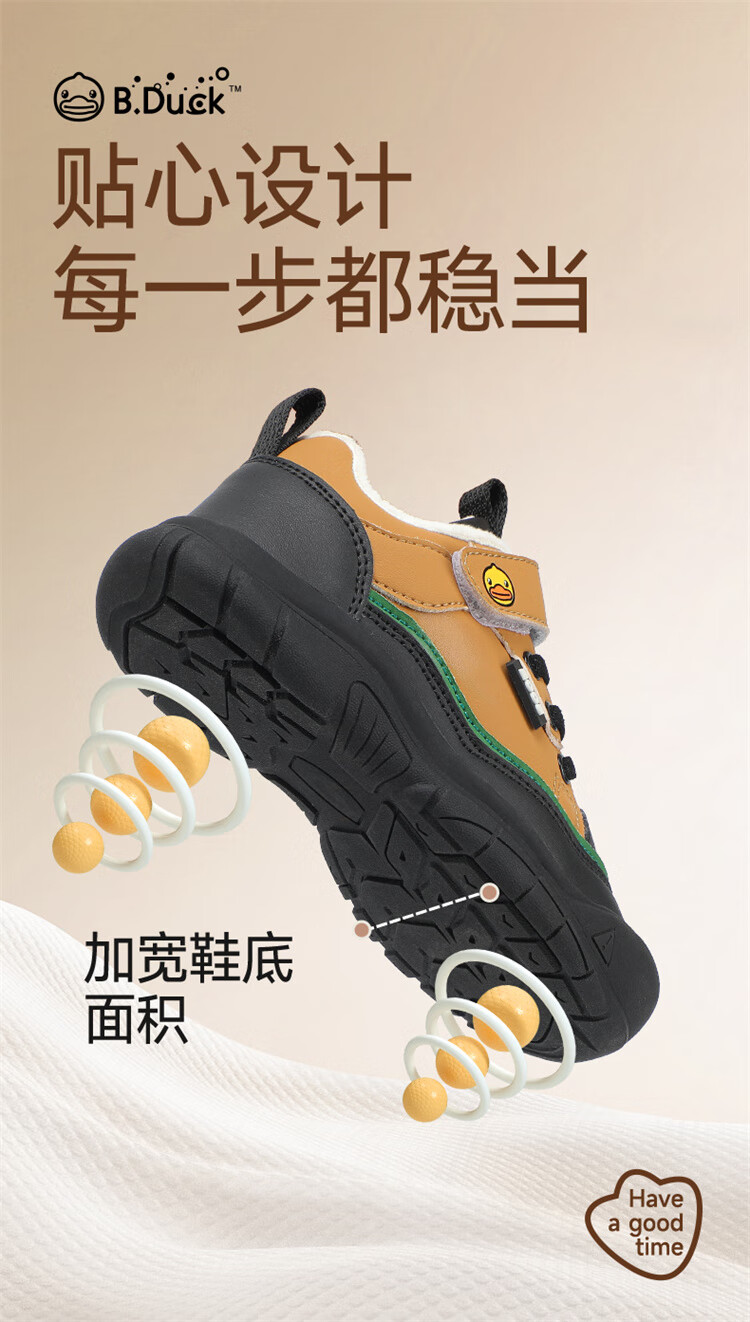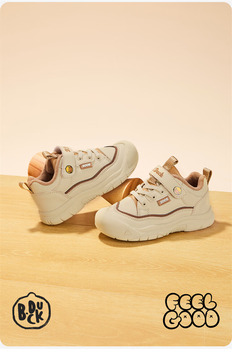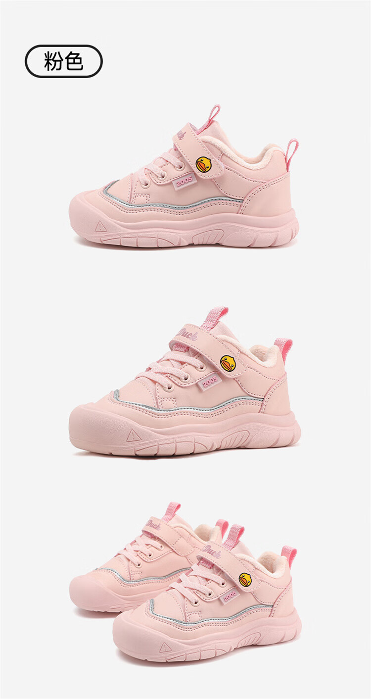 B.Duck小黄鸭童鞋男童棉鞋冬季新款儿童鞋子二棉运动鞋加绒户外休闲鞋 棕黑 26 码 适合脚长15.5-16.0cm