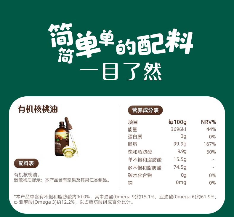 英氏(Engnice)英氏【活动促销中】核桃油宝宝辅食添加油儿童食用油 核桃油110ml 1瓶