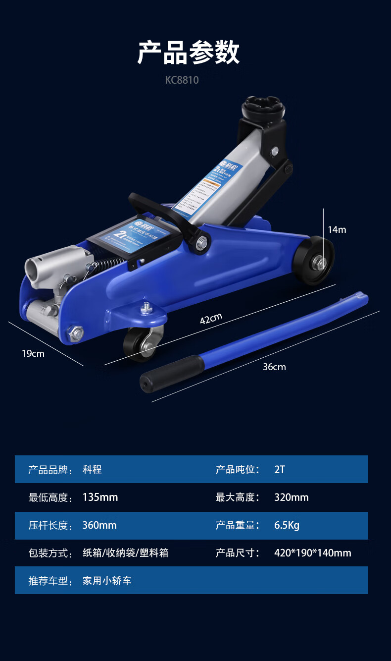 科程2吨卧式液压千斤顶小汽车用千斤顶轿车车载油压手摇面包车千金顶 卧式 2吨 KC8810纸箱装
