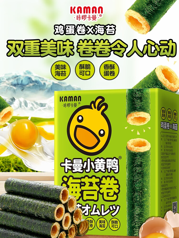 咔啰卡曼海苔蛋卷酥脆品牌儿童休闲零食饼干小黄鸭原味鸡蛋卷办公室茶点 【超值装】72g原味5盒