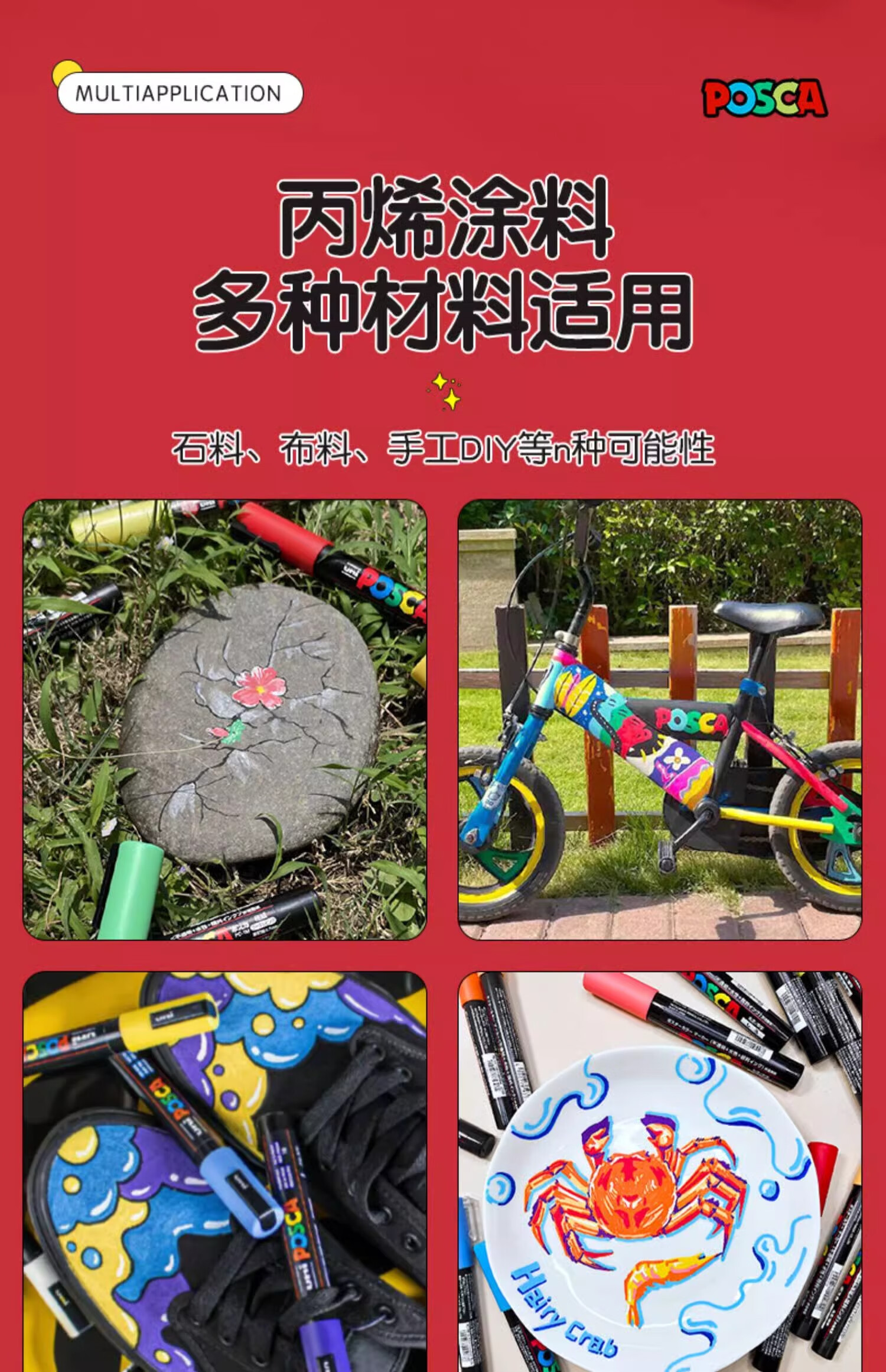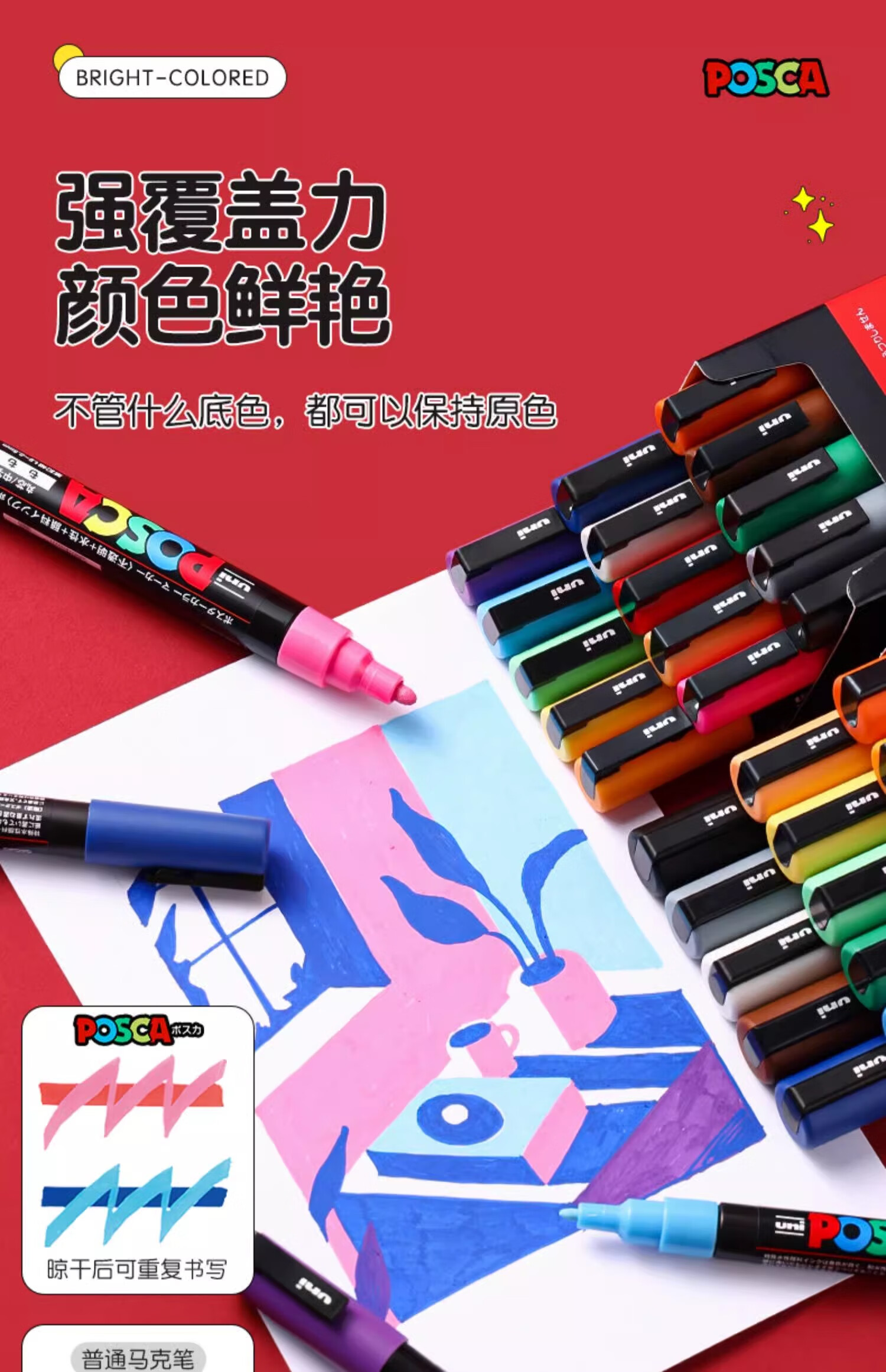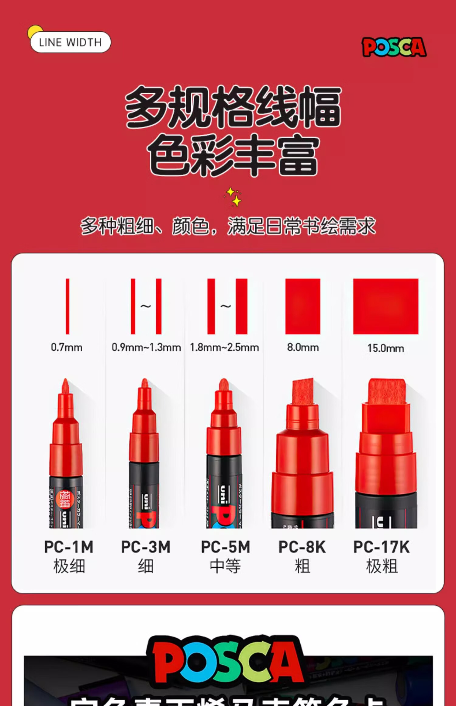 uni日本UNI三菱POSCA丙烯马克笔可叠色涂鸦广告笔白色高光PC-1M/3M/5M/8K海报宝色嘉套装 【PC-8K】青铜色/42