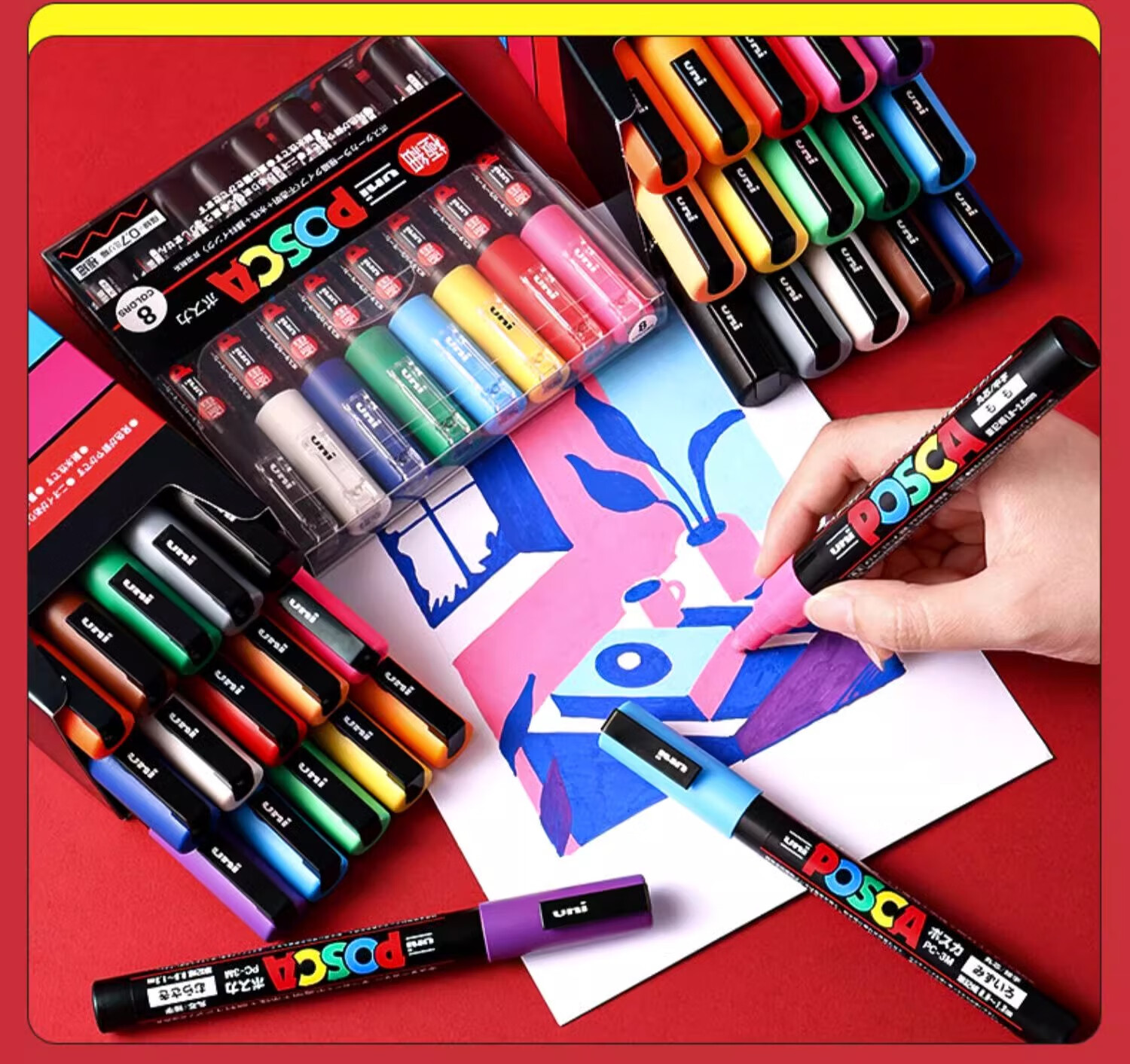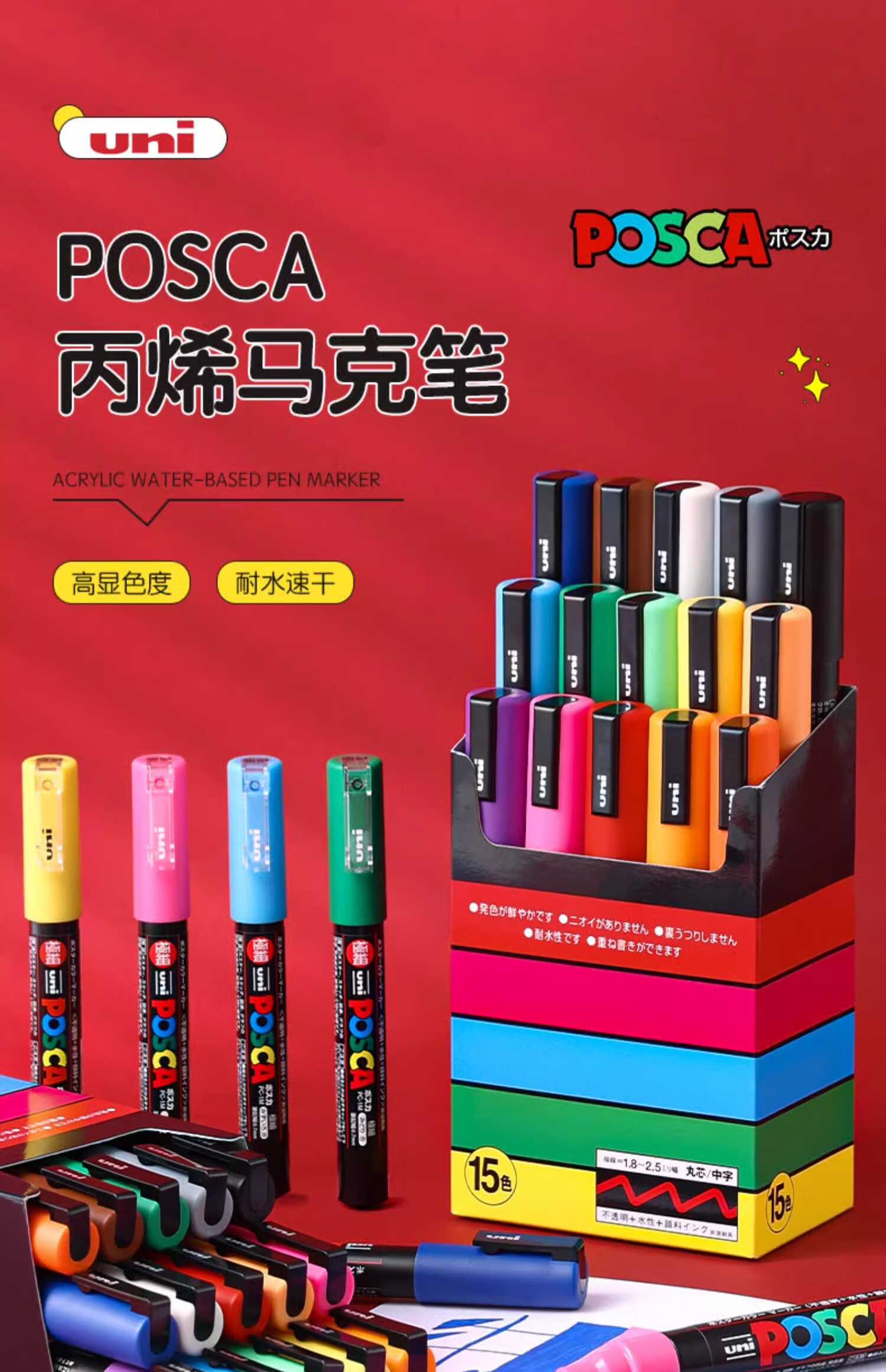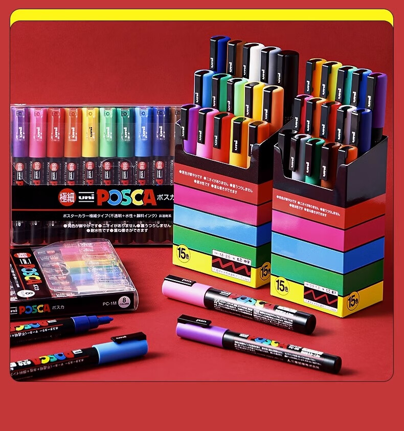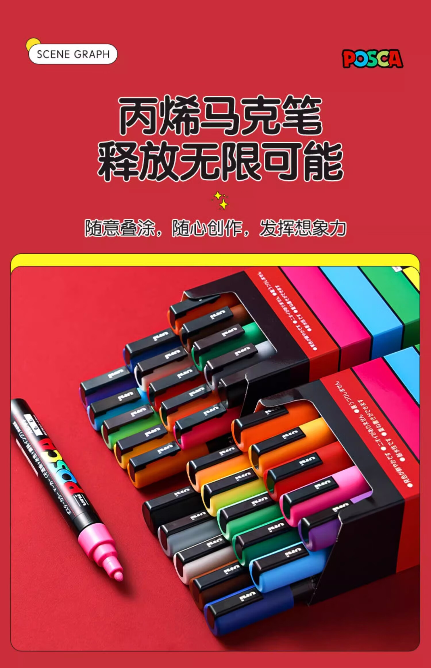 uni日本UNI三菱POSCA丙烯马克笔可叠色涂鸦广告笔白色高光PC-1M/3M/5M/8K海报宝色嘉套装 【PC-8K】青铜色/42