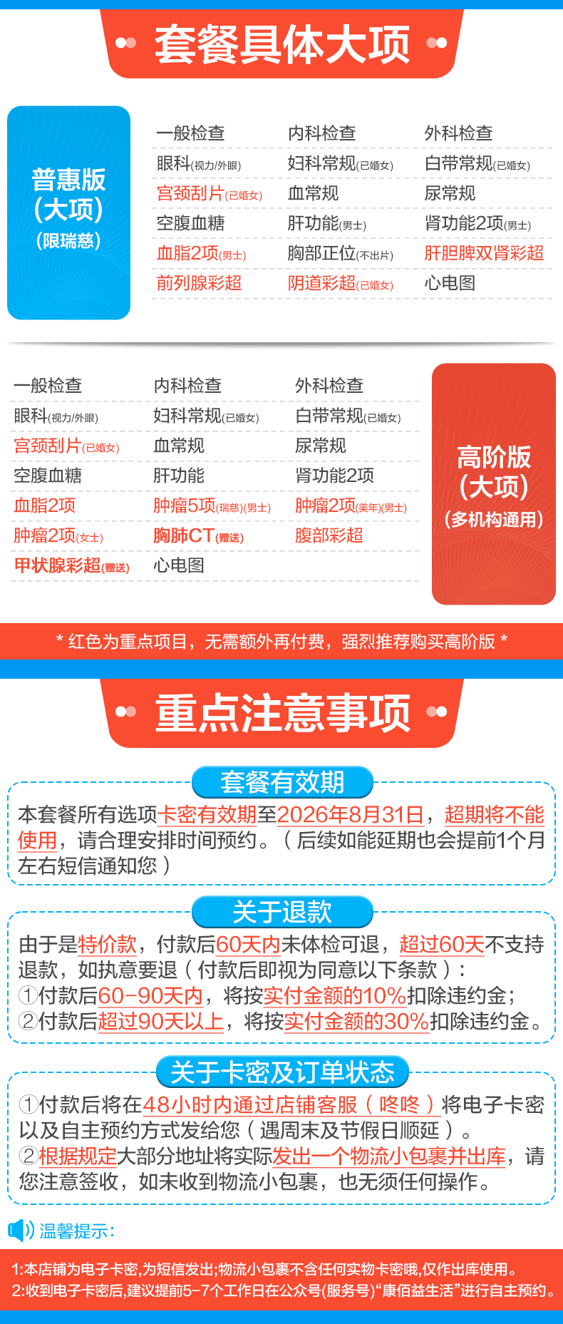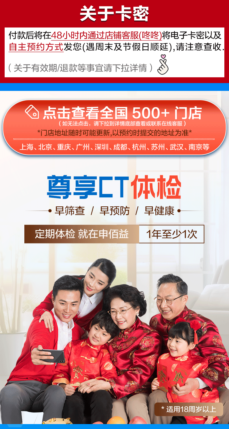 美年大健康瑞慈体检套餐中青老年父母全家通用体检套餐男女士体检卡全国体检中心上海北京成都 CT版体检套餐RY138-【美年/瑞慈】