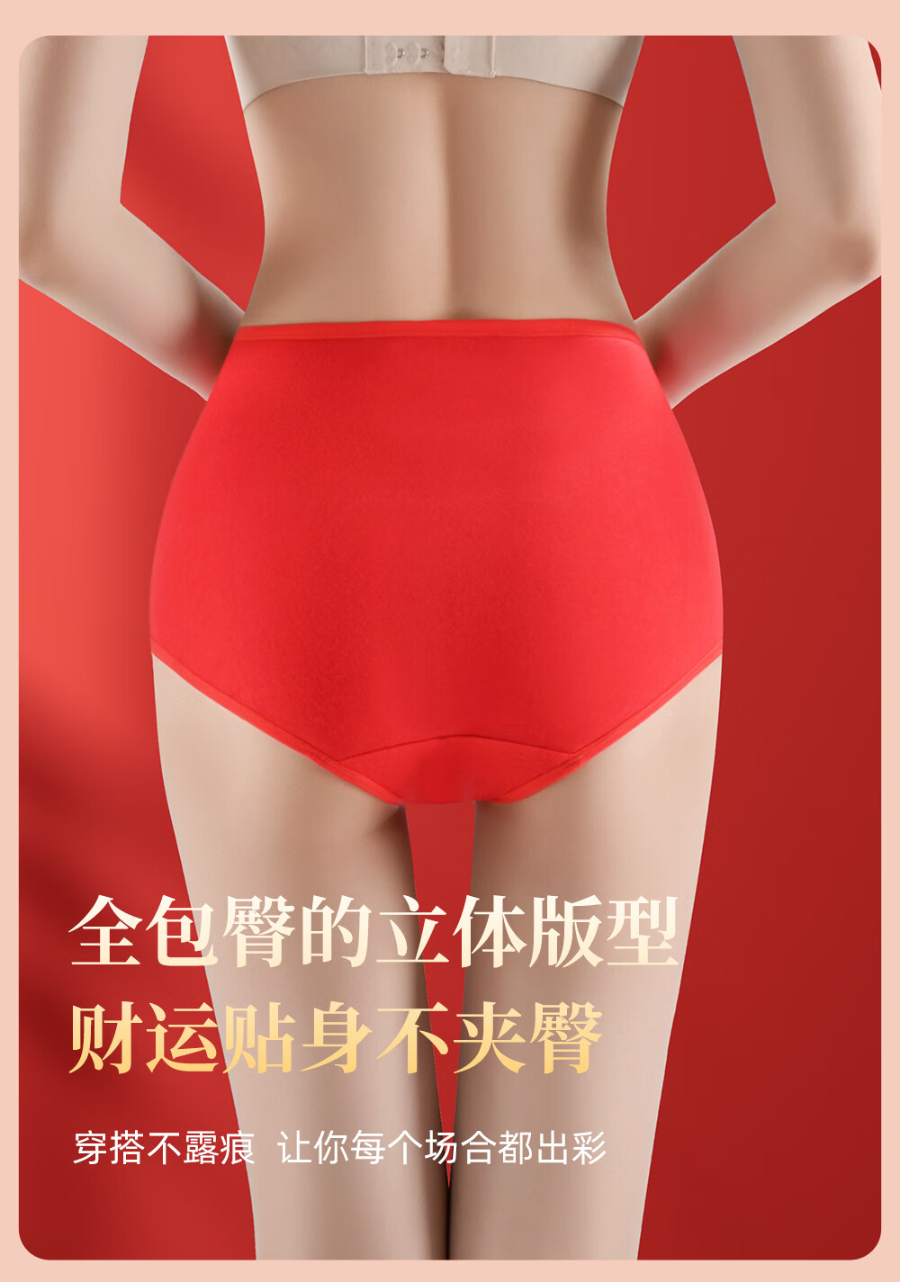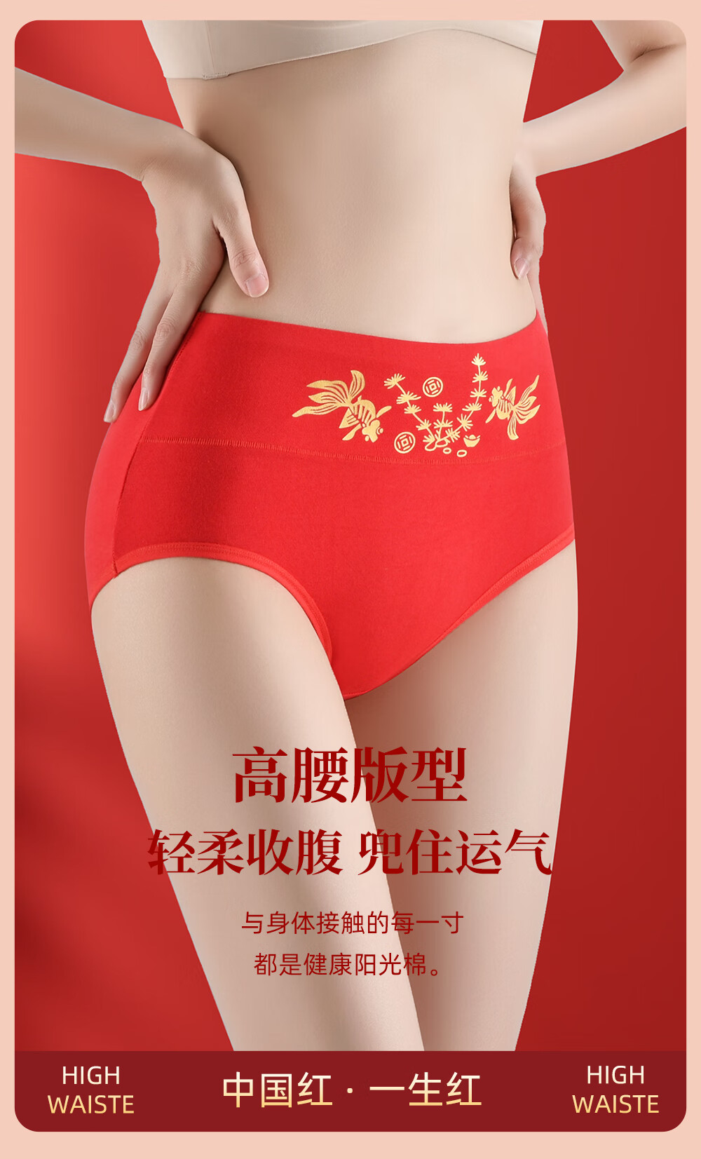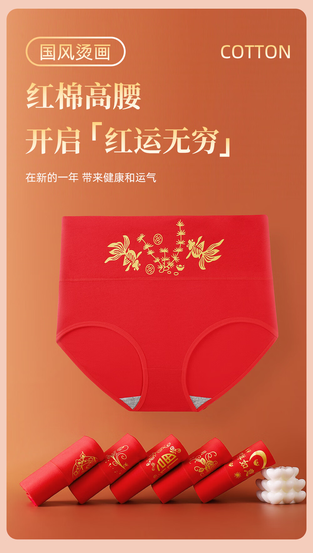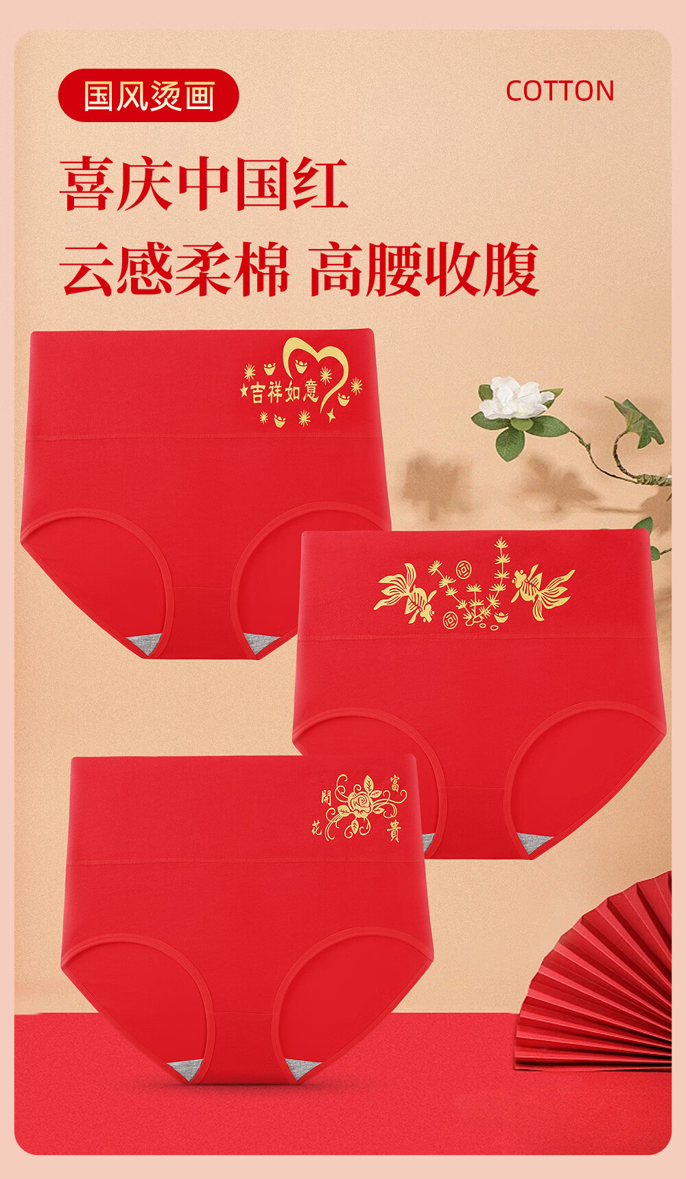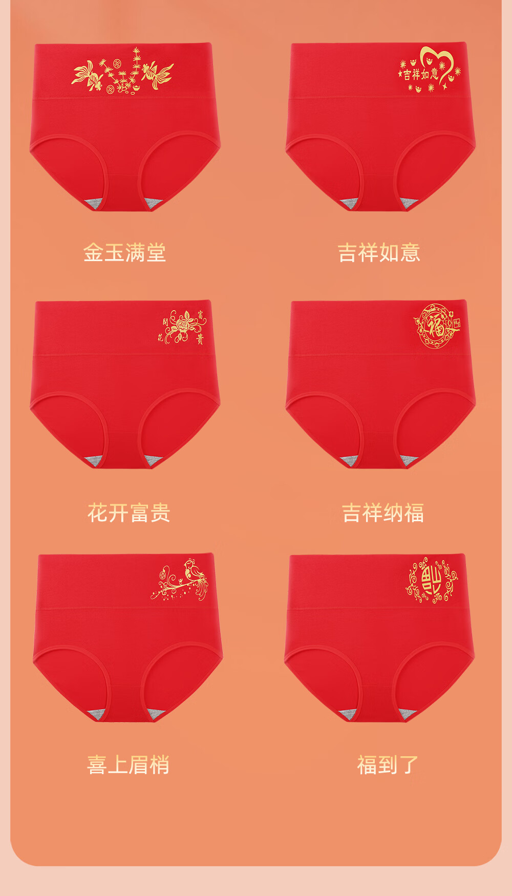 靓芯依马年本命年大红色内裤女棉质高腰喜庆结婚内裤女三角短裤头95棉 福字+福倒+吉祥+喜鹊 4条 2XL 建议130-155斤